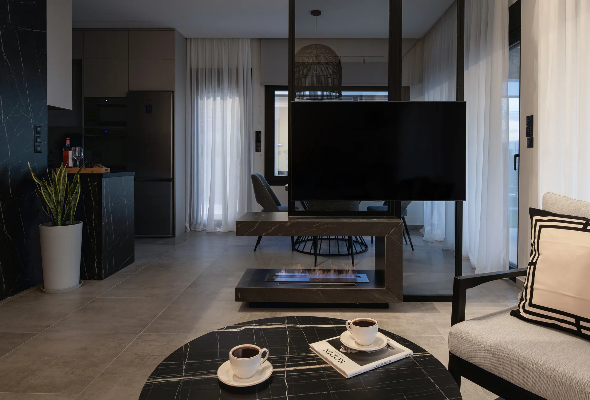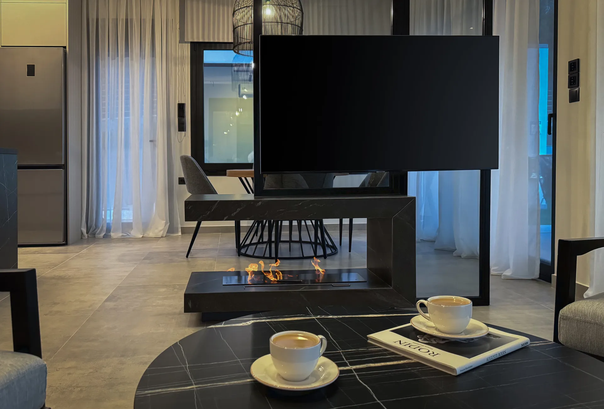Dnevna soba: TV sa ravnim ekranom, besplatan bežični internet, kamin na bioetanol, mreže protiv komaraca na prozorima i vratima, sofa na razvlačenje (160*200 cm),