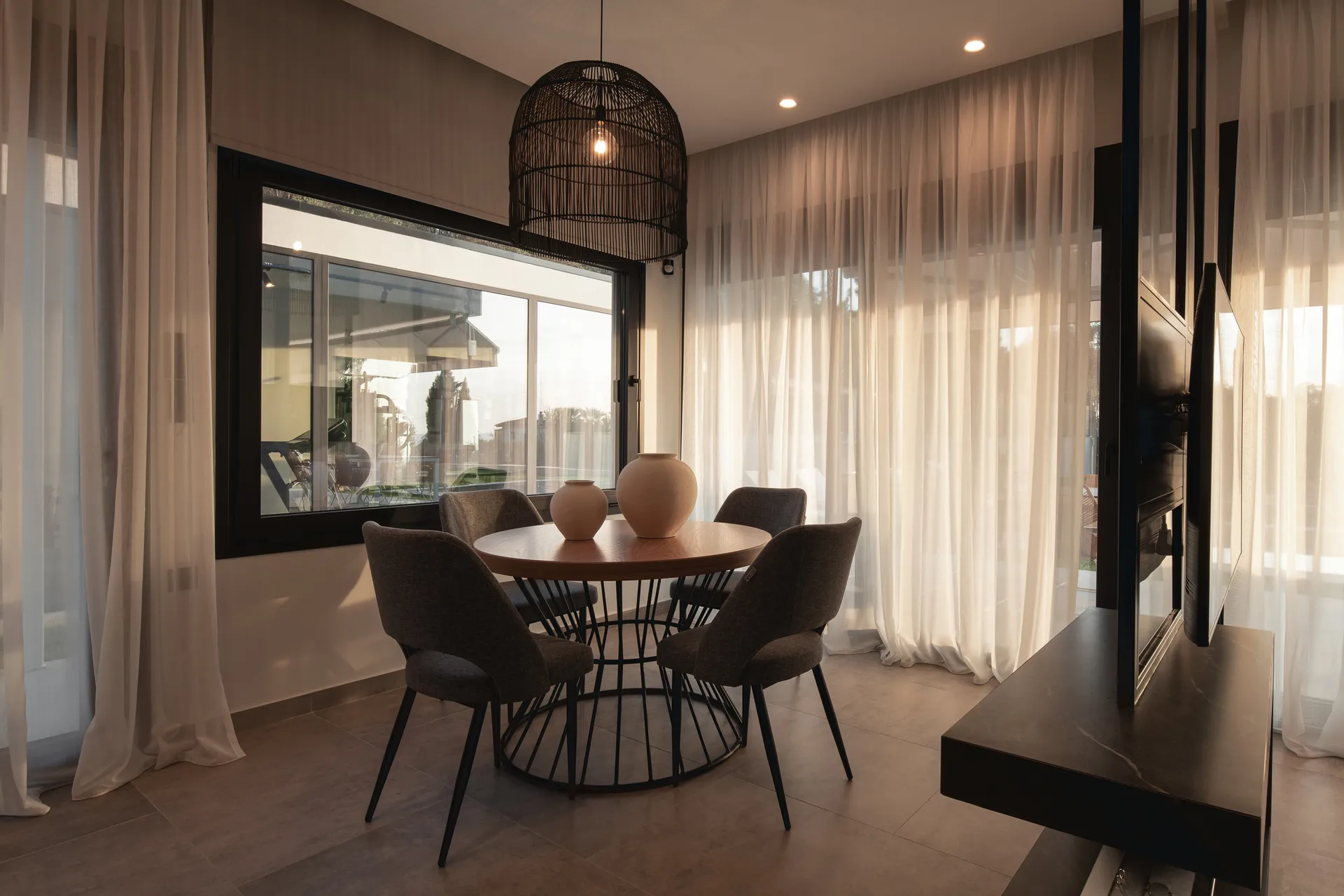 Klima uređaj sa jonizatorom, pogled na more i baštu sa pogledom na bazen, trpezarija.