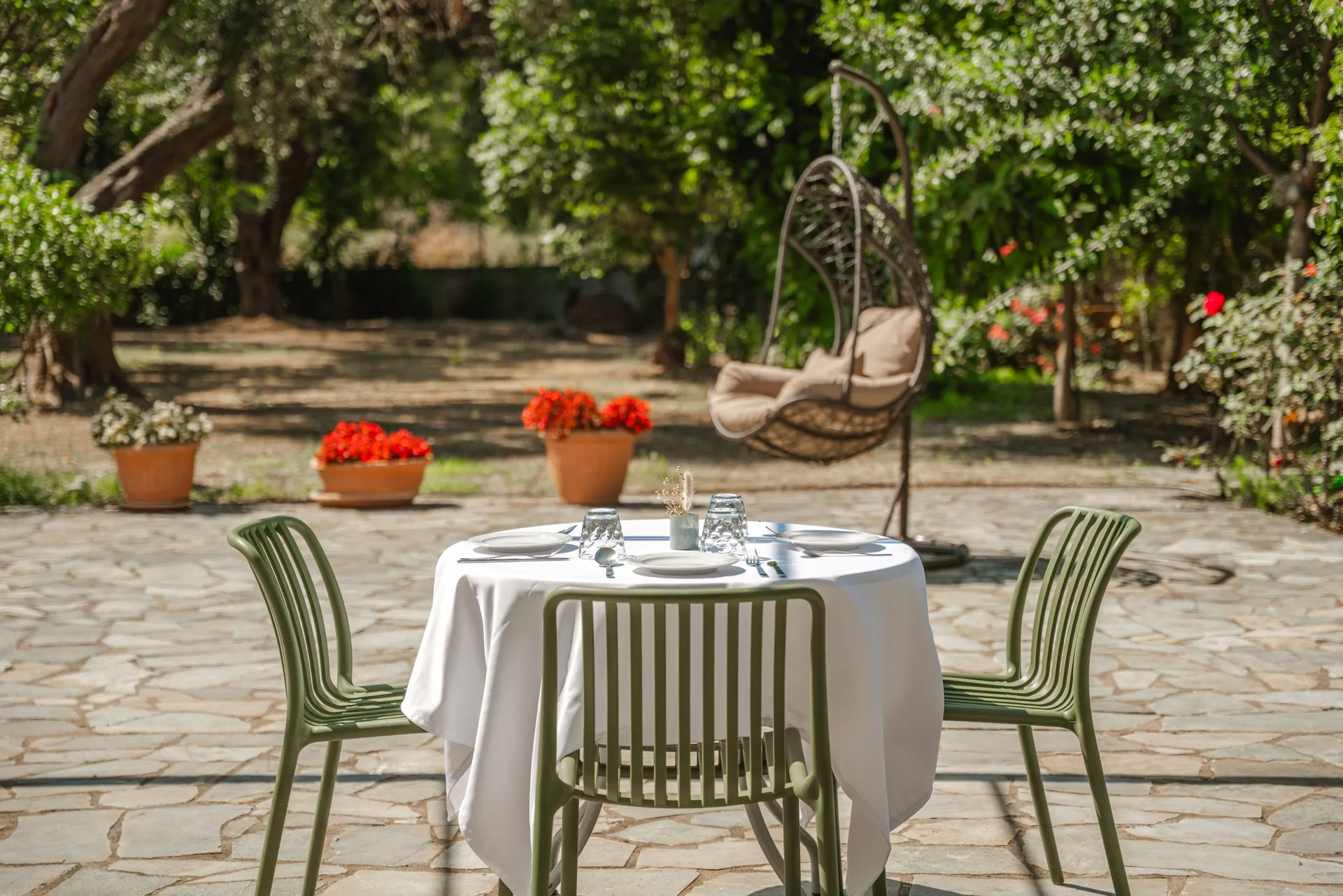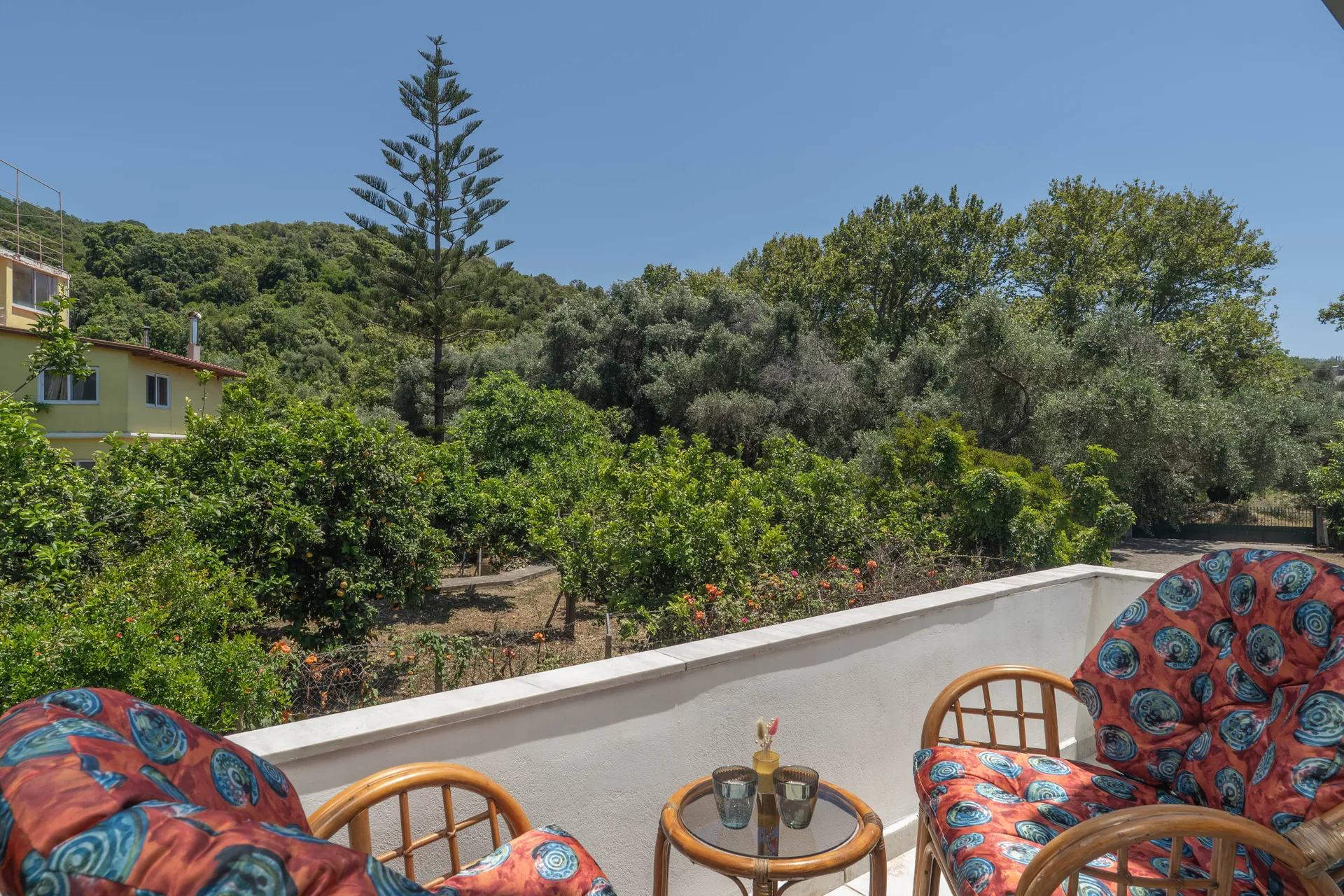 Naš smeštaj je okružen bujnim zelenilom, drevnim maslinama i mirnim šumskim pejzažom, nudeći zaista spokojnu atmosferu za ljubitelje prirode. Područje je idealno za šetnju i lagano planinarenje, sa pristupačnim stazama i seoskim putevima koji vas pozivaju da istražite prirodne lepote Sarakinika sopstvenim tempom.