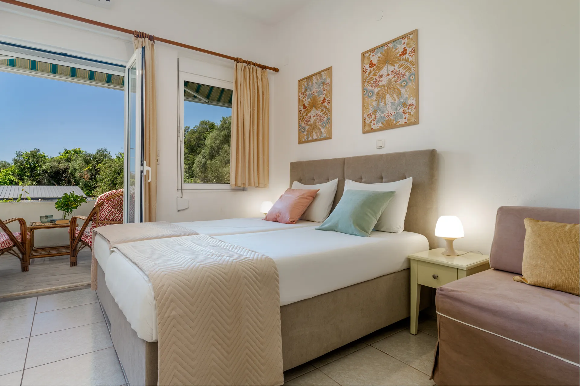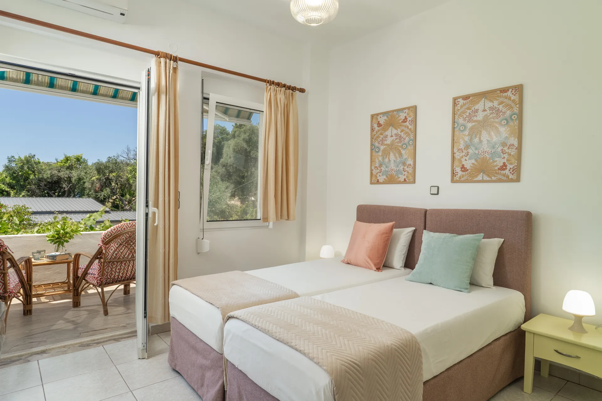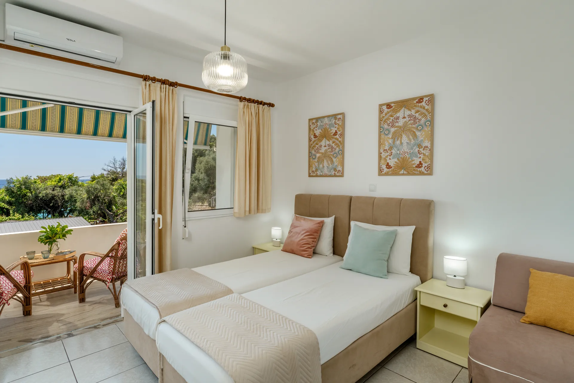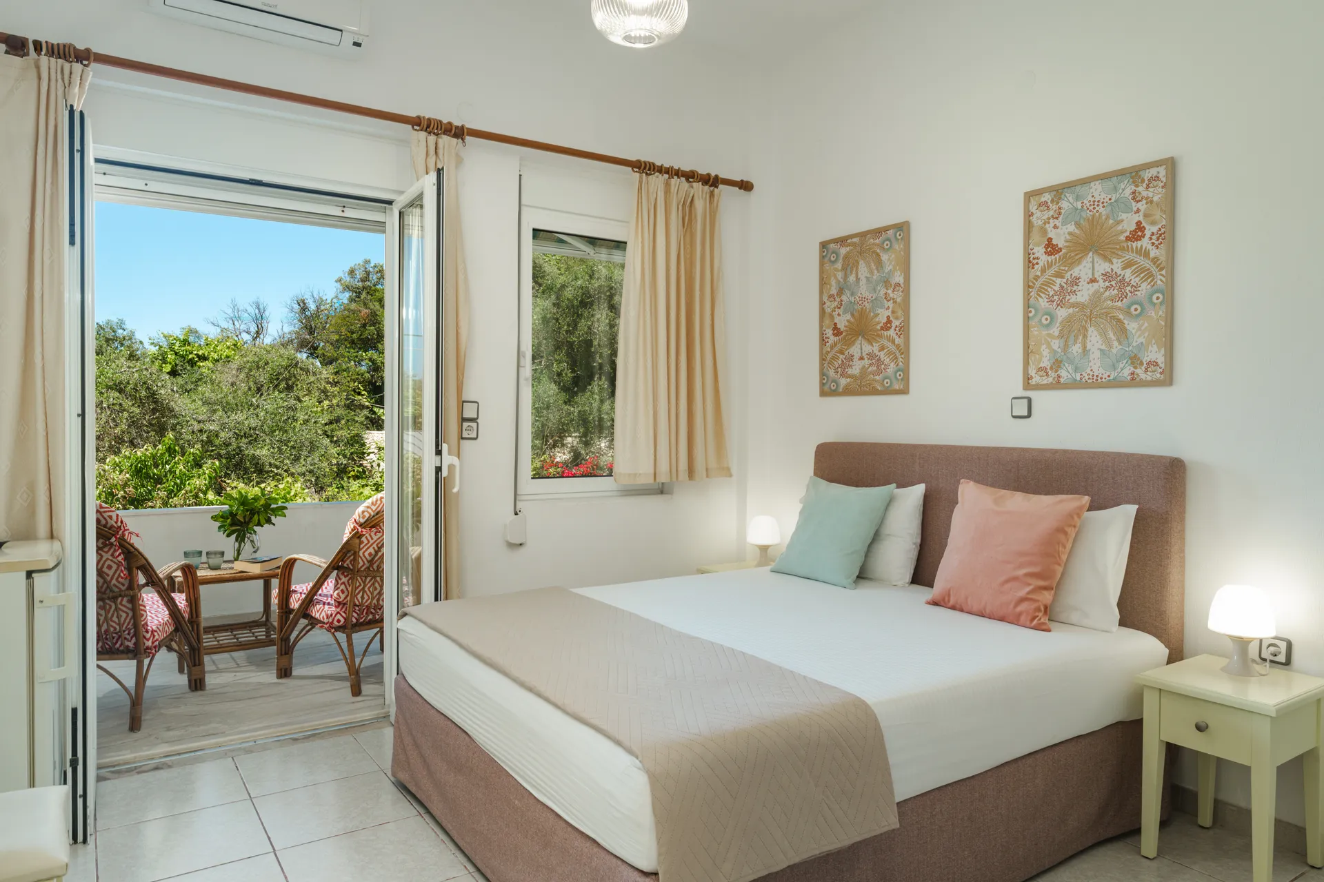 Svaka soba ima privatni balkon, TV ravnog ekrana, besplatan Wi-Fi i mini frižider. Neke sobe nude pogled na more ili baštu. Svakodnevno čišćenje je obezbeđeno kako bi se osigurao prijatan boravak.