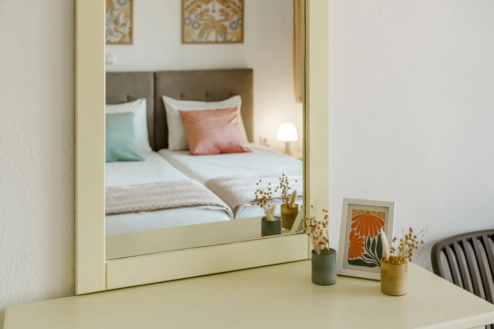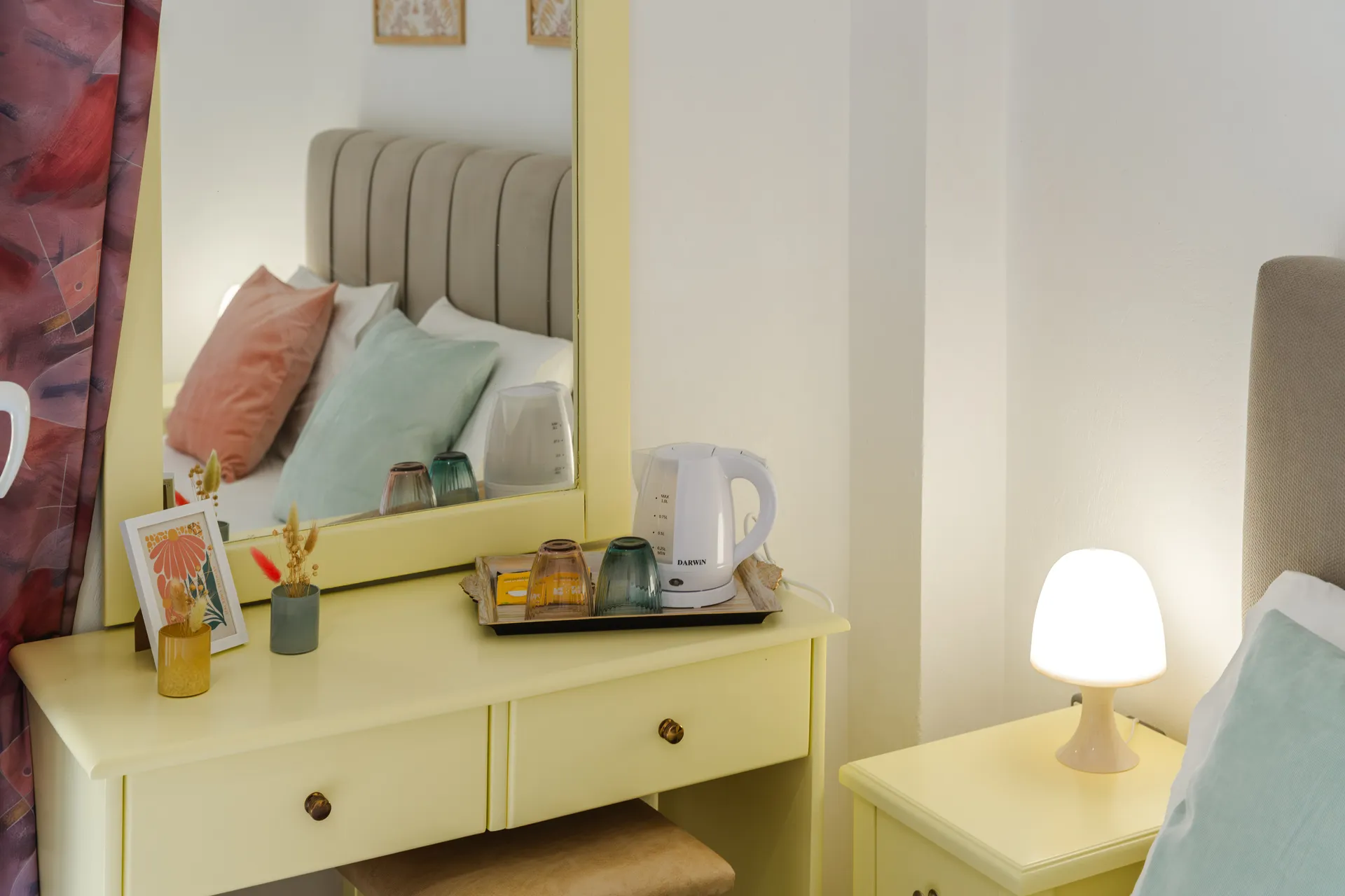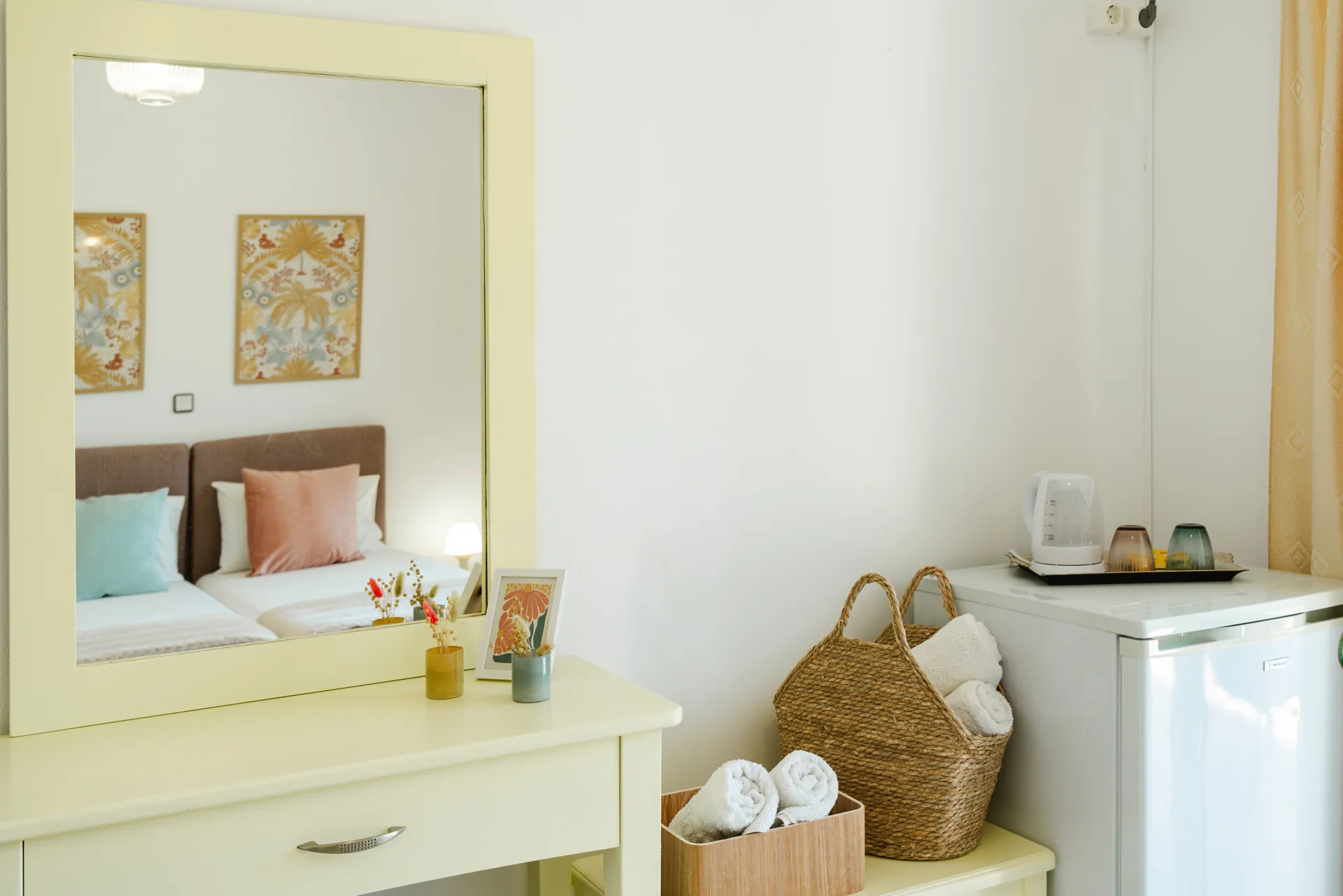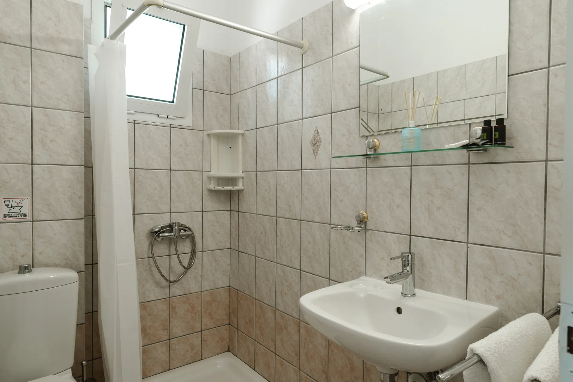 Svaka soba ima privatni balkon, TV ravnog ekrana, besplatan Wi-Fi i mini frižider. Neke sobe nude pogled na more ili baštu. Svakodnevno čišćenje je obezbeđeno kako bi se osigurao prijatan boravak.