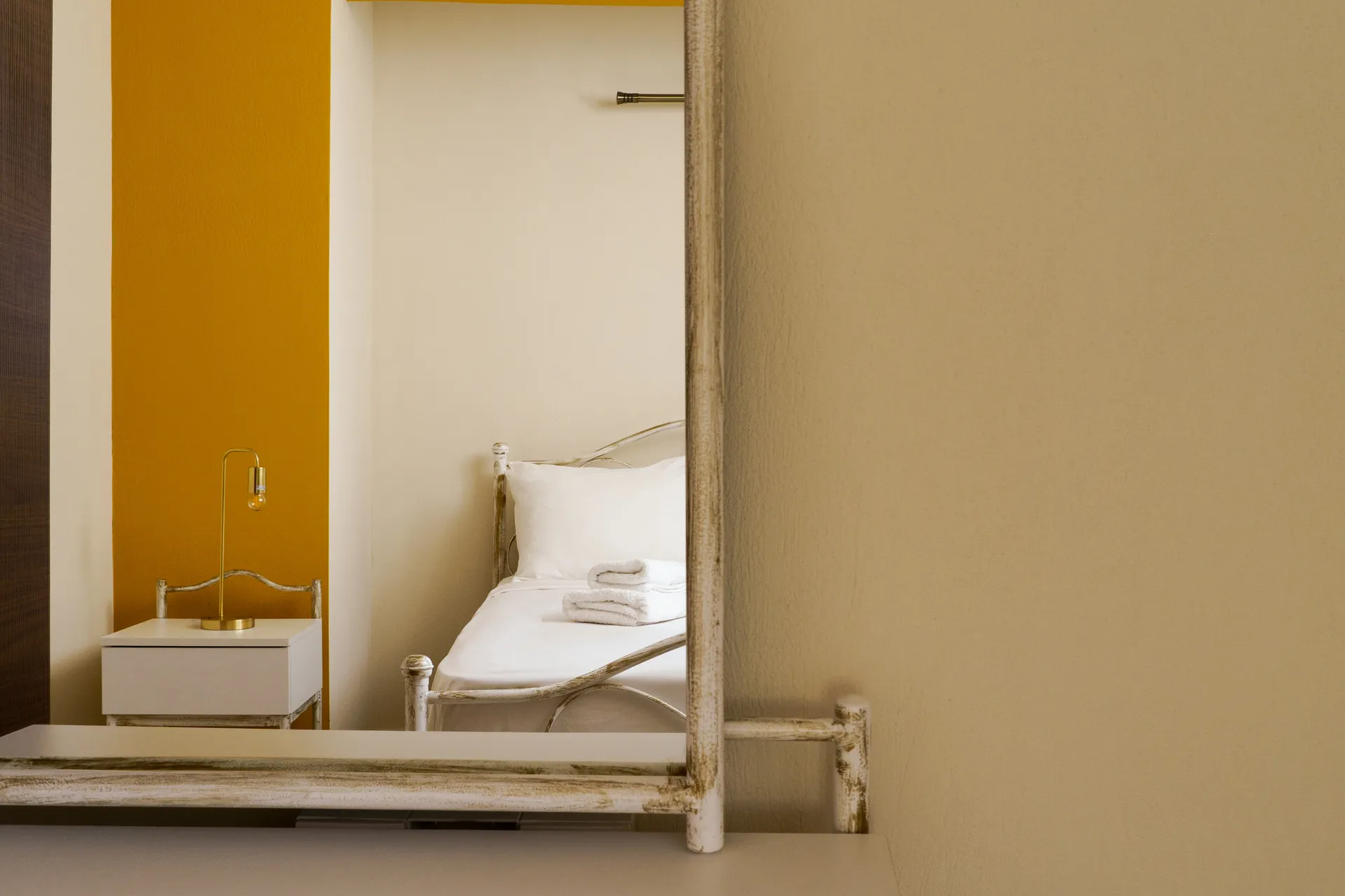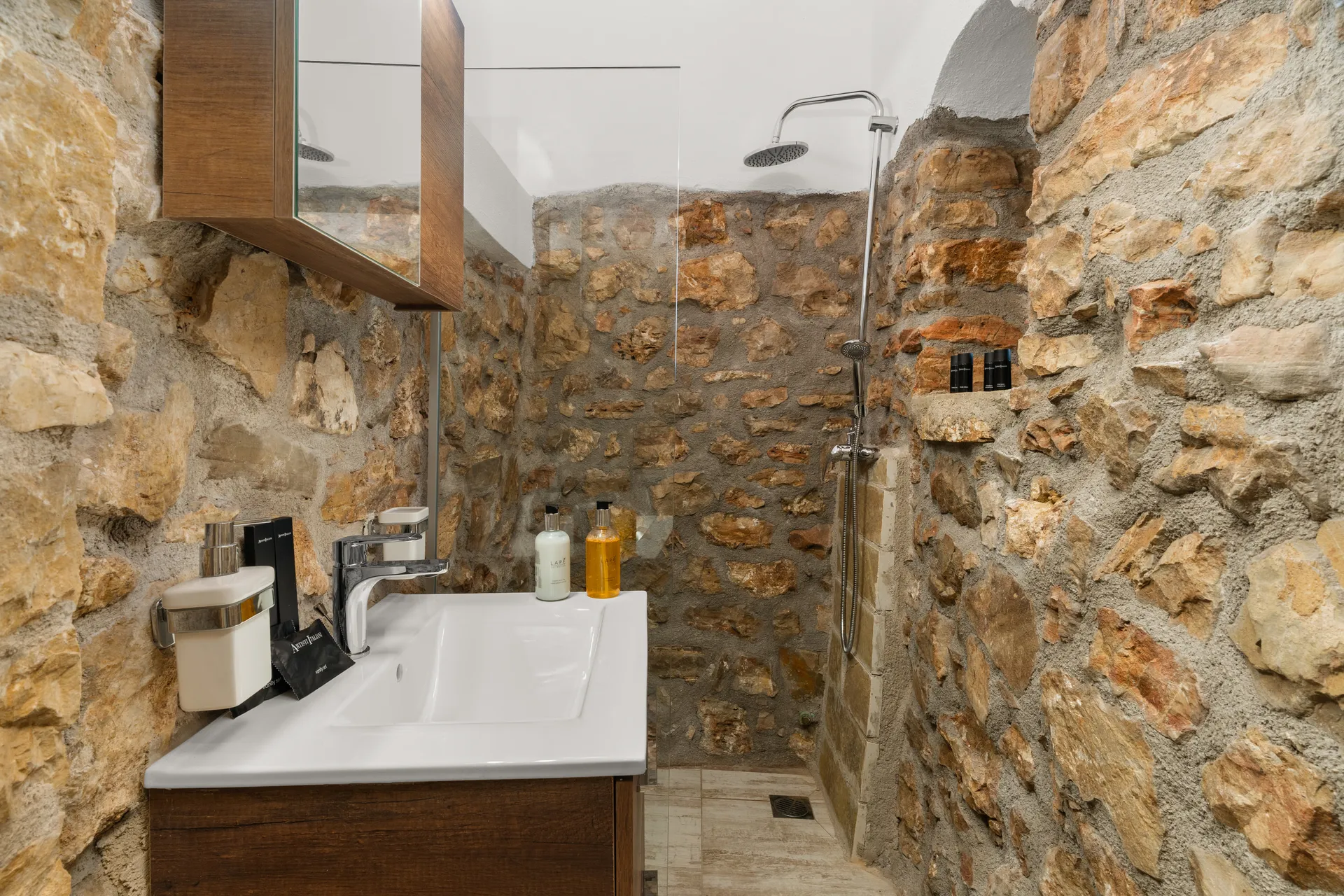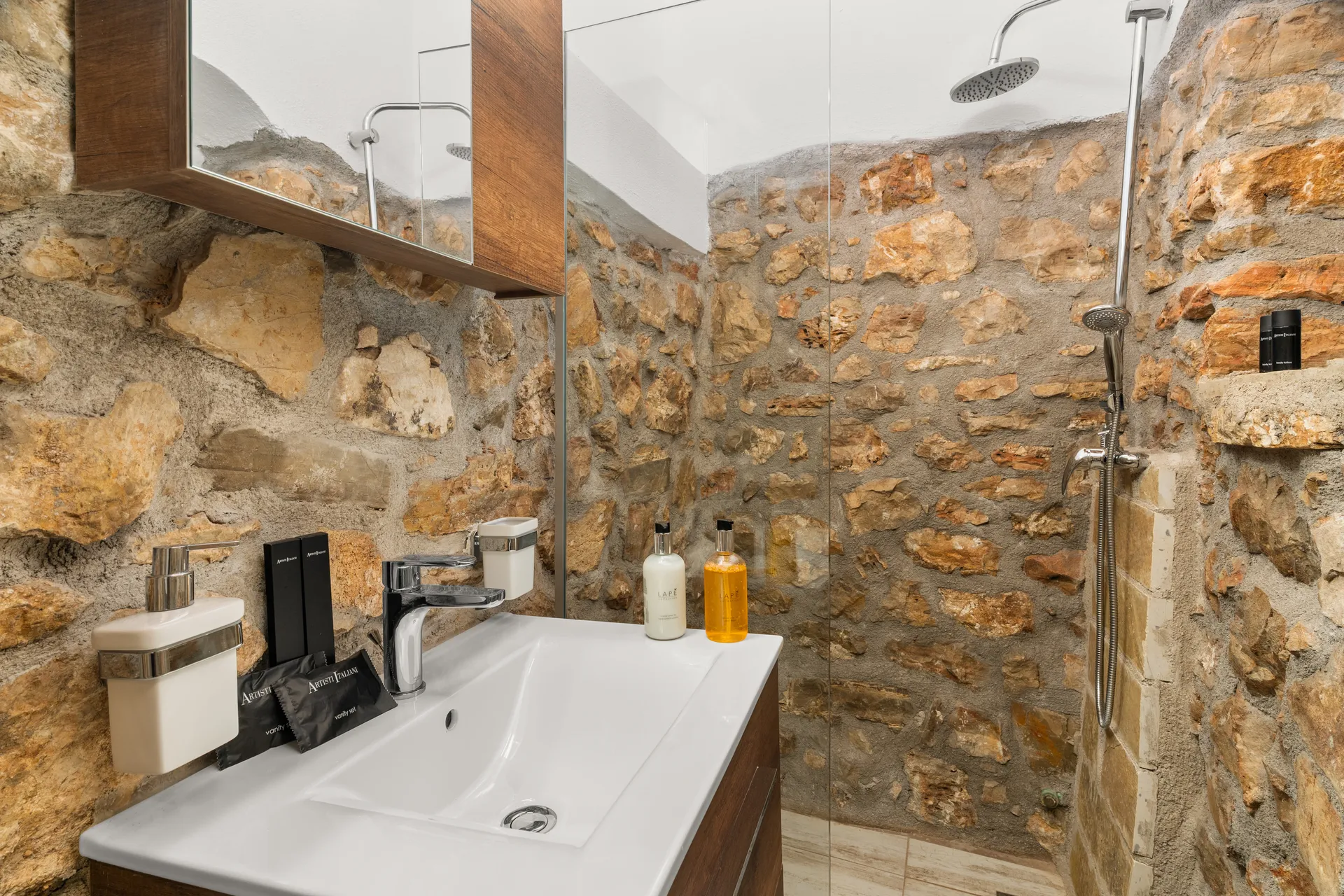 Topli i karakteristični studio dizajniran za tri osobe, gde se nijedan prostor ne oseća sasvim isto. Glavna spavaća soba ima bračni krevet postavljen uz kameni zid, što joj daje izrazito lokalni osećaj, dok udoban jednokrevetni krevet sa smelim oker akcentnim zidom dodaje razigran dodir prostoru.