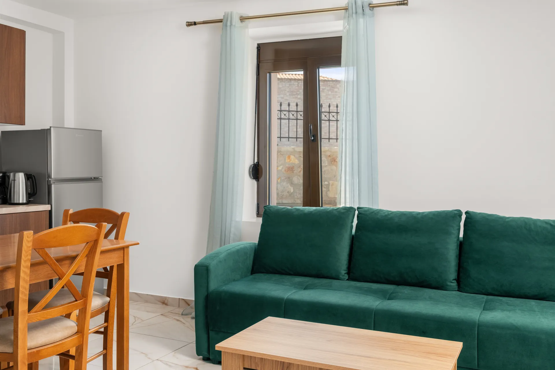 Smešten na dva sprata tradicionalnog kamenog kompleksa, ovaj studio je idealan za porodice ili grupe do četiri odrasle osobe koje žele prostor, udobnost i malo više prostora za disanje.