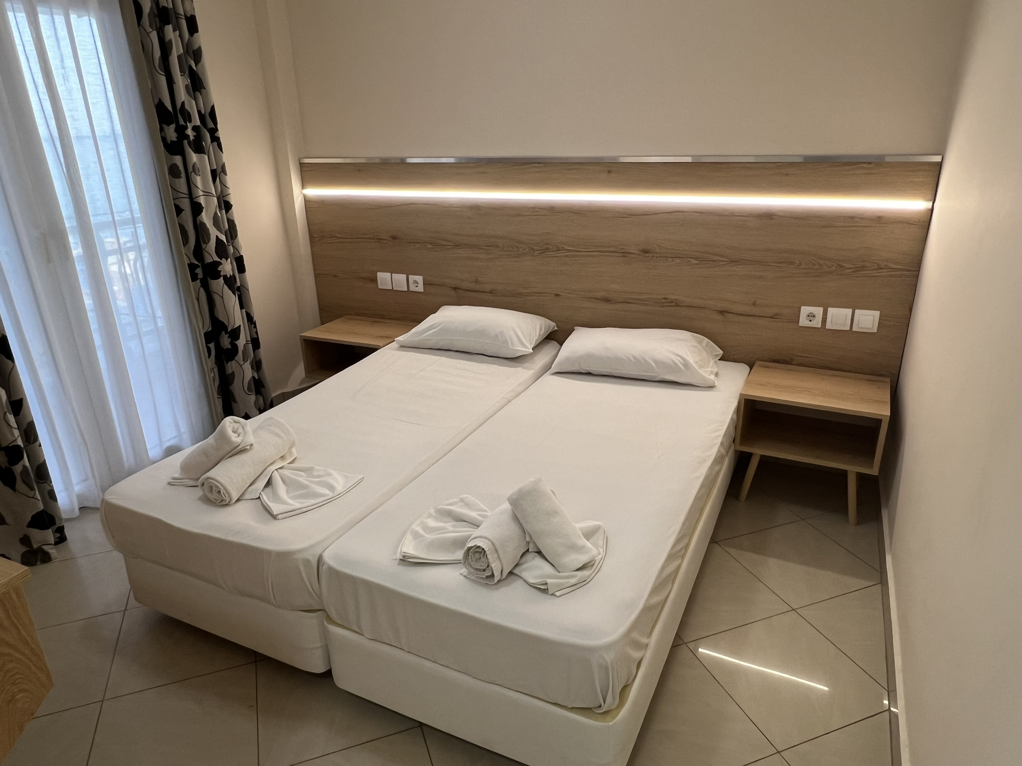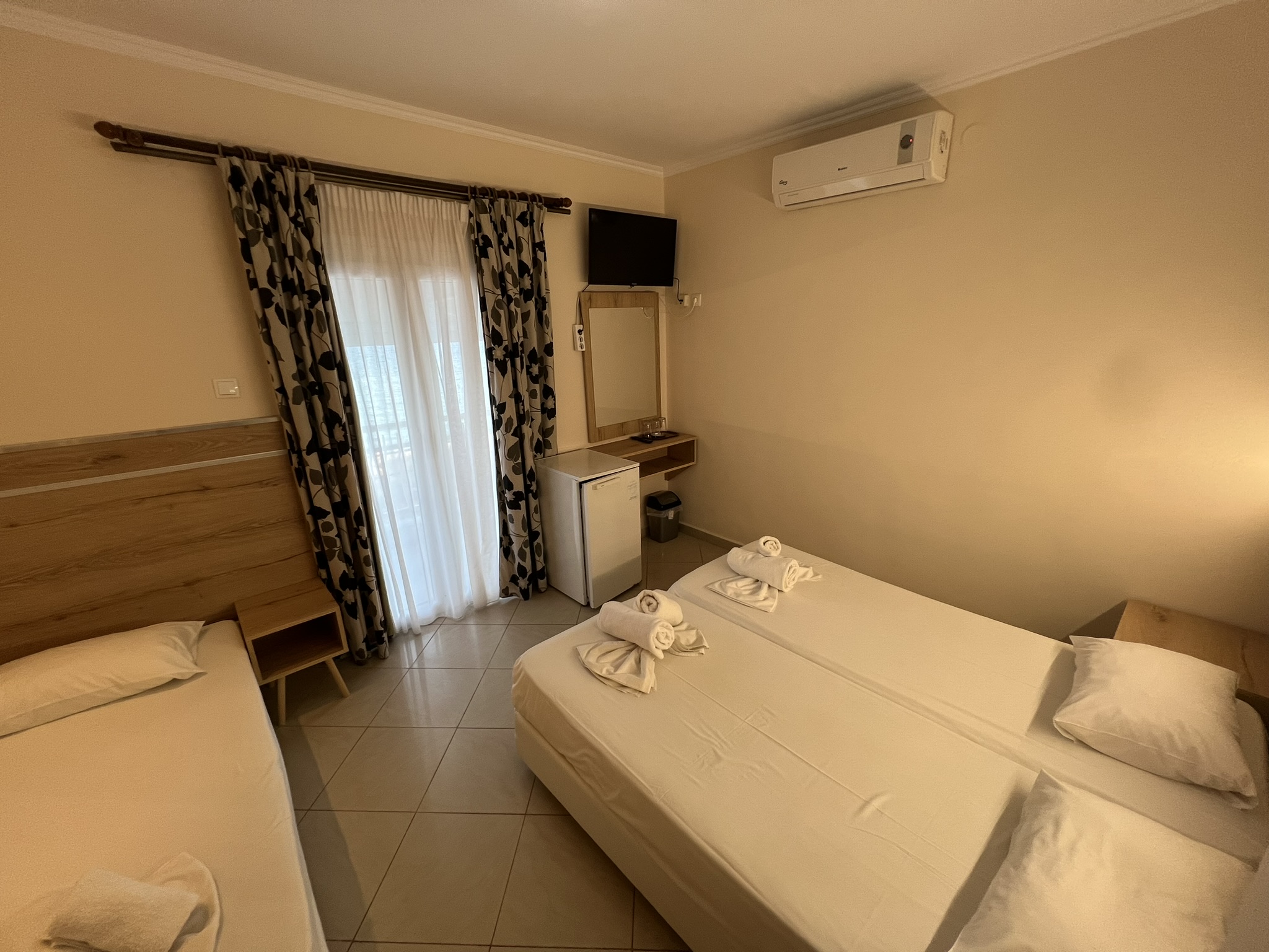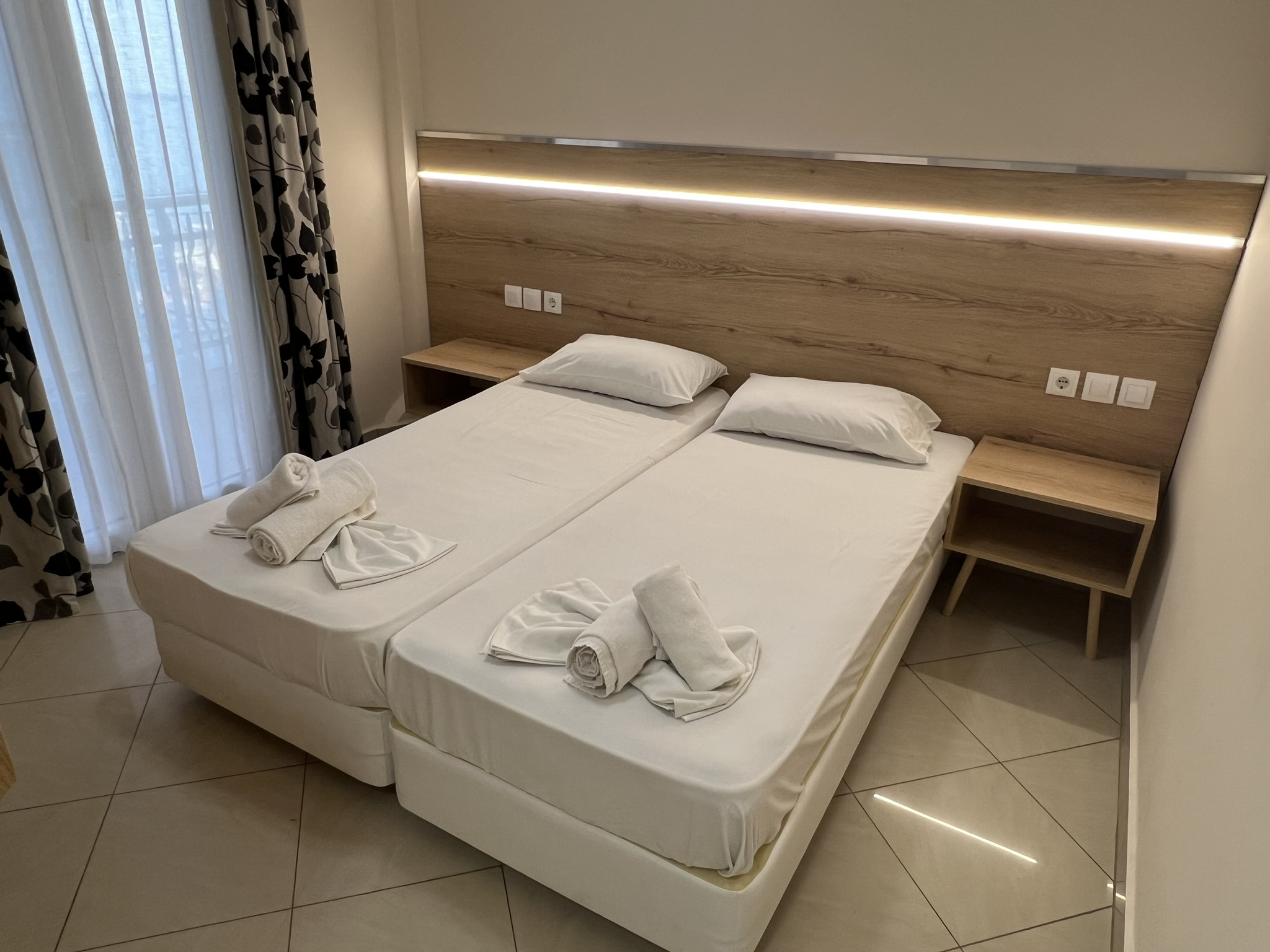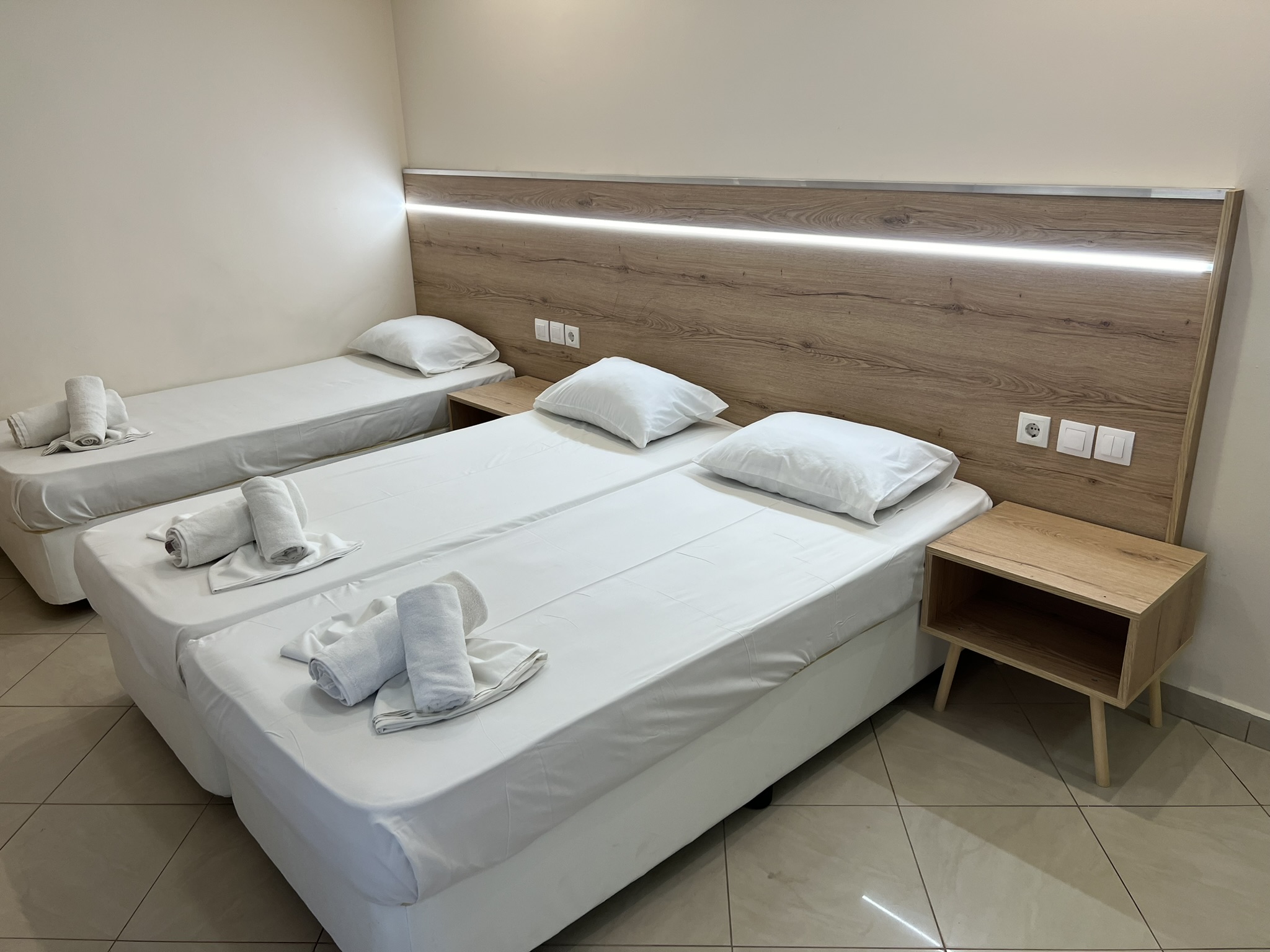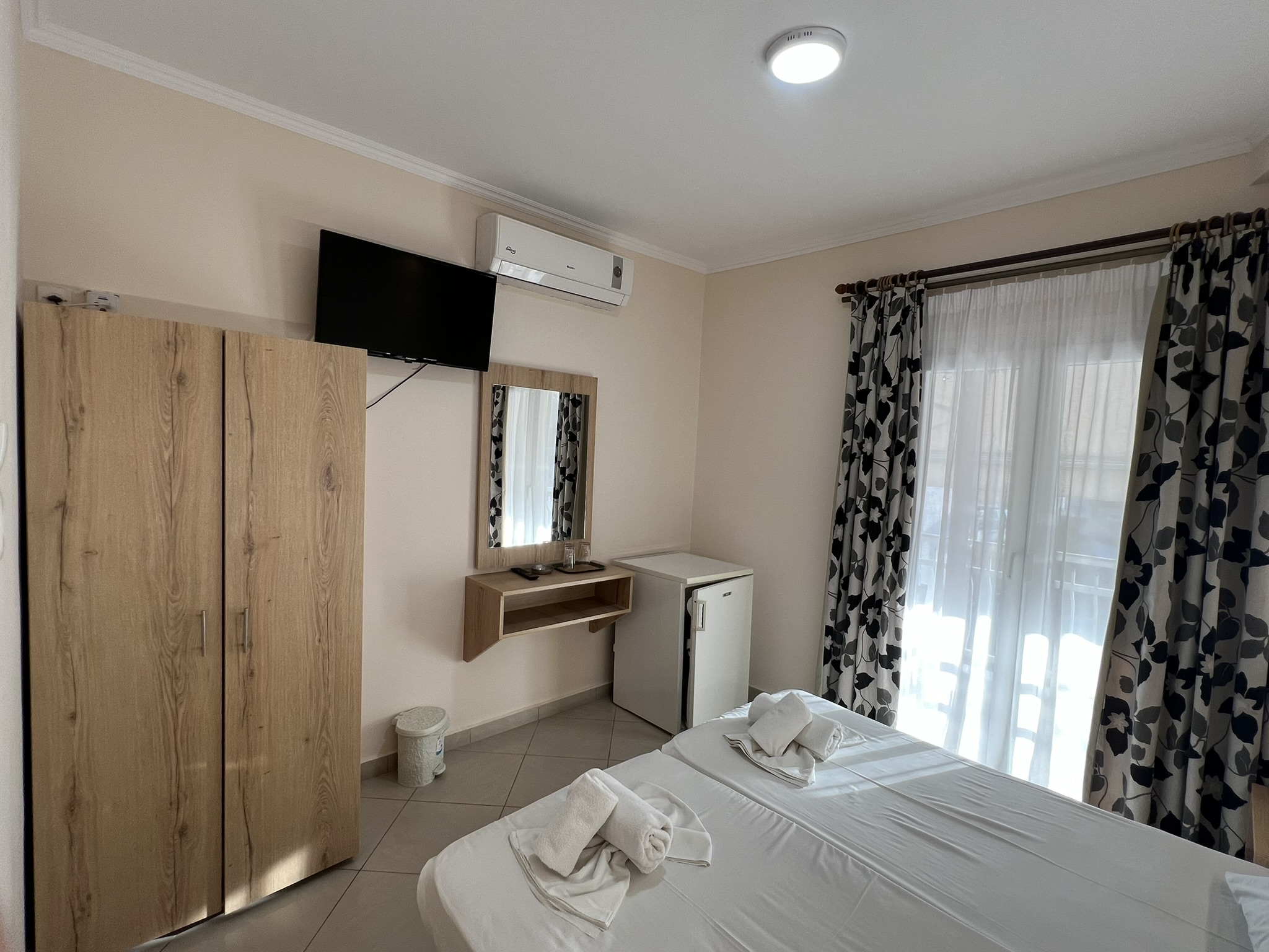 Dafni Seaside Rooms je objekt na samoj plaži Leptokarije. Nalazi se u centralnom delu plaže Leptokarije, odmah iznad poznatog kafića Aegean Caffe koji je oduvek bio naša baza u Leptokariji. I ako je lokacija na samoj plaži moramo istaći da je u pitanju mirni deo Leptokarije i da u okolini nema klubova ili kafića koji rade uz glasnu muziku posle ponoći.