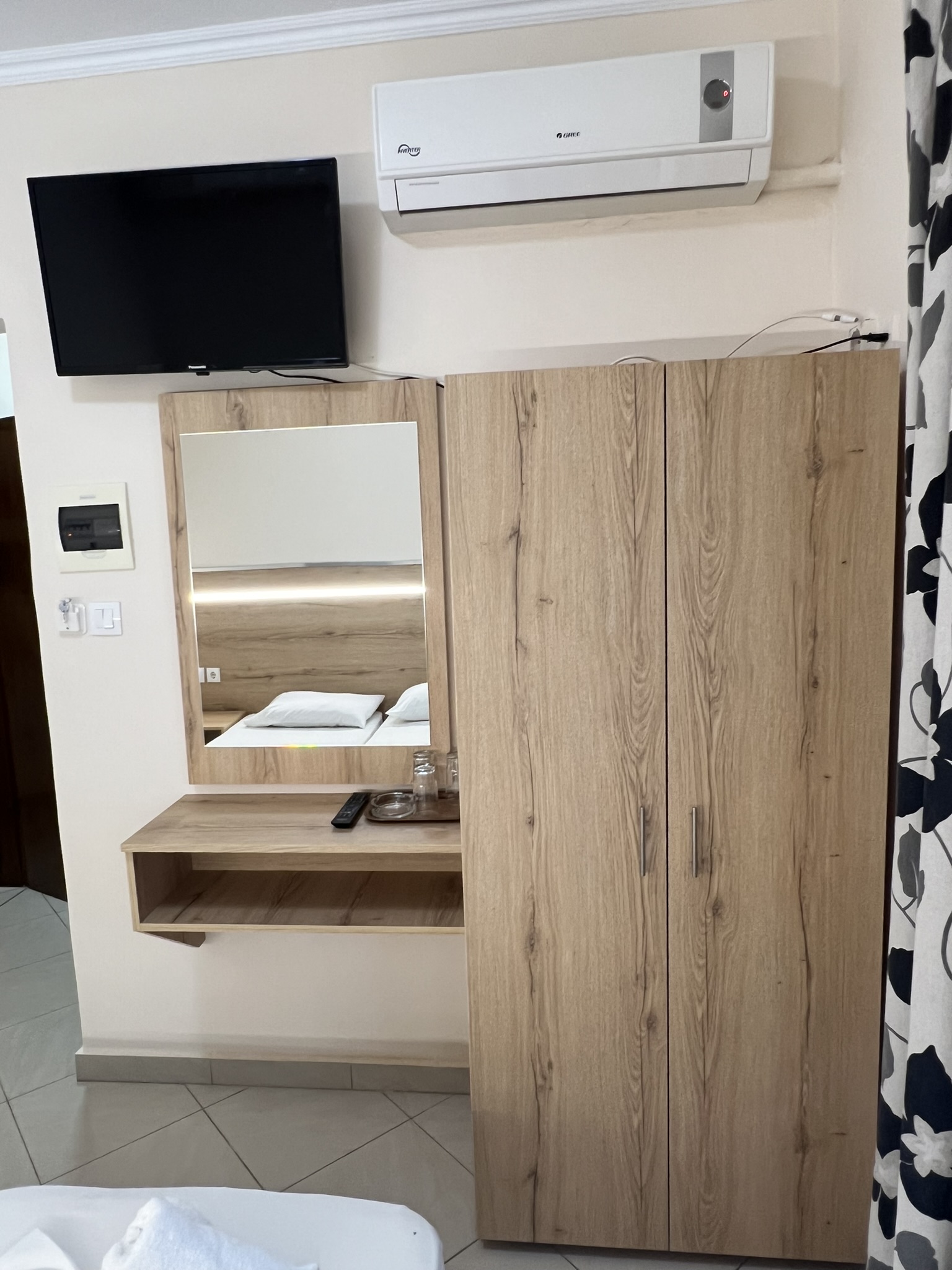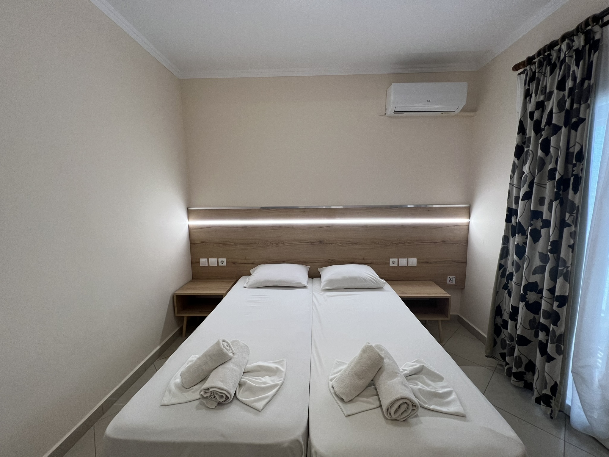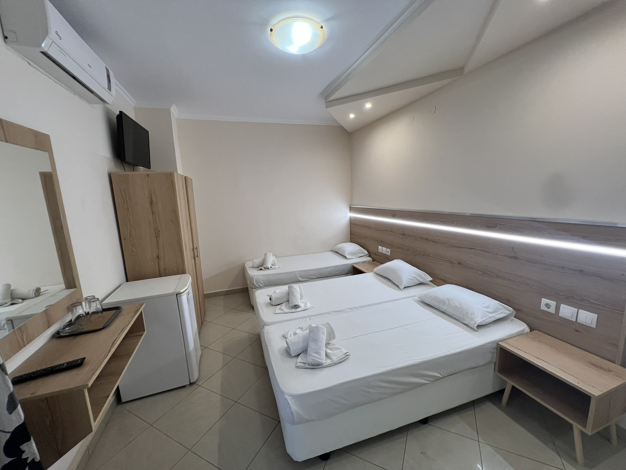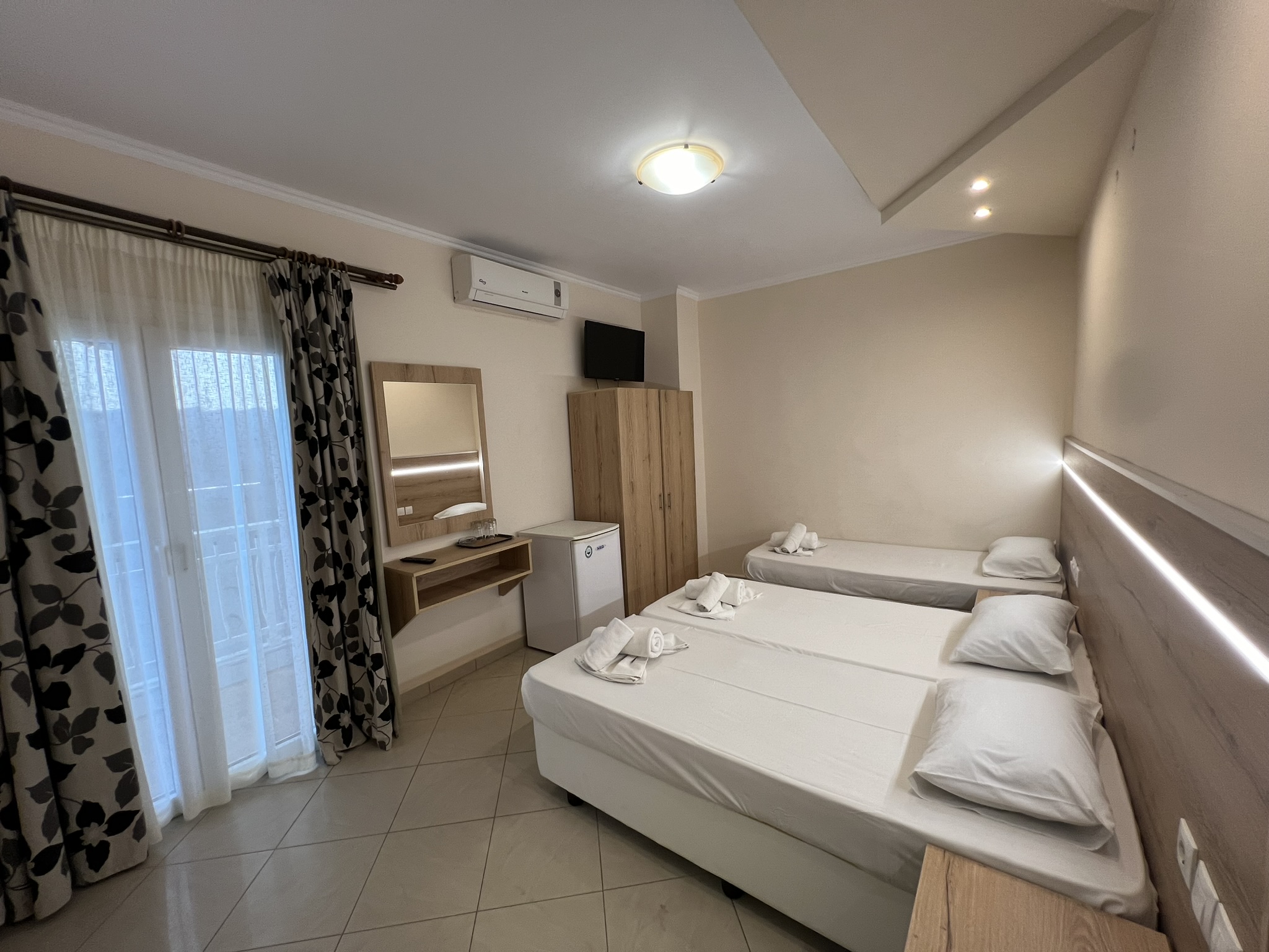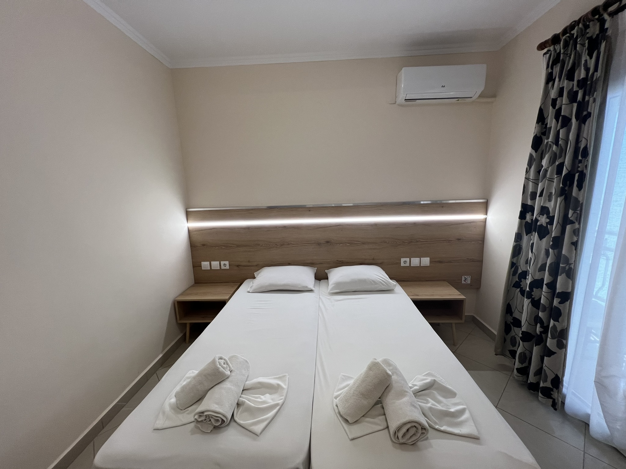 Dafni Seaside Rooms je objekt na samoj plaži Leptokarije. Nalazi se u centralnom delu plaže Leptokarije, odmah iznad poznatog kafića Aegean Caffe koji je oduvek bio naša baza u Leptokariji. I ako je lokacija na samoj plaži moramo istaći da je u pitanju mirni deo Leptokarije i da u okolini nema klubova ili kafića koji rade uz glasnu muziku posle ponoći.