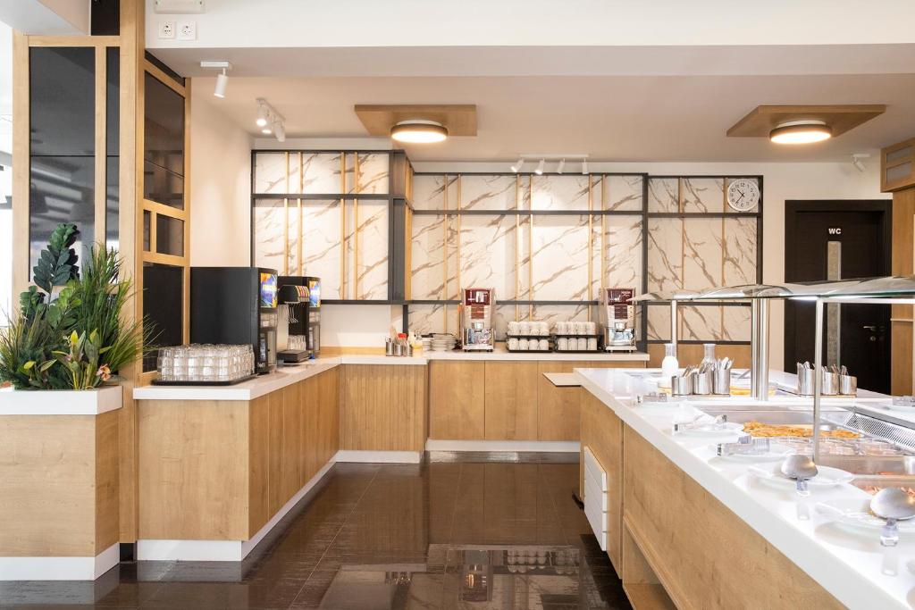 U pitanju je bufe restoran hotela u kome se hrana poslužuje u formi švedskog stola. Restoran je poznat kao najbolji bufe restoran u celoj Leptokariji. U galeriji imate slike restorana.