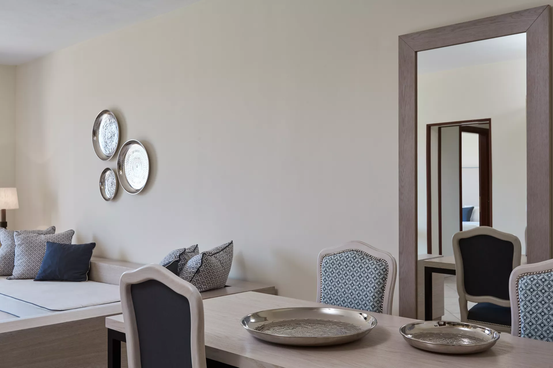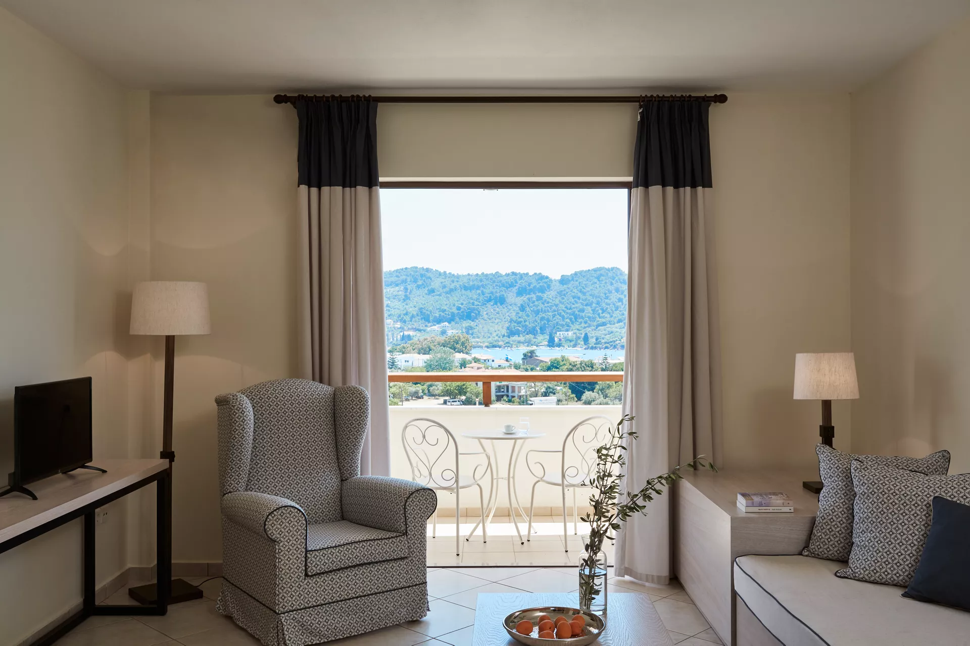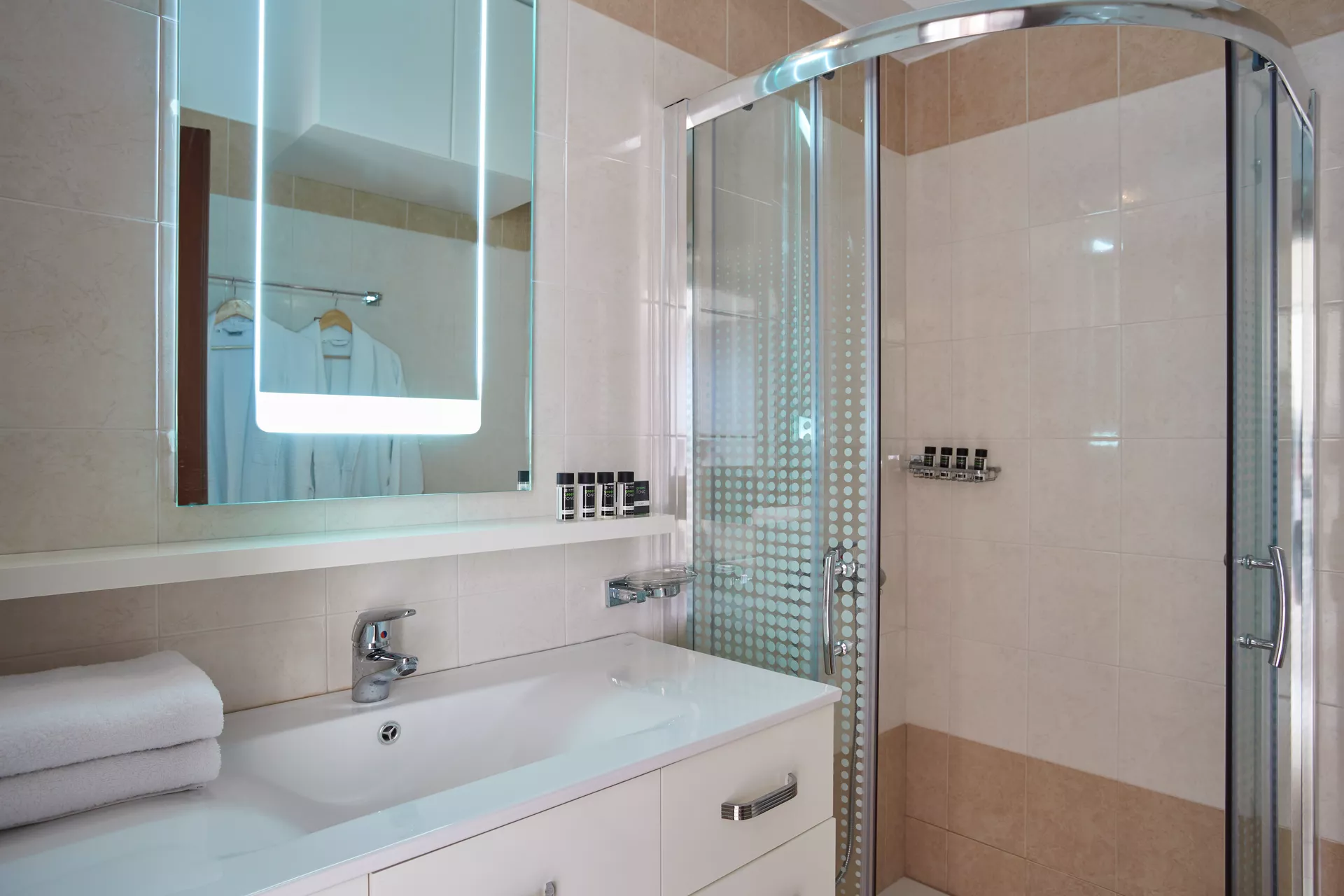 Spavaća soba sa bračnim krevetom, kupatilo sa tuš kabinom sa staklenim zidom, kuhinja, prostor za sedenje sa sofom, privatni balkon sa pogledom na more. Soba može da primi 2 osobe, a veličina sobe je 43-57 m².