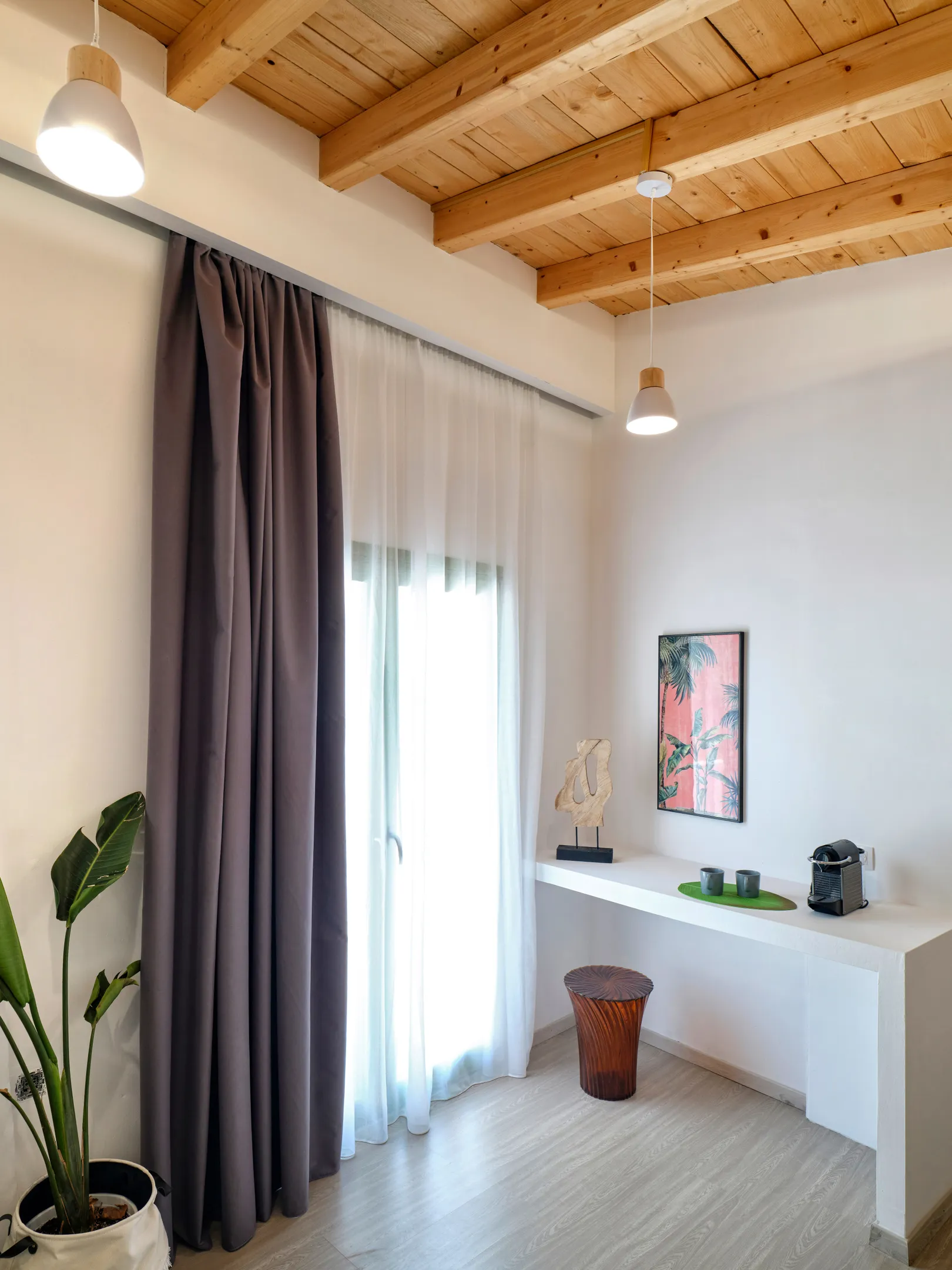 Penthouse with Sea View Penthaus se nalazi na poslednjem spratu i sadrži jednu spavaću sobu sa kupatilom, veliku dnevnu sobu sa sofom na razvlačenje. Tu je i veoma velika veranda sa prelepim pogledom na more, gde možete uživati u piću ili večeri pod zvezdama Egeja. Penthaus može da primi do četiri osobe.