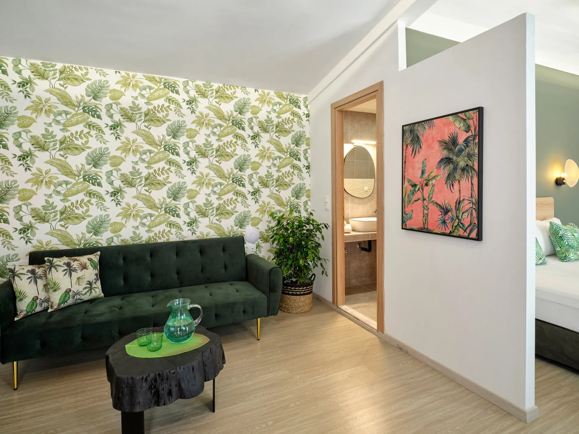 Junior Suite with Sea View Apartman se nalazi na drugom spratu i nudi veličanstven balkon sa pogledom na more – savršen za uživanje u popodnevnom piću ili grickalici. Može da primi do četiri osobe i sadrži jednu spavaću sobu, kupatilo i prostranu dnevnu sobu sa sofom na razvlačenje.