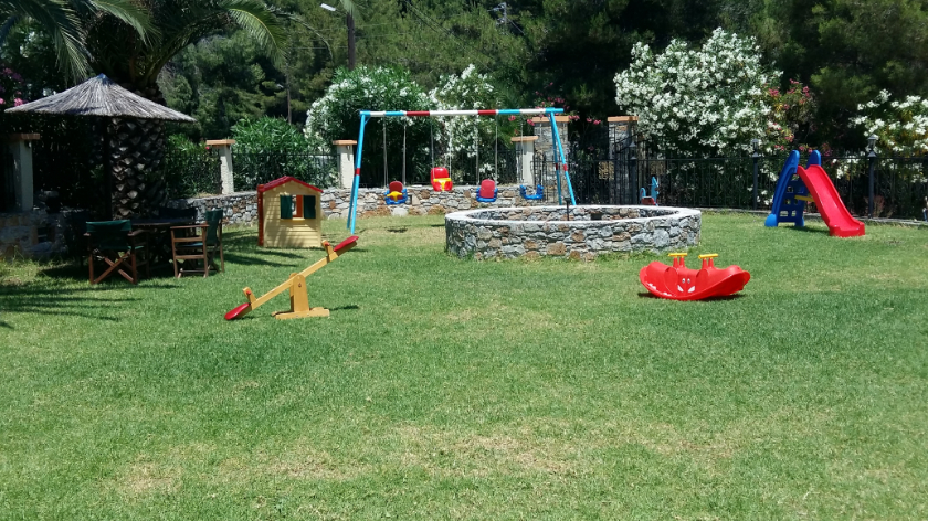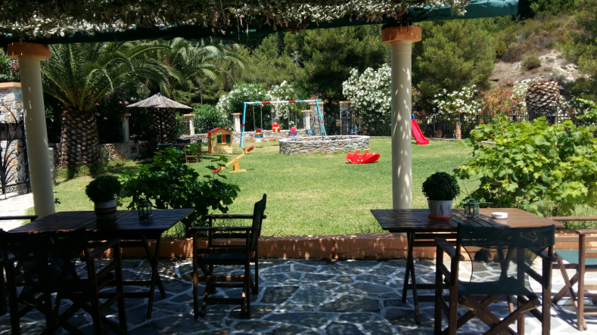 U bašti trave i palmi, kojima dominira snažan element šarenog kamena „Pelion“. Villa Nefeli Skiathos ima 8 udobnih, svetlih, potpuno opremljenih studija okruženih ružama i jasminom.