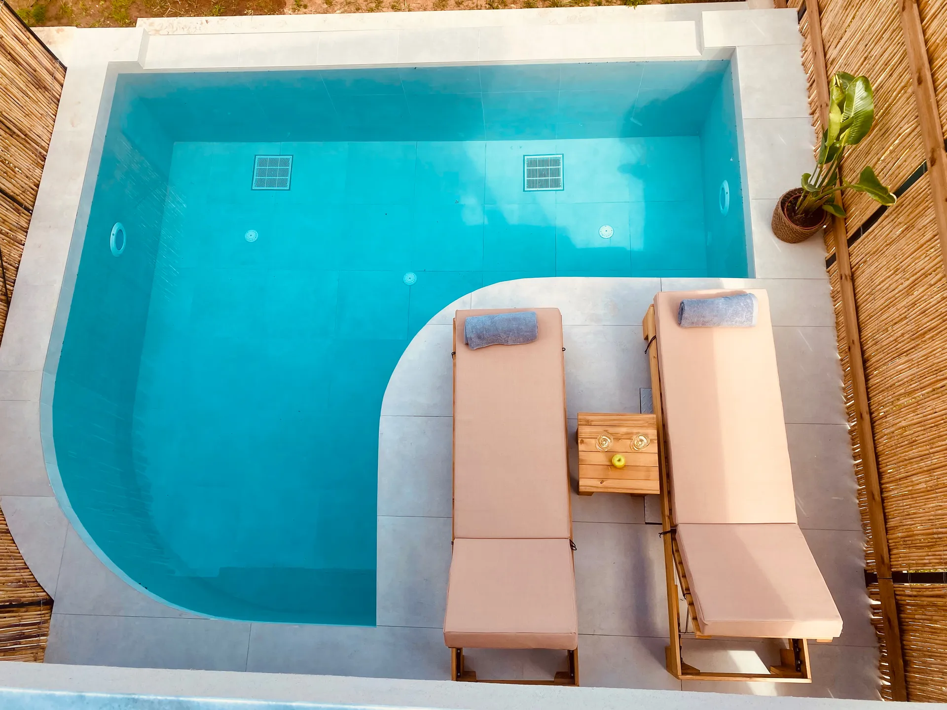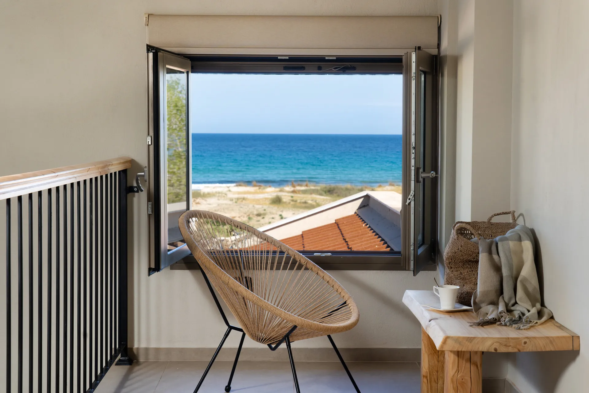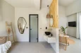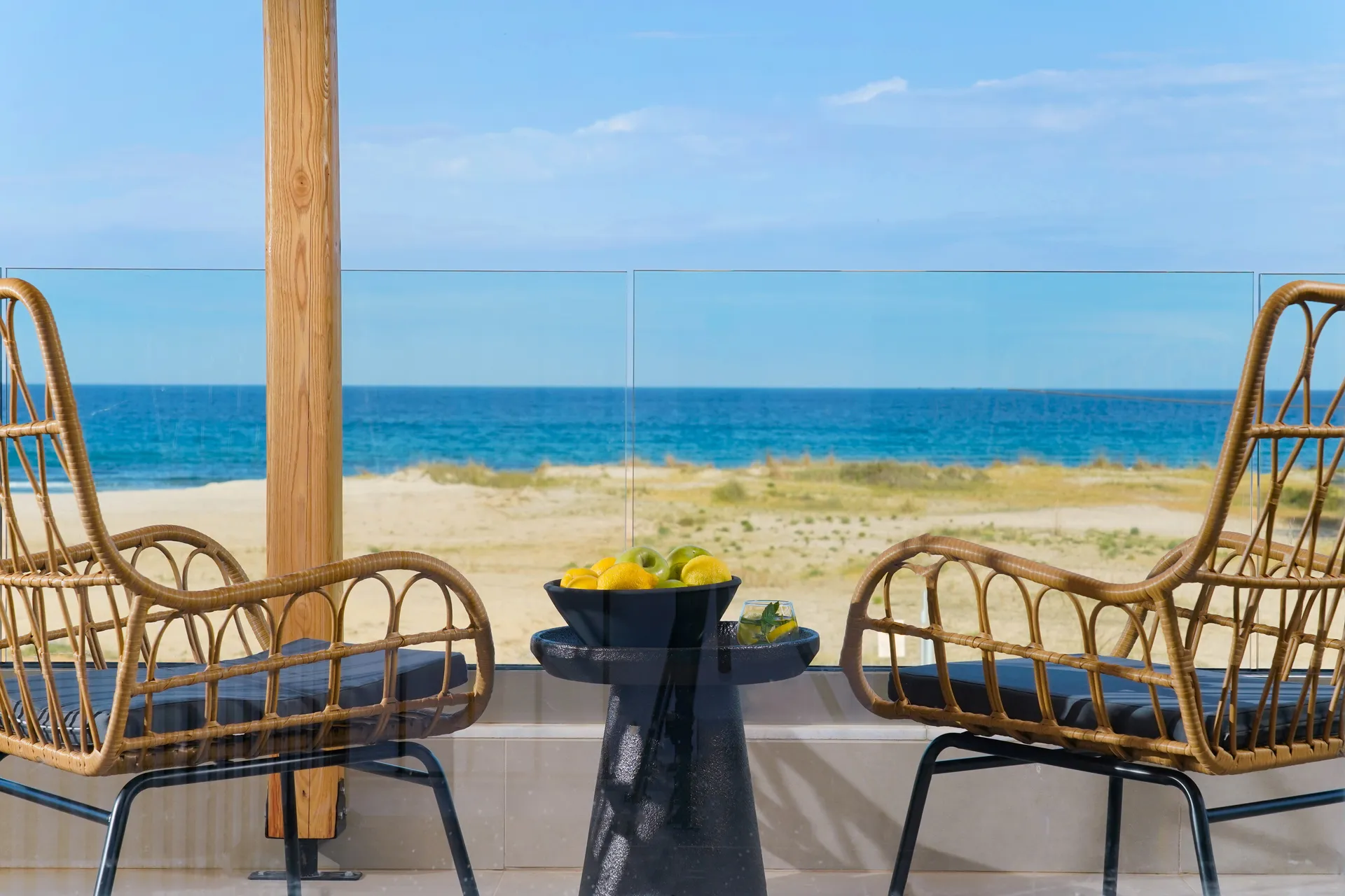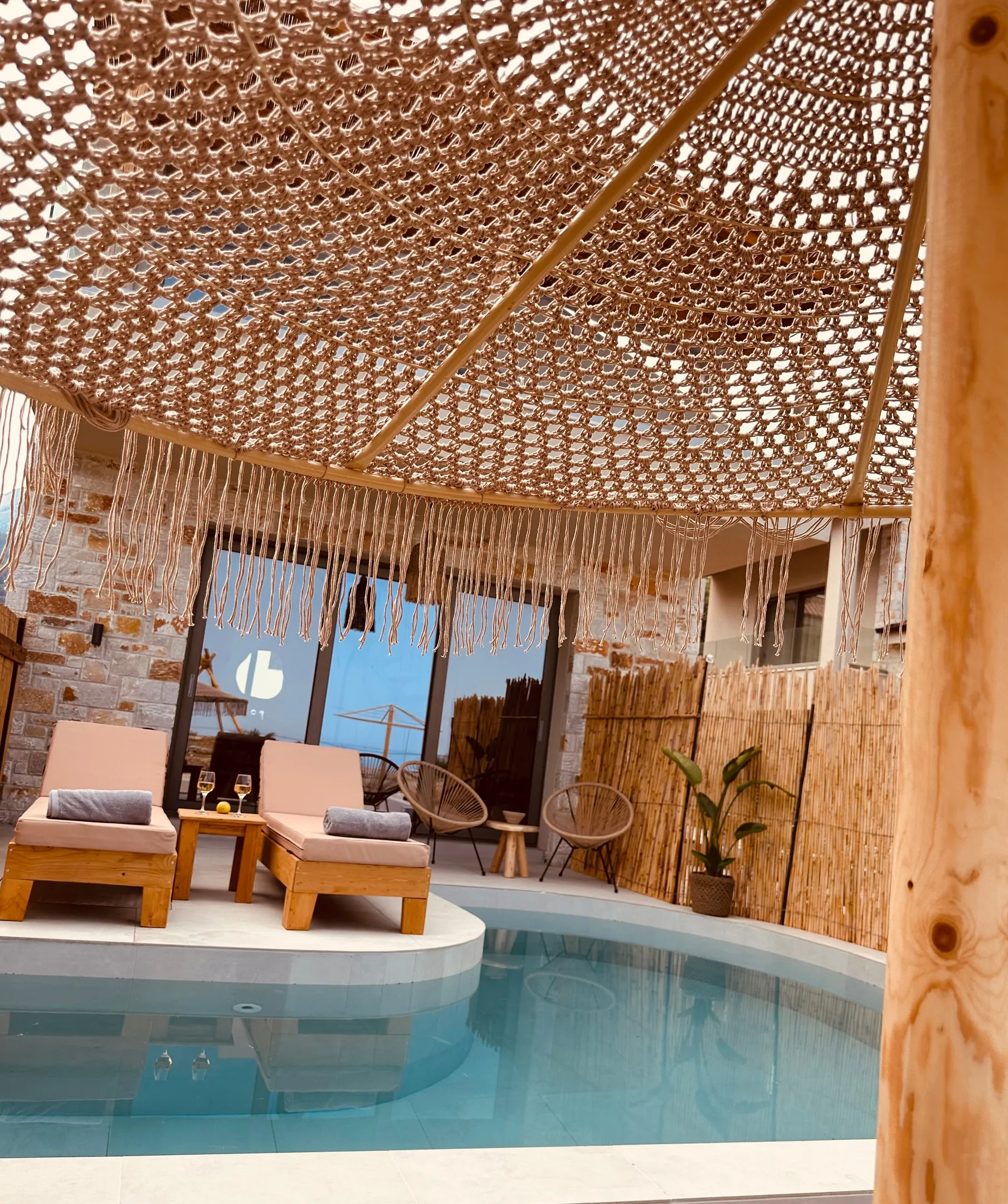 Naši elegantni dvospratni apartmani, površine 44 m2, nalaze se u prvom planu odmarališta, odmah iza centralnog bazena. Ovi dvospratni apartmani pružaju gostima najlepši pogled na Egejsko more, kombinujući jedinstvene smaragdne nijanse vode sa zemljanom atmosferom i boho-minimalističkom estetikom. Svaki apartman je obložen prirodnim materijalima kao što su kamen, drvo, bambus, ima dve spavaće sobe sa bračnim krevetima na različitim nivoima i dnevnu sobu. Takođe, prostrani balkon na gornjem spratu omogućava gostima da se opuste i uživaju u kombinaciji zadivljujućeg pogleda na duboko plavo more i zlatnu plažu, morskog povetarca, nezaboravnog pejzaža i očaravajućeg izlaska sunca. Apartman u prizemlju ima privatni otvoreni bazen koji će vas ogrnuti osvežavajućom vodom i neprekidnim pogledom na plavo Egejsko more.