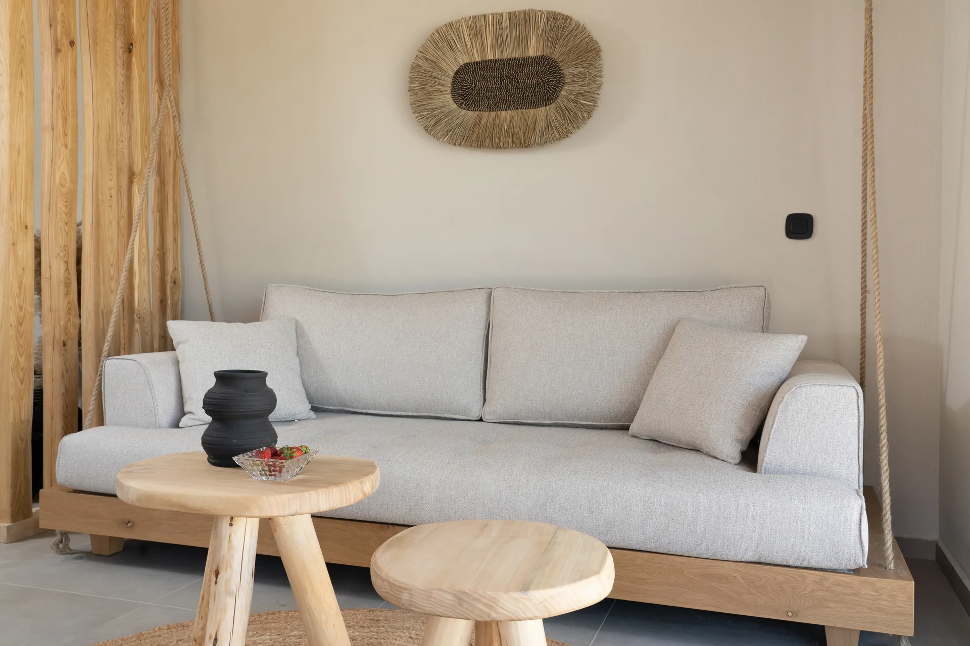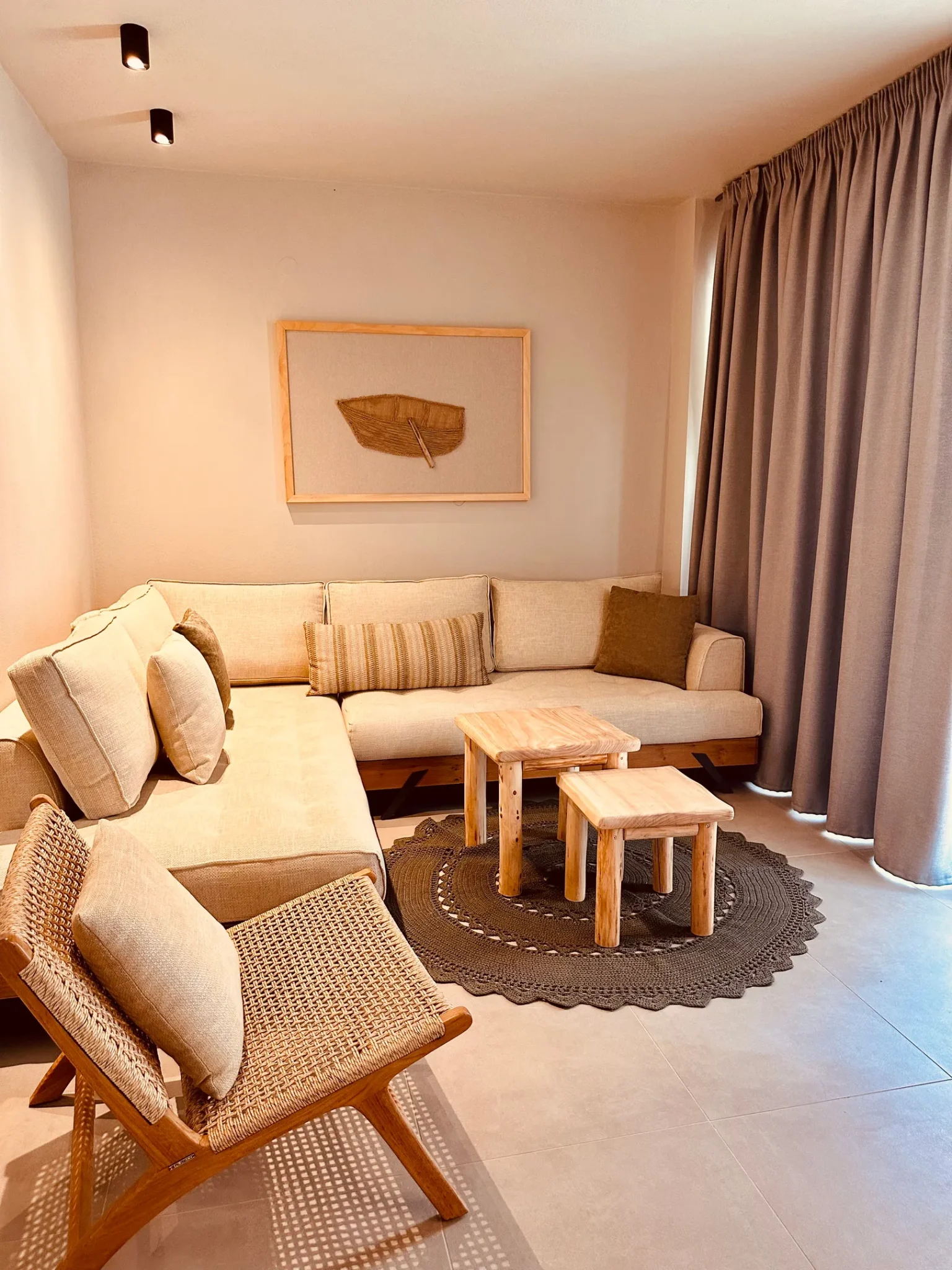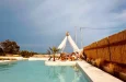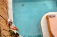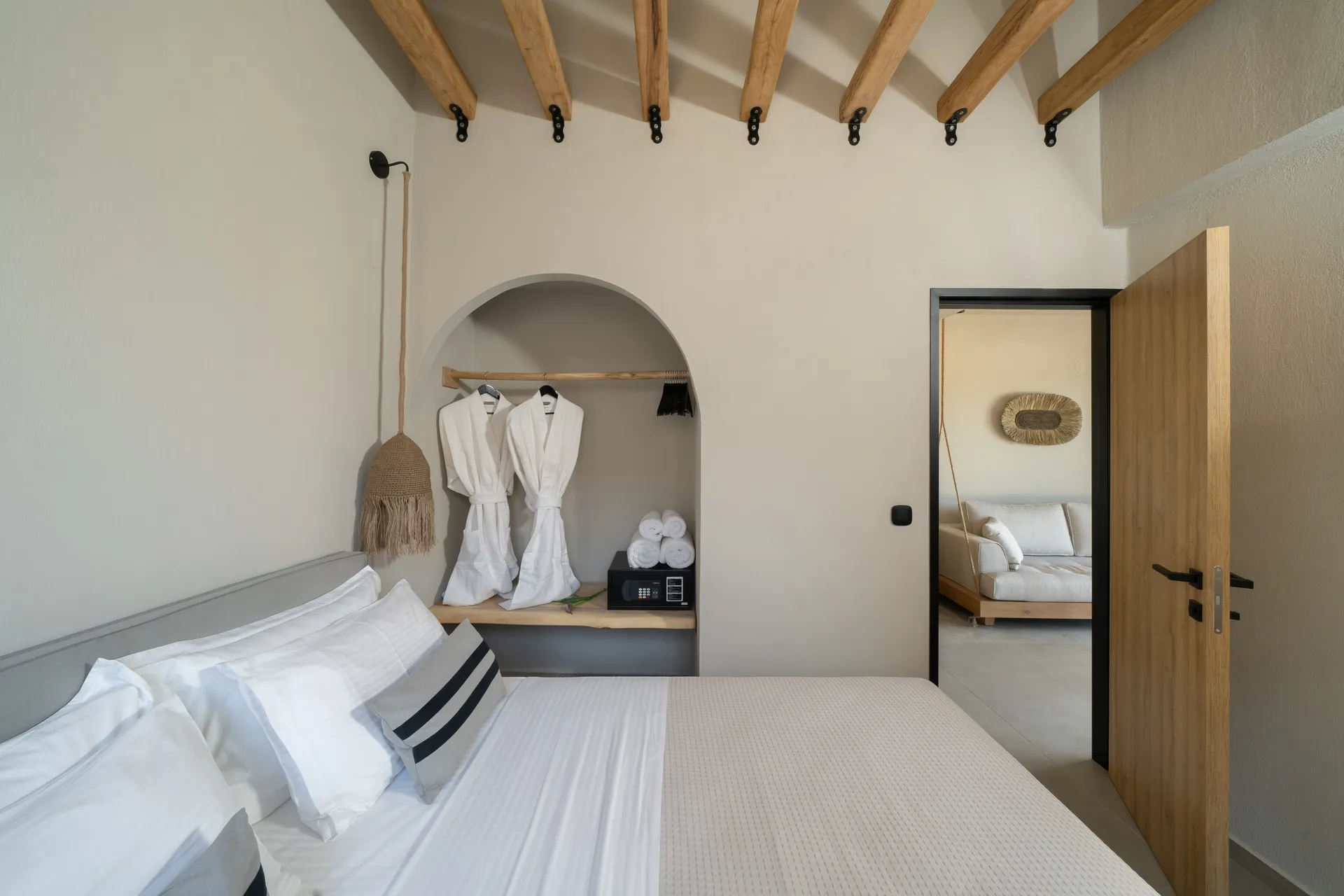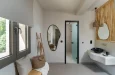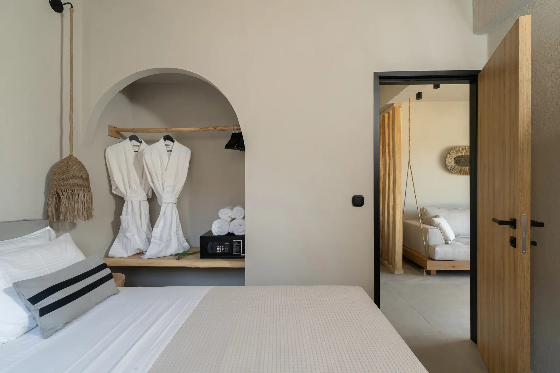 Naši elegantni dvospratni apartmani, površine 44 m2, nalaze se u prvom planu odmarališta, odmah iza centralnog bazena. Ovi dvospratni apartmani pružaju gostima najlepši pogled na Egejsko more, kombinujući jedinstvene smaragdne nijanse vode sa zemljanom atmosferom i boho-minimalističkom estetikom. Svaki apartman je obložen prirodnim materijalima kao što su kamen, drvo, bambus, ima dve spavaće sobe sa bračnim krevetima na različitim nivoima i dnevnu sobu. Takođe, prostrani balkon na gornjem spratu omogućava gostima da se opuste i uživaju u kombinaciji zadivljujućeg pogleda na duboko plavo more i zlatnu plažu, morskog povetarca, nezaboravnog pejzaža i očaravajućeg izlaska sunca. Apartman u prizemlju ima privatni otvoreni bazen koji će vas ogrnuti osvežavajućom vodom i neprekidnim pogledom na plavo Egejsko more.