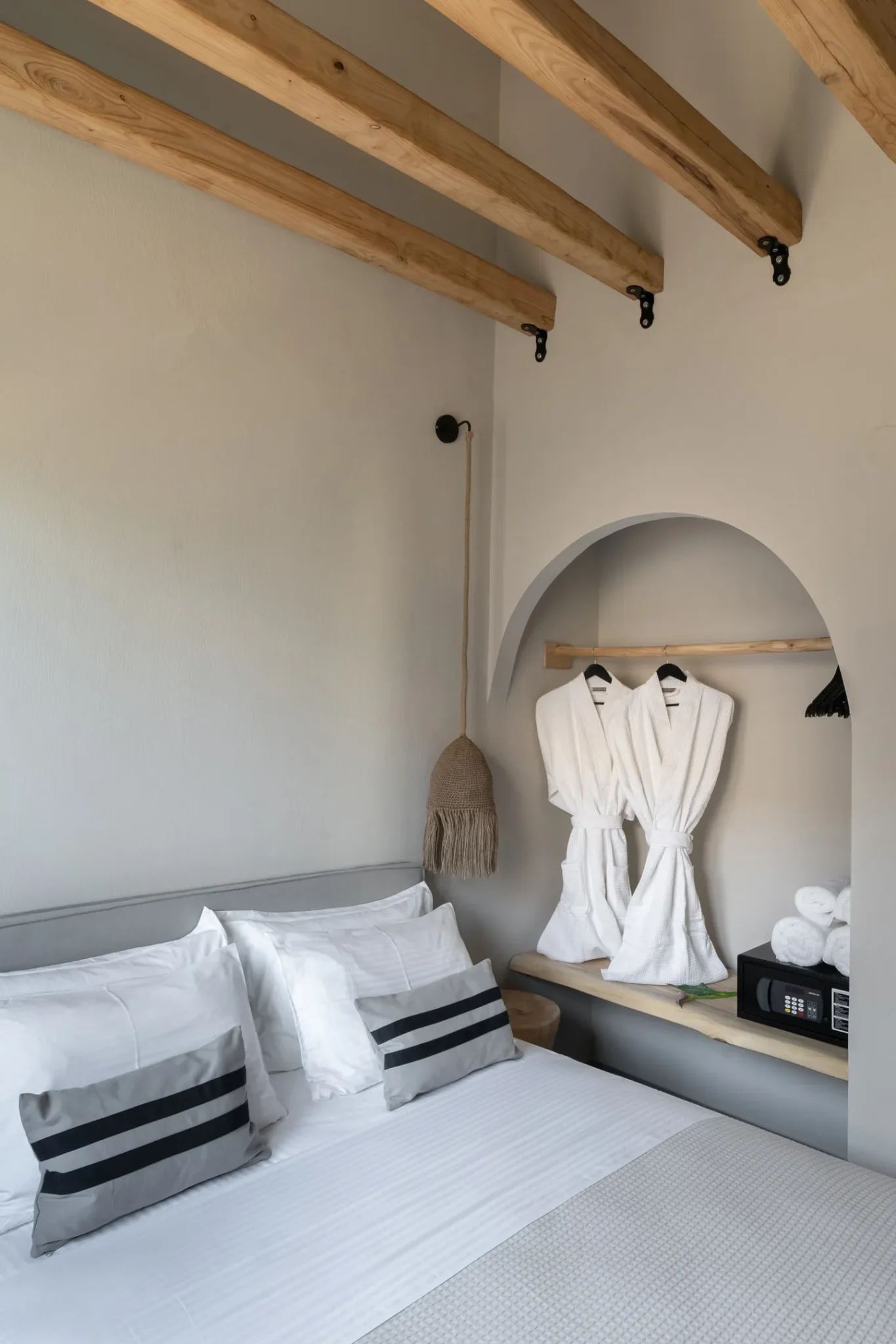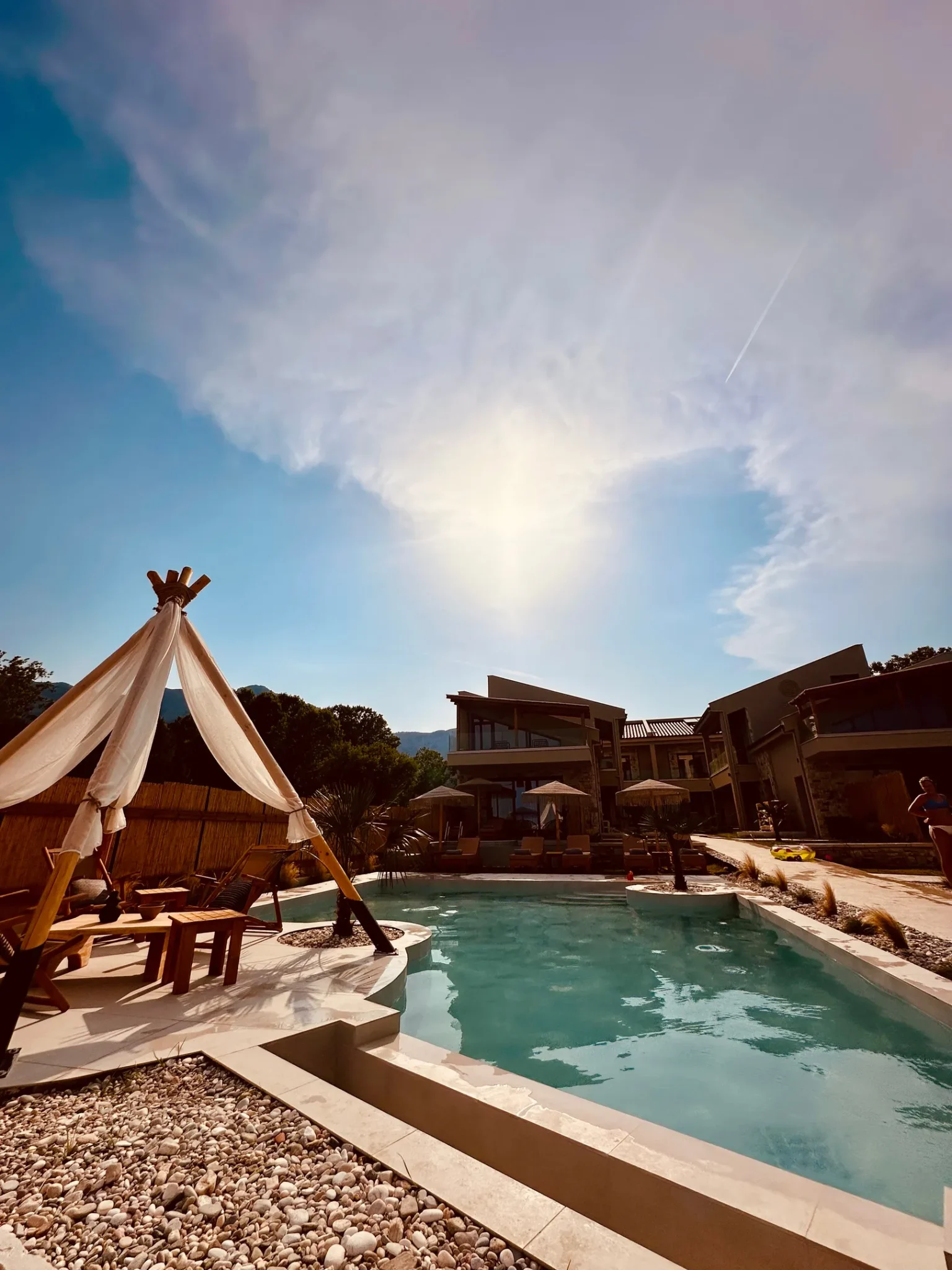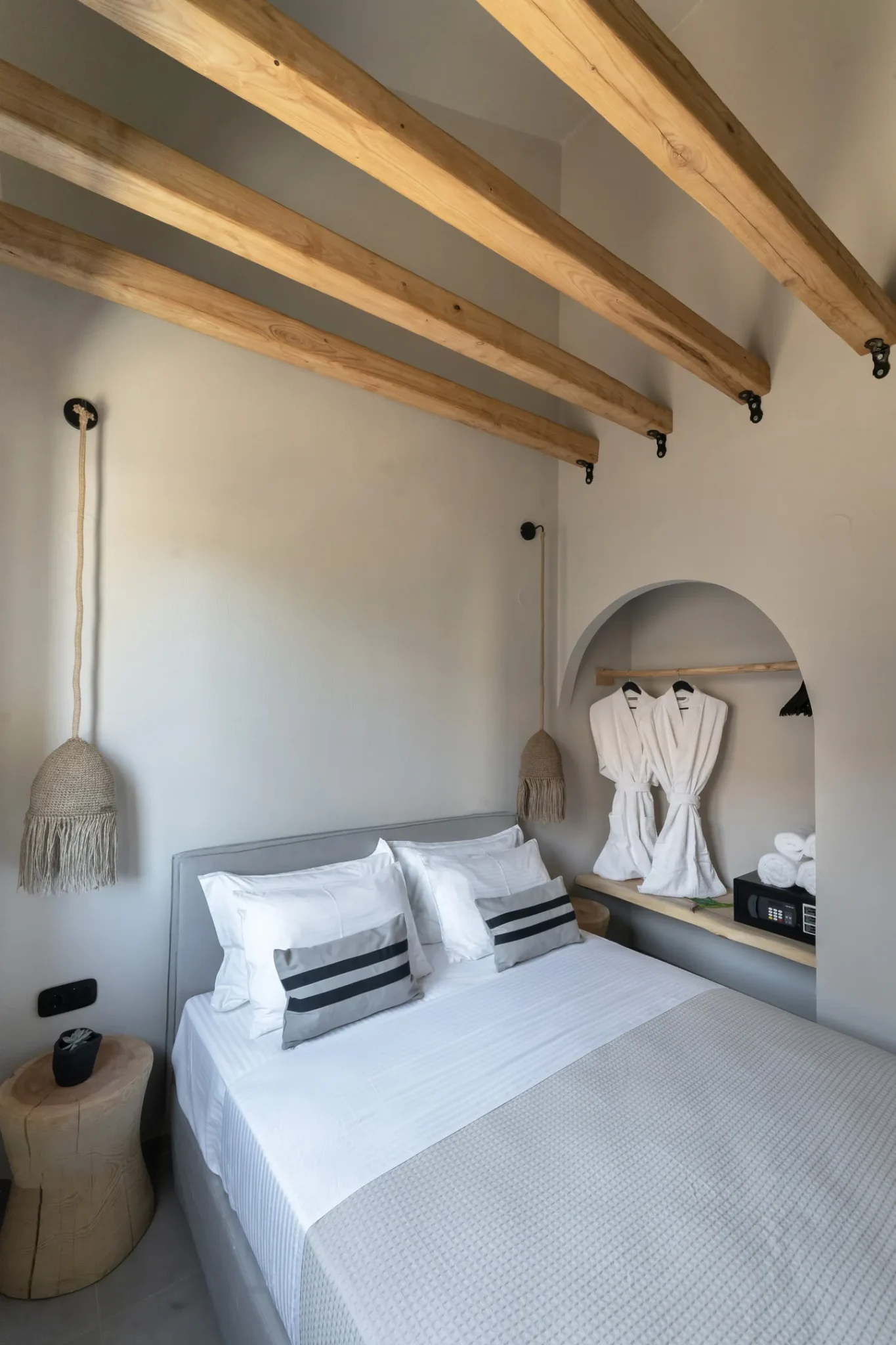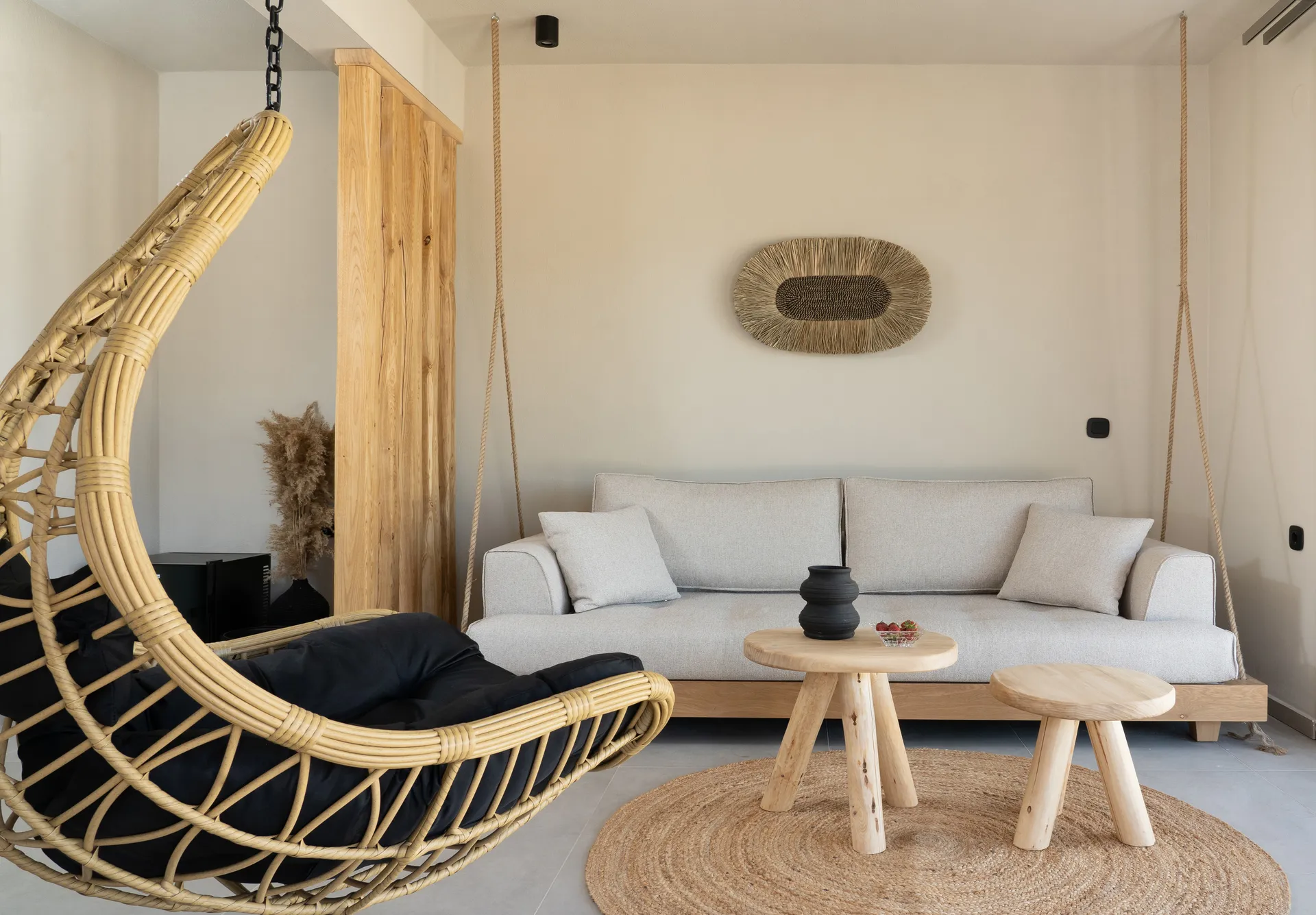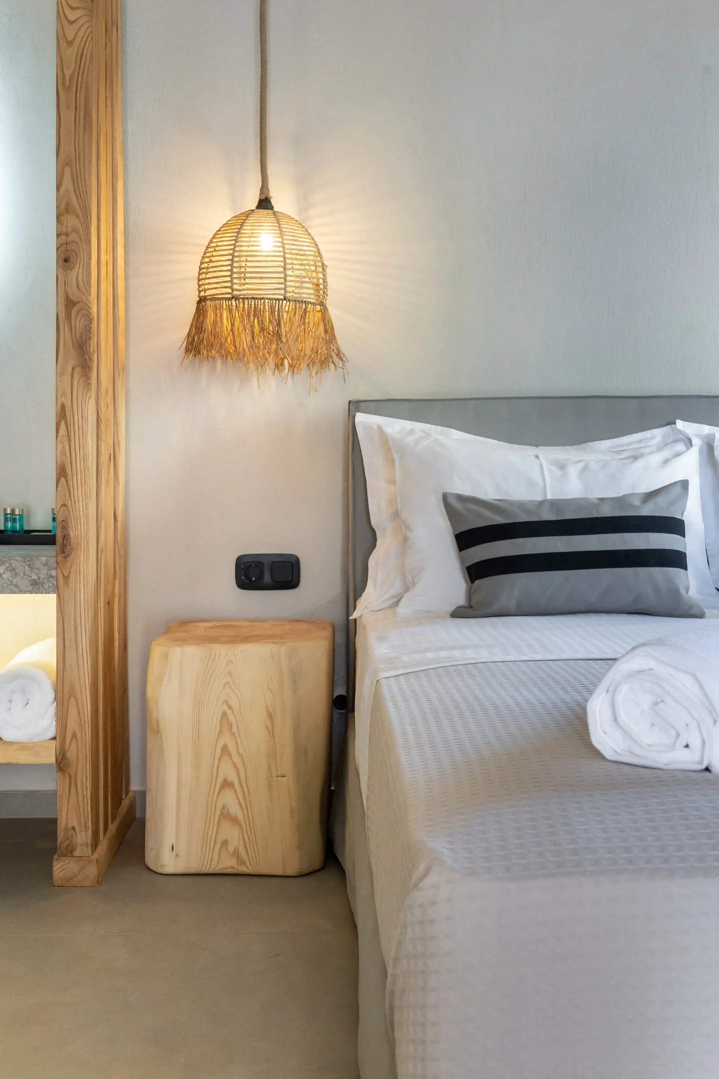 Naši elegantni dvospratni apartmani, površine 44 m2, nalaze se u prvom planu odmarališta, odmah iza centralnog bazena. Ovi dvospratni apartmani pružaju gostima najlepši pogled na Egejsko more, kombinujući jedinstvene smaragdne nijanse vode sa zemljanom atmosferom i boho-minimalističkom estetikom. Svaki apartman je obložen prirodnim materijalima kao što su kamen, drvo, bambus, ima dve spavaće sobe sa bračnim krevetima na različitim nivoima i dnevnu sobu. Takođe, prostrani balkon na gornjem spratu omogućava gostima da se opuste i uživaju u kombinaciji zadivljujućeg pogleda na duboko plavo more i zlatnu plažu, morskog povetarca, nezaboravnog pejzaža i očaravajućeg izlaska sunca. Apartman u prizemlju ima privatni otvoreni bazen koji će vas ogrnuti osvežavajućom vodom i neprekidnim pogledom na plavo Egejsko more.