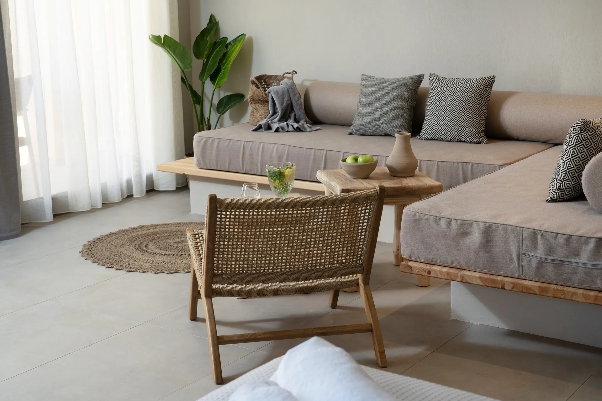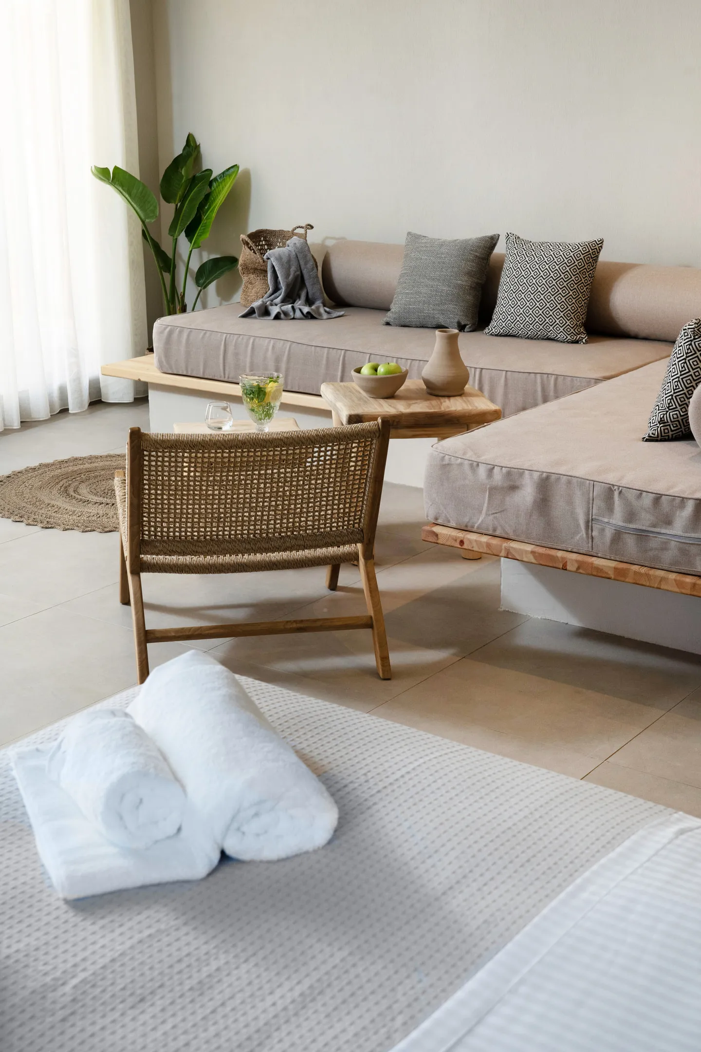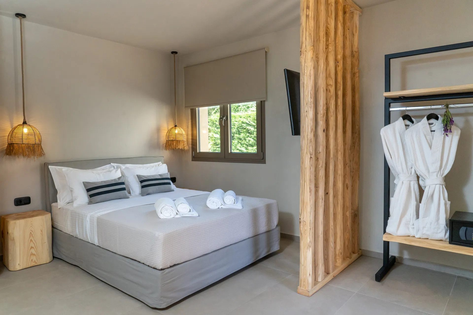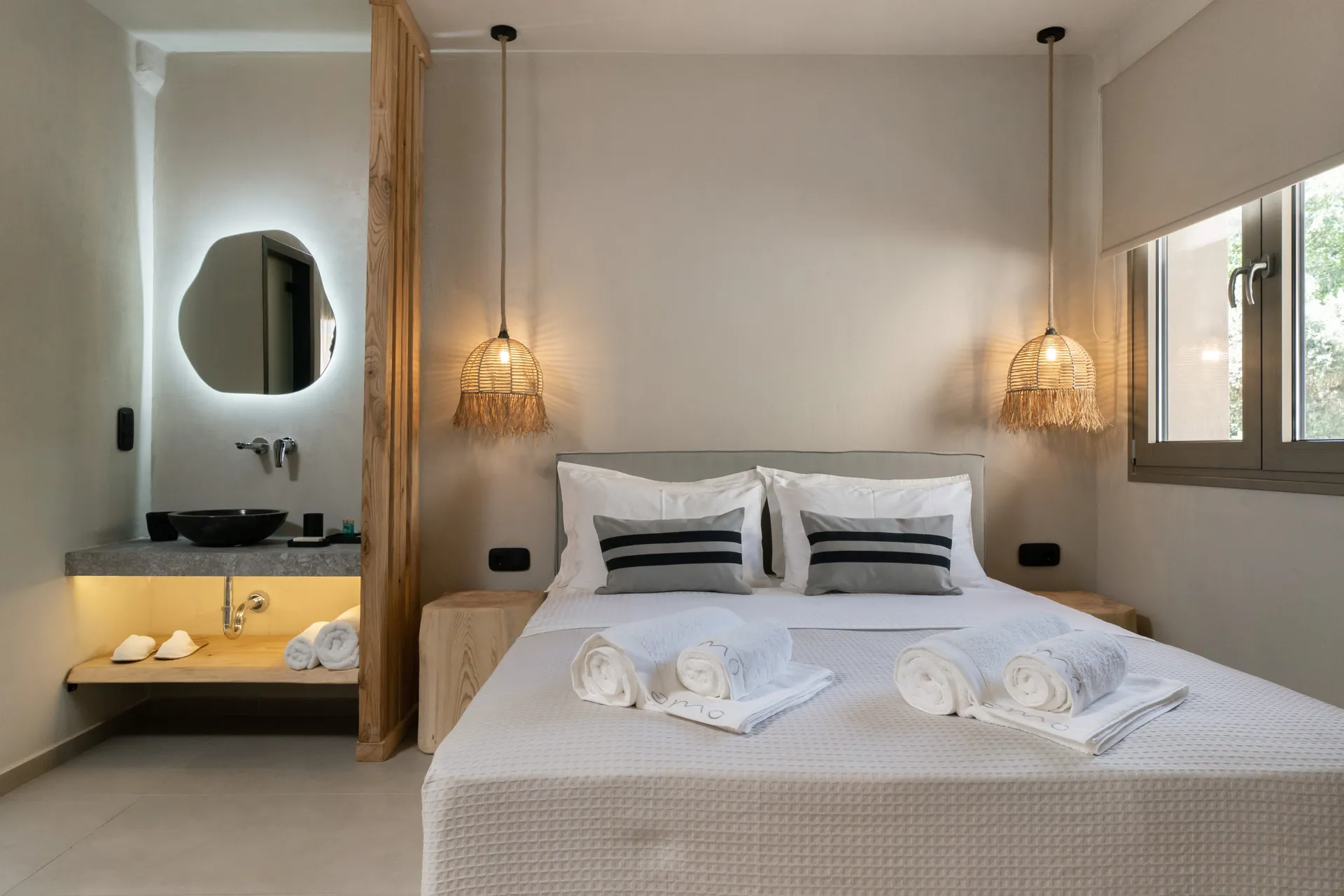U ovim apartmanima pronaći ćete mirno utočište idealno za potpuno opuštanje i spokoj. Smešteni u prizemlju treće zgrade, površine 32 m2, apartmani nude beskonačne trenutke spokoja kombinujući tople zemljane kombinacije boja i minimalističku dekoraciju sa mogućnošću korišćenja privatnih ležaljki koje se nalaze ispred terase apartmana, sa kojih se pruža jedinstven pogled na more. Svaki apartman sa bračnim krevetom i sofom koji se može razvući u dva odvojena kreveta, može da primi do 4 osobe, pruža udobno i opuštajuće iskustvo.