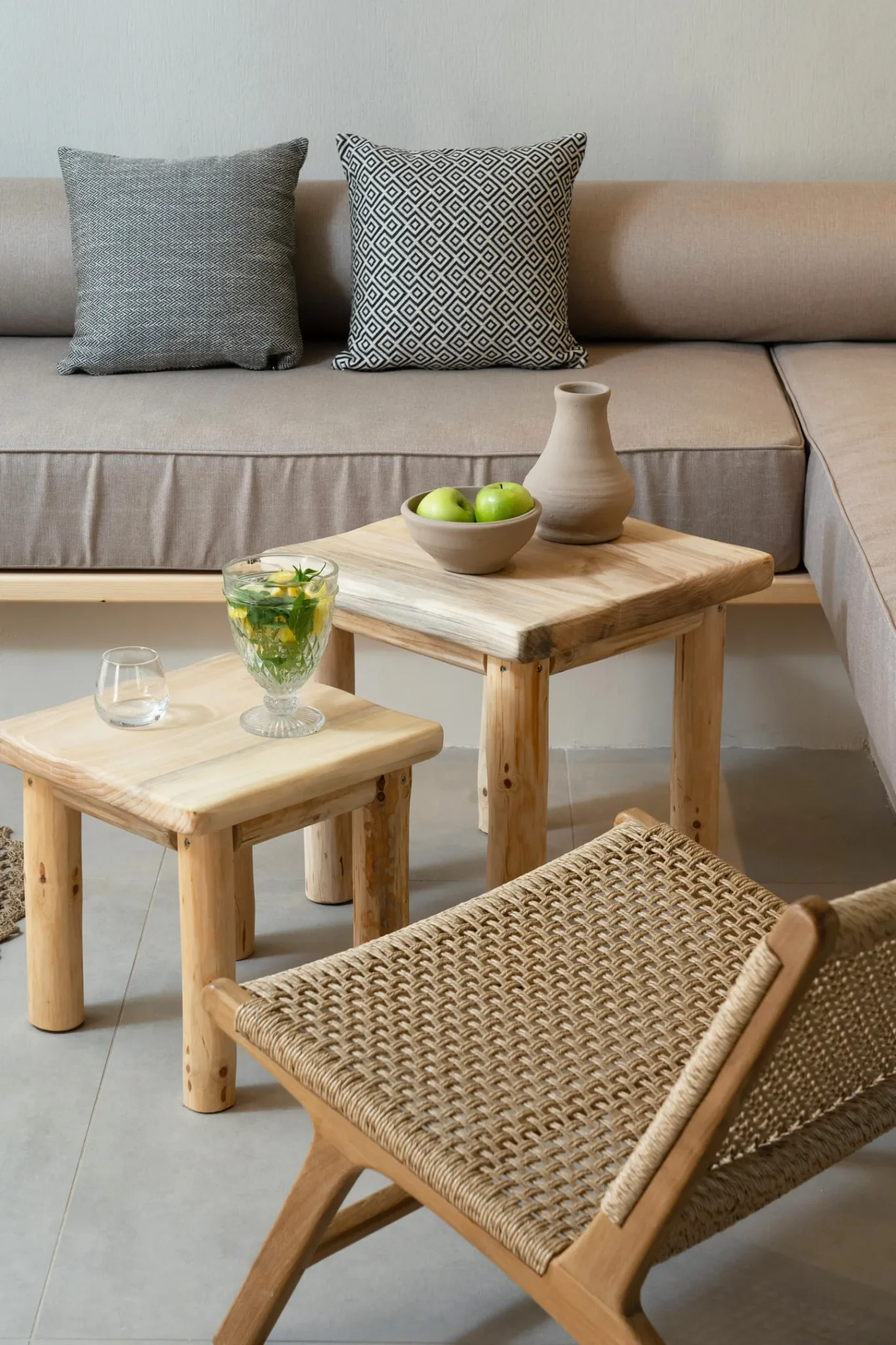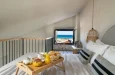 Otkrijte ove jedinstvene dvospratne apartmane smeštene na gornjem spratu treće zgrade, površine 44 m2, koji nude neuporediv pogled na more. Prirodna lepota pejzaža se savršeno ogleda u zemljanim bojama i boho dekoru. Svaki apartman ima bračni krevet na spratu, sofu u prizemlju koja se rasklapa u dva odvojena kreveta, za smeštaj do 4 osobe i privatni balkon za odmor, opuštanje i uživanje u luksuzu blistavog sunca, dubokog plavog mora, zvukova prirode i mirnog pejzaža.