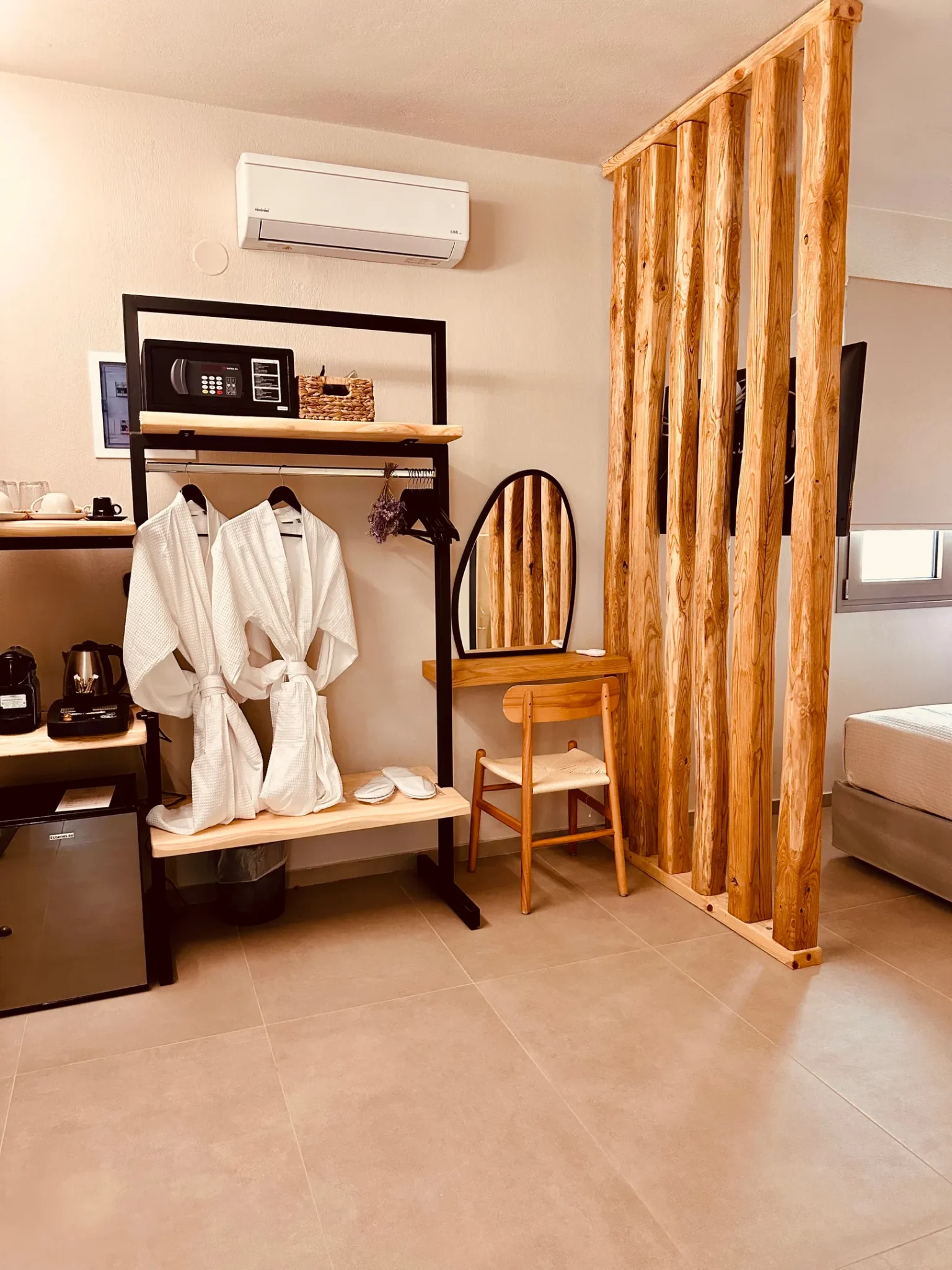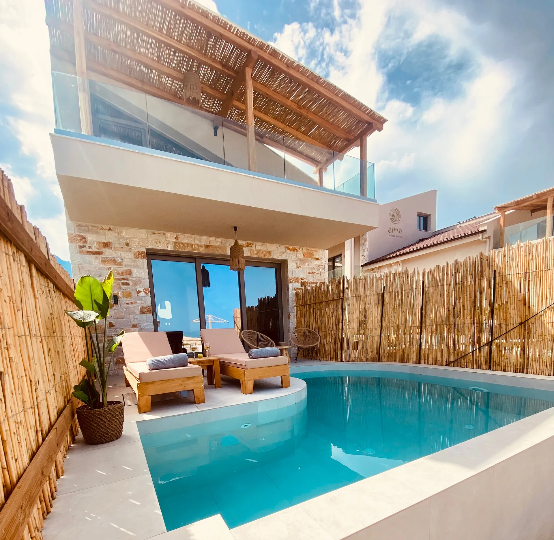 Dobrodošli u Amo Golden Suites, gde se plavetnilo Egeja susreće sa zlatnim peskom Tasosa. Smešteni na samo nekoliko metara od čuvene Golden beach, naši novoizgrađeni apartmani se besprekorno stapaju sa zaštićenim prirodnim pejzažom ostrva. Amo Golden Suites redefiniše luksuz kao iskustvo autentičnosti, spokoja i prefinjene jednostavnosti — stav koji vas prati od prvog do poslednjeg trenutka vašeg boravka.