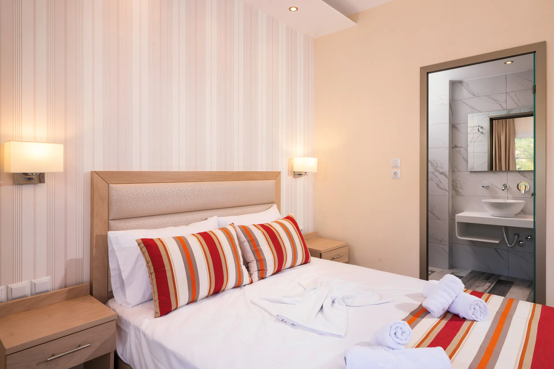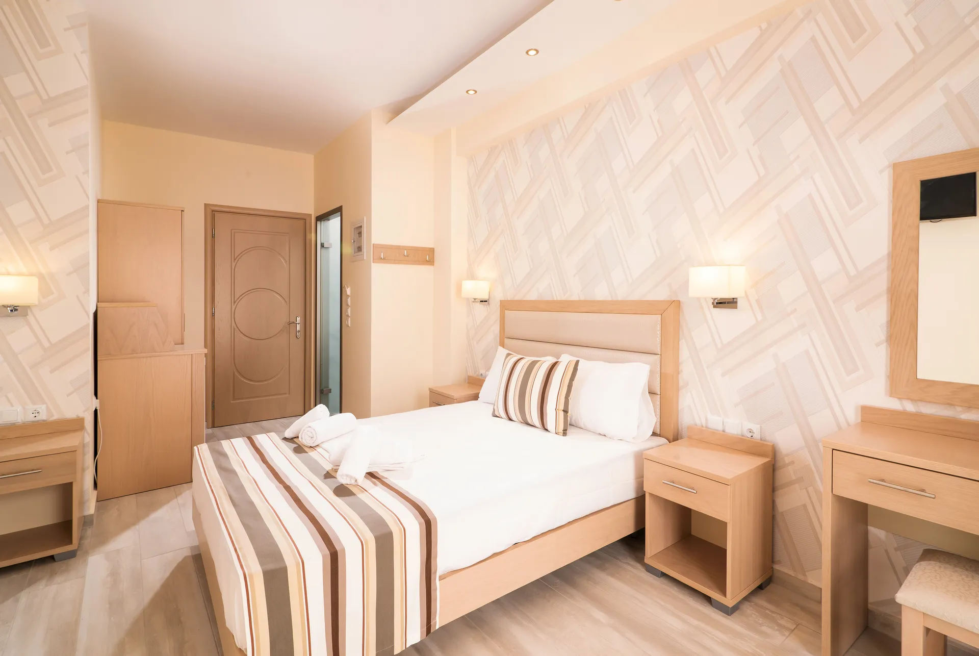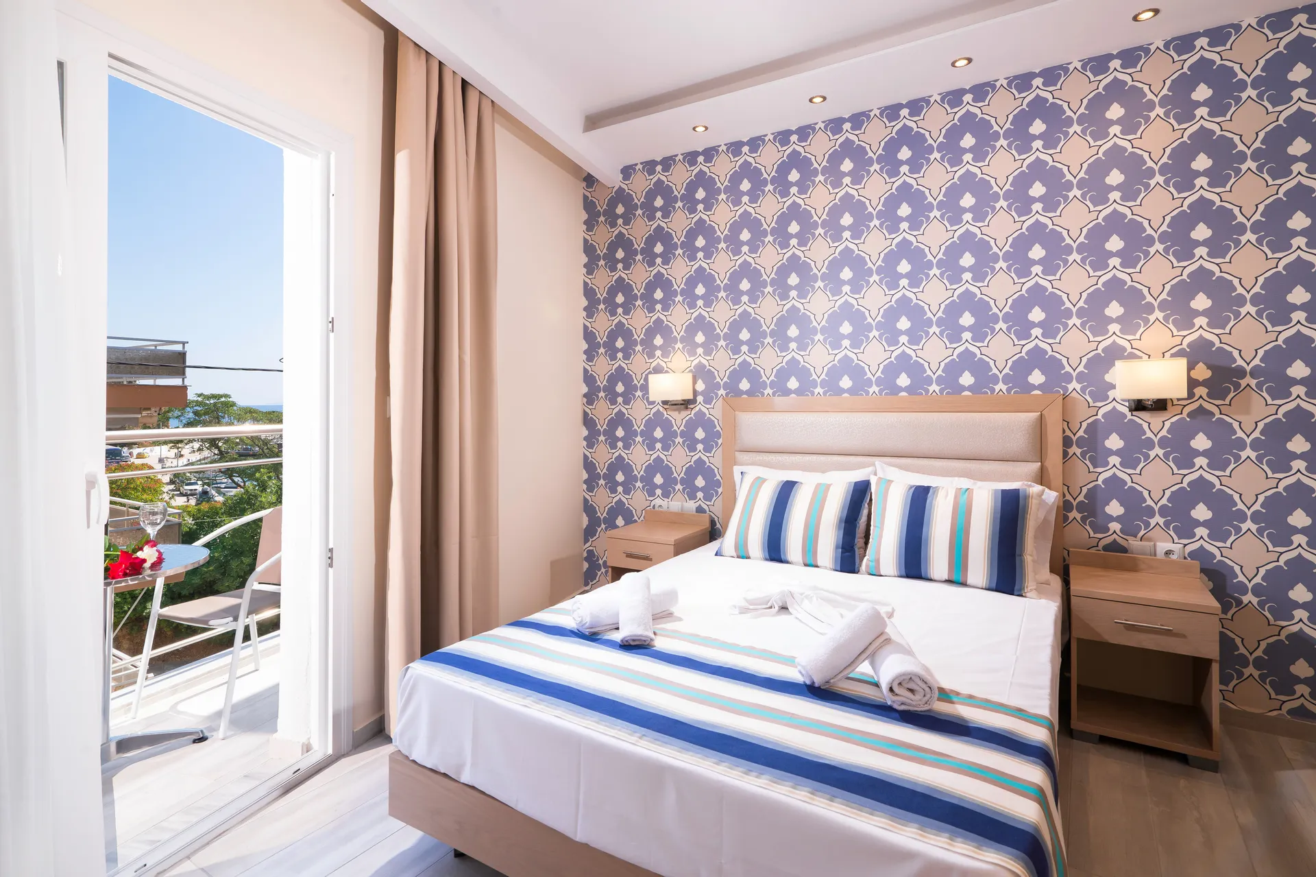 Ova dvokrevetna soba ima stilski dekor, stvarajući prijatnu atmosferu za vaš odmor. Idealna je za parove koji traže mali beg od zadovoljstva, jer može da primi do 2 gosta. Soba sadrži bračni krevet, garderober, mini frižider, moderno kupatilo sa tušem i sve potrebne sadržaje koji će vaš boravak učiniti udobnim. Na kraju, soba ima direktan pristup nameštenom balkonu sa prelepim delimičnim pogledom na more, gde se možete opustiti.