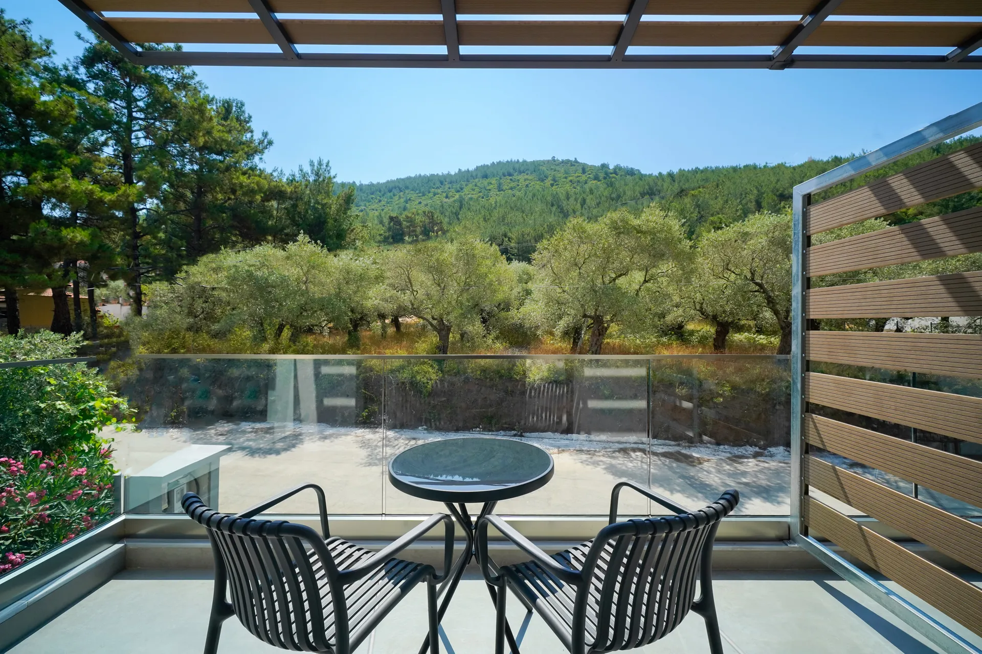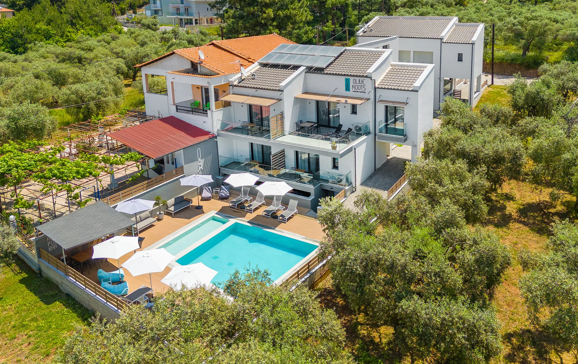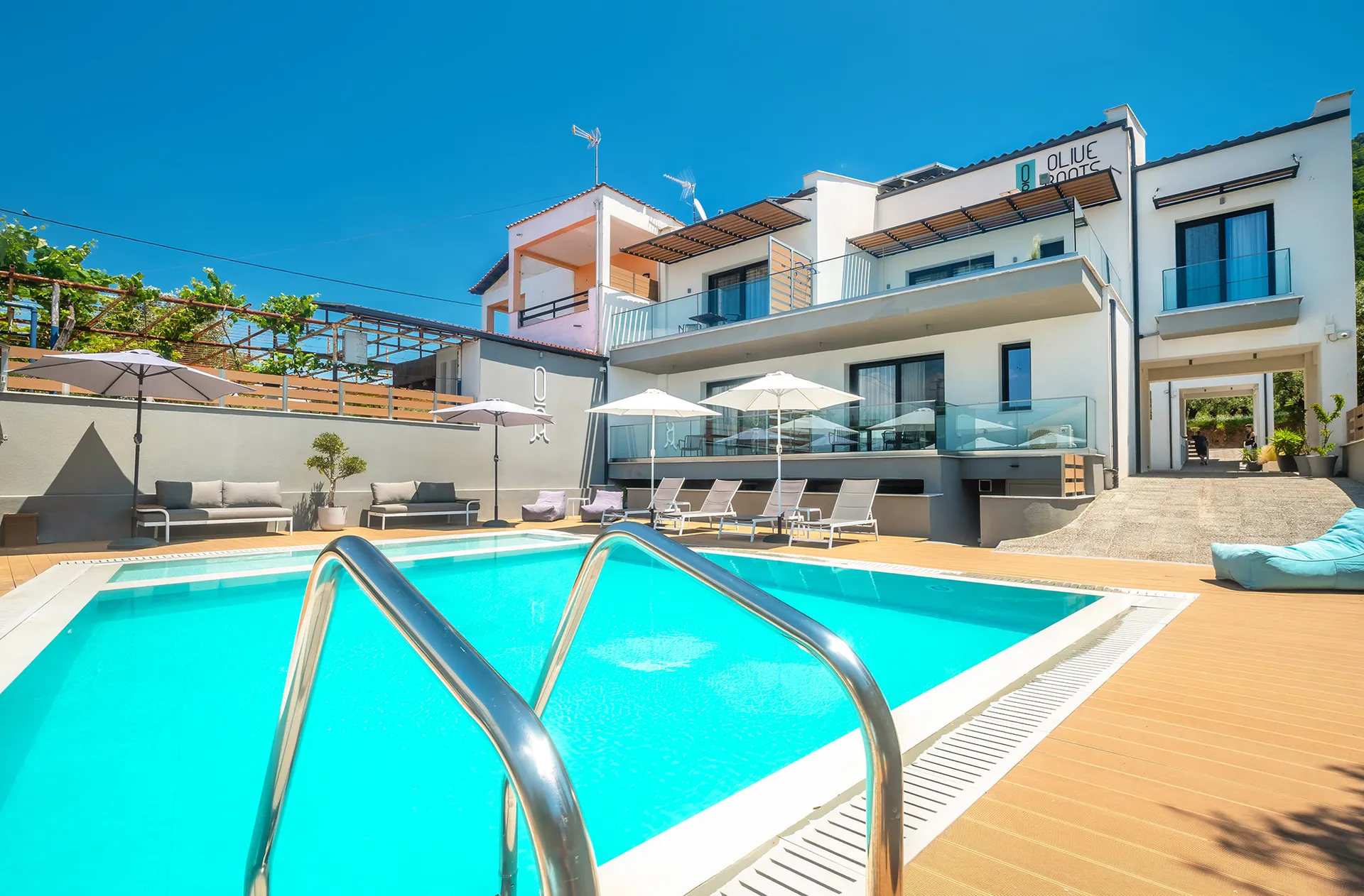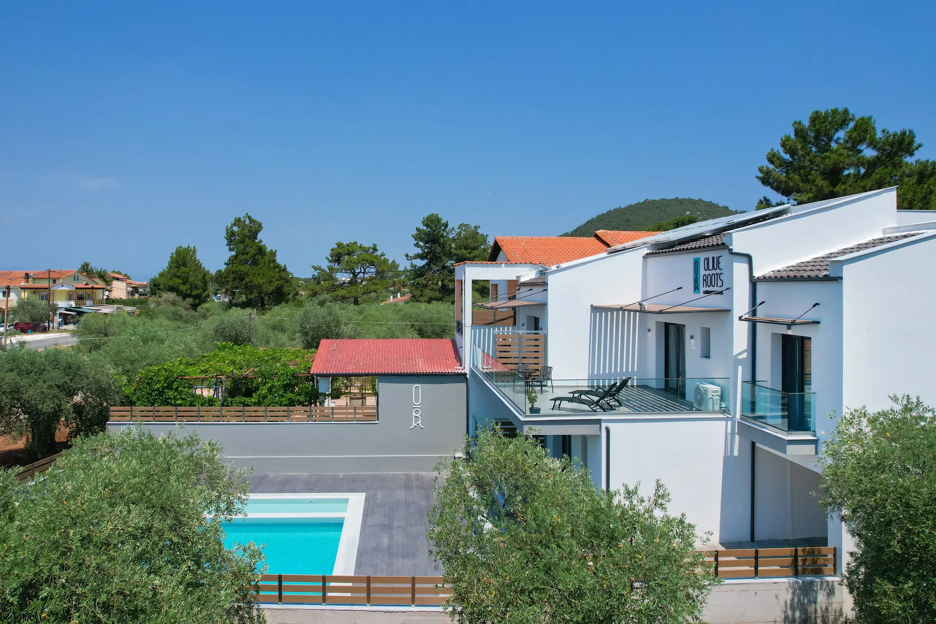 Smešten među bezbrojnim stablima maslina, naš objekat spaja moderan minimalistički dizajn sa prirodnom lepotom i jednostavnošću grčkog života. Inspirisan našim okruženjem, naziv „Olive Roots Thassos“ odražava i našu povezanost sa prirodom i našu posvećenost autentičnom gostoprimstvu.