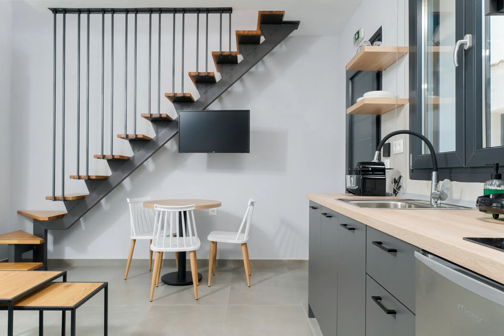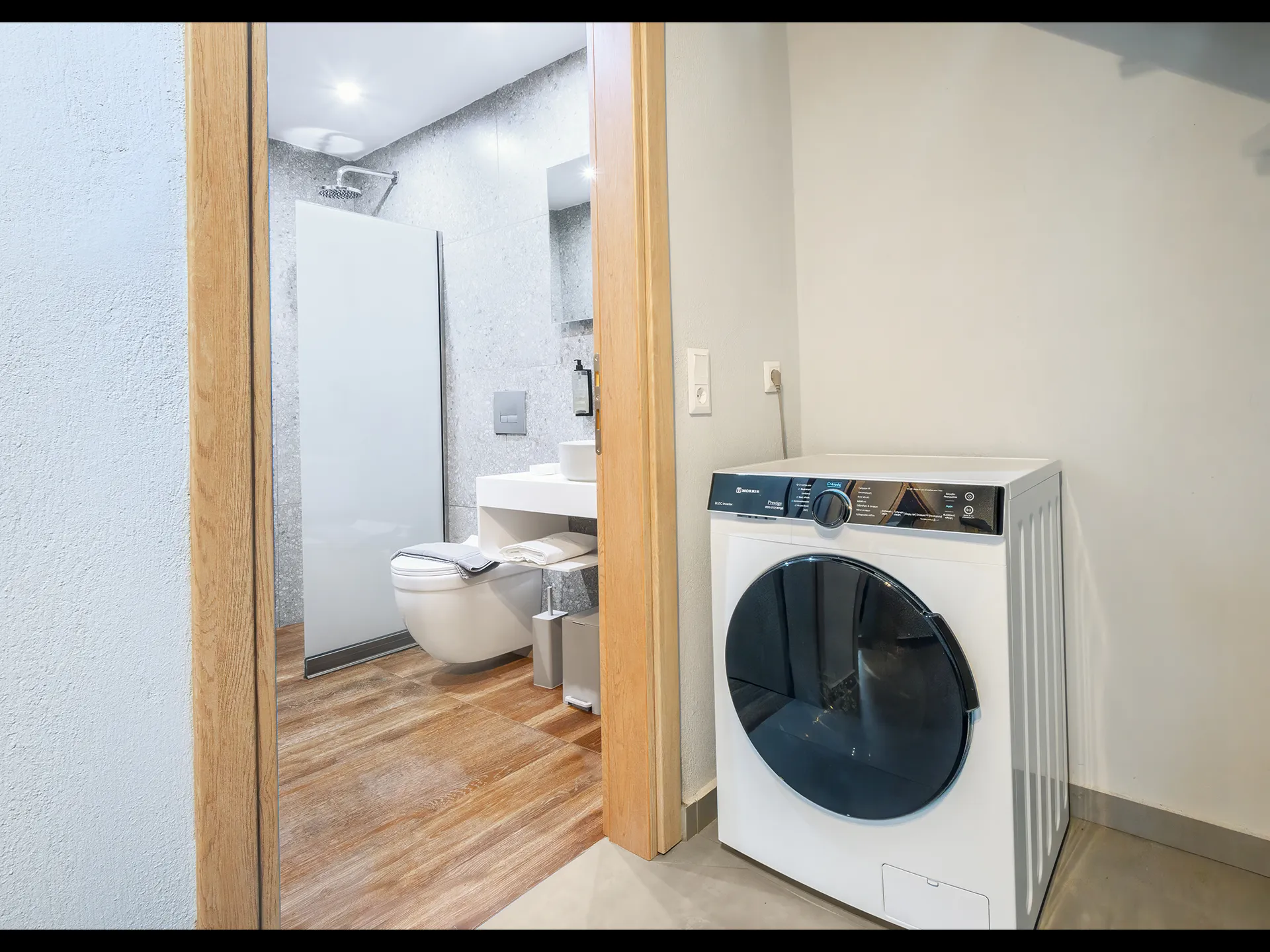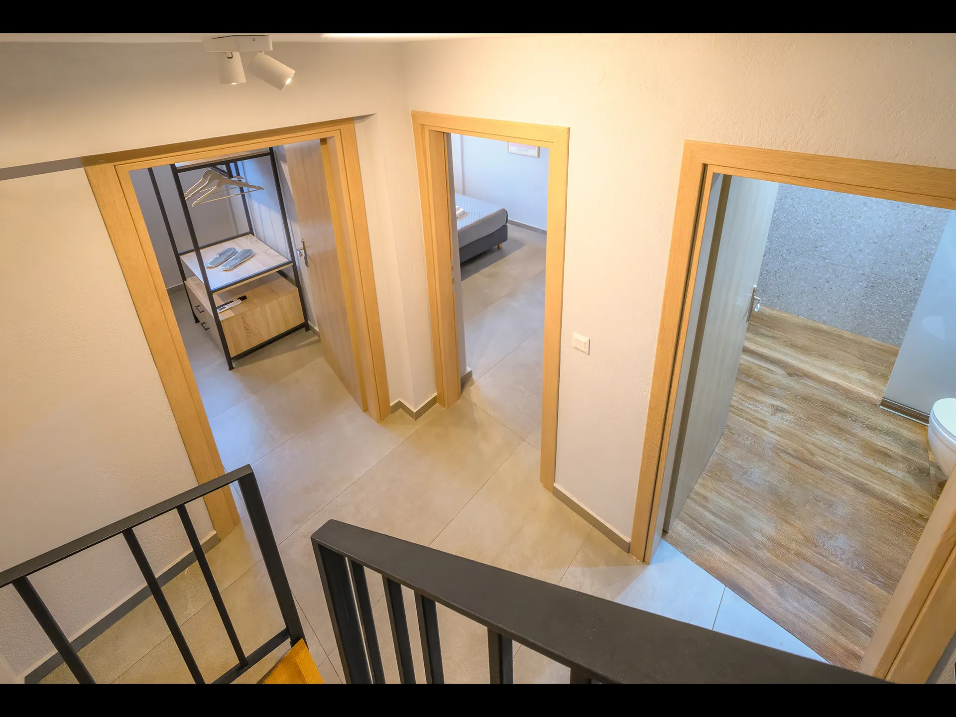 Family Suite Dobrodošli u naš prostrani porodični apartman od 70 kvadratnih metara, savršen za porodice ili putnike. Glavni sprat sadrži otvoreni dnevni boravak sa sofom na razvlačenje, modernim dekorom i potpuno opremljenom kuhinjom sa frižiderom, šporetom i posuđem. Dve udobne spavaće sobe u podrumu nude miran san, a mašina za pranje veša je obezbeđena za vašu udobnost. Uživajte u velikom privatnom balkonu, idealnom za jutarnju kafu ili večernje opuštanje. Doživite savršen spoj udobnosti i praktičnosti, čineći vaš boravak nezaboravnim i prijatnim. Bilo da je u pitanju kratka poseta ili duži boravak, osećaćete se kao kod kuće u našem prelepo opremljenom smeštaju.