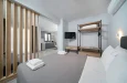 Superior Suite Uđite u naš privlačan Superior apartman sa privatnim ulazom, idealan za porodice ili manje grupe. Ovaj prostrani apartman sa privatnim ulazom sastoji se od 1 spavaće sobe, prostora za sedenje i 1 kupatila sa tušem. Apartman sadrži u prizemlju spavaću sobu sa bračnim krevetom i vratima za potpunu privatnost, kao i sofu na razvlačenje u dnevnoj sobi. Drugi bračni krevet nalazi se u otvorenom prostoru za spavanje na gornjem nivou, do kojeg se može doći unutrašnjim stepeništem. Iako je uzdignut i nezavisan od dnevnog boravka, ovaj prostor nije odvojen vratima koja se zatvaraju. Dobro opremljena kuhinja sadrži ploču za kuvanje, posuđe i toster. Klimatizovani apartman nudi TV ravnog ekrana sa striming uslugama, zvučno izolovane zidove, mini-bar, aparat za čaj i kafu, kao i pogled na baštu. Jedinica nudi 3 kreveta.
