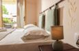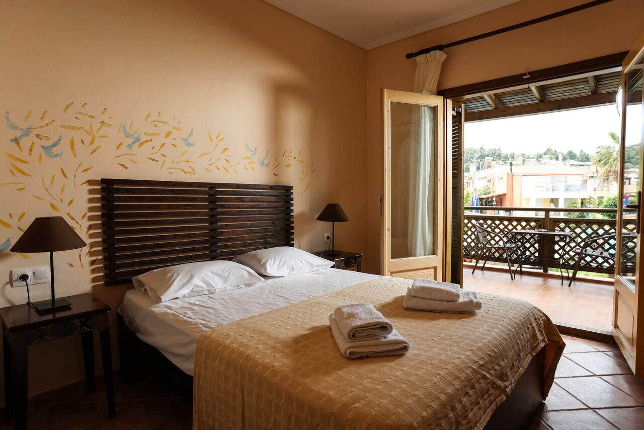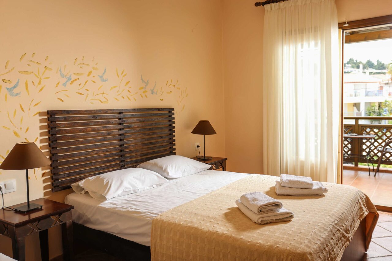Ovaj studio na gornjem spratu ima 1 bračni krevet i 1 sofu na razvlačenje sa pogledom na bazen ili baštu sa svog privatnog balkona ili terase. Imajte u vidu da ovaj tip sobe ne može da primi dete od 5 godina u postojećem krevetu. Pod je od pločica/mermera. Dostupni su klima uređaj, frižider, TV, električno kuvalo, sušilica za odeću, peškiri, ormar ili plakari, spoljni nameštaj.