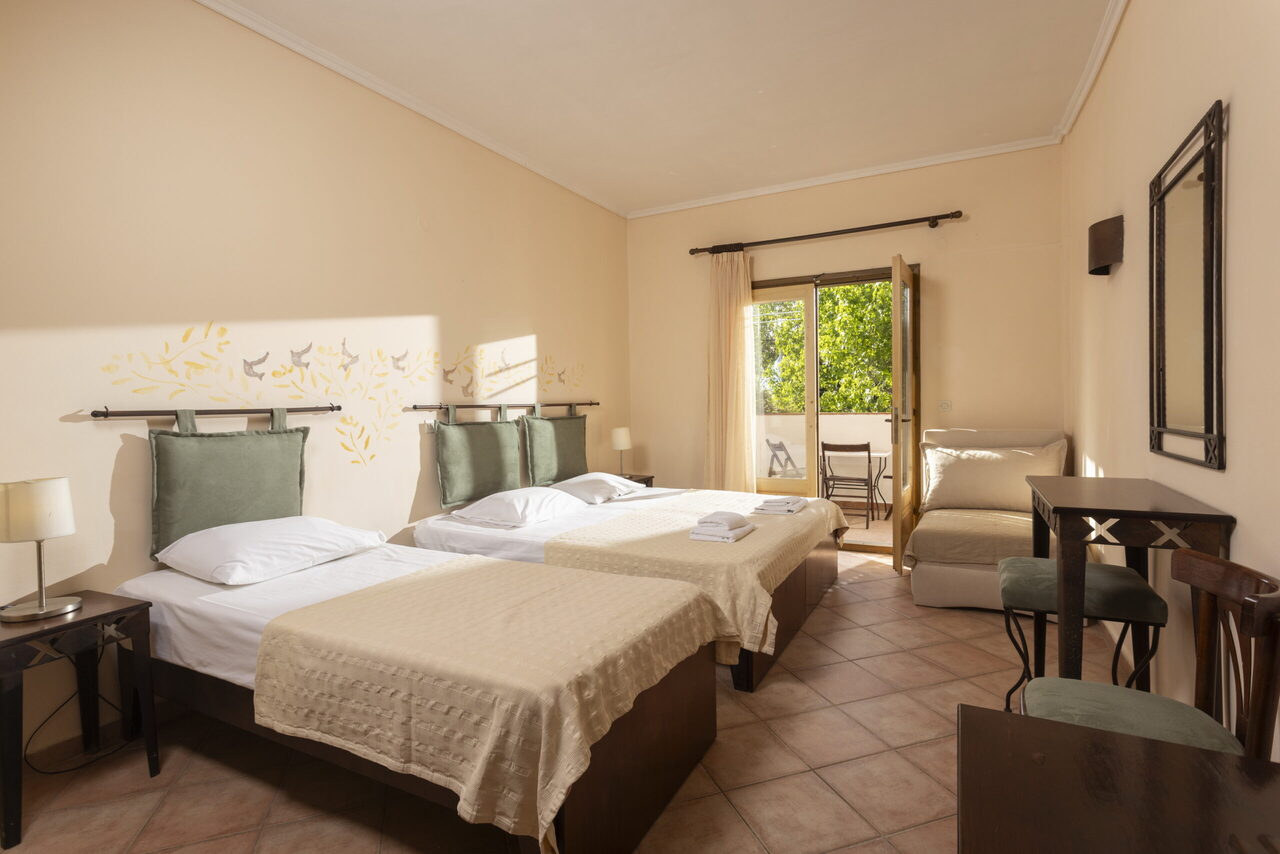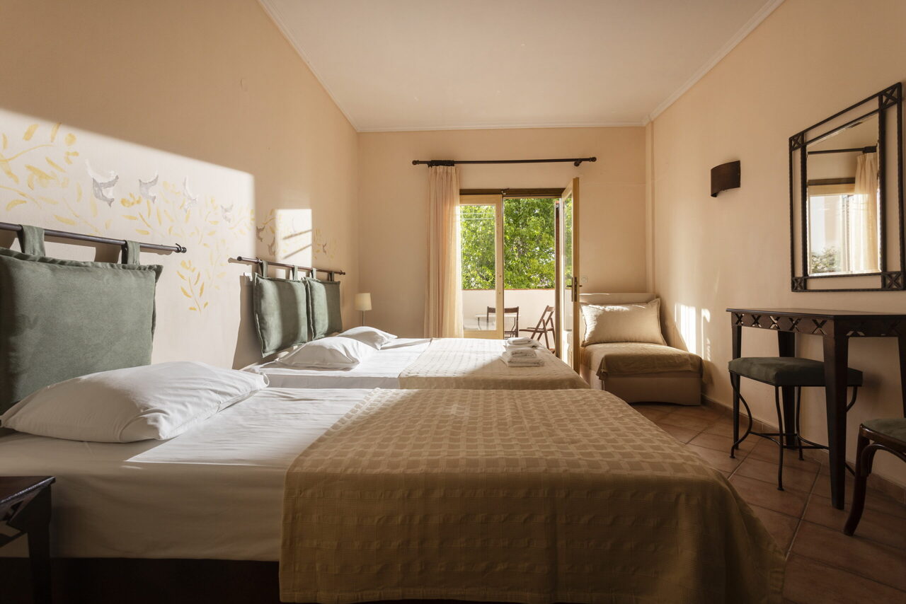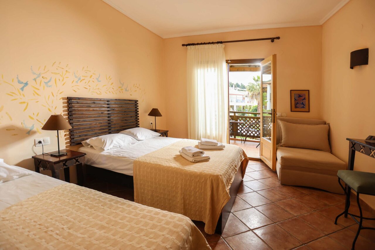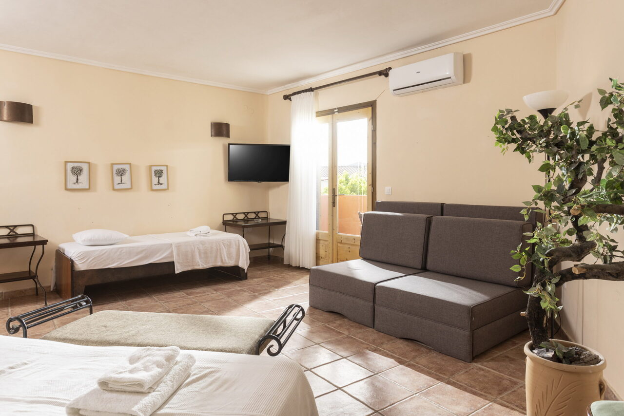 Prostrana porodična soba ima 4 kreveta i pogled sa svog privatnog balkona ili terase. Pod je od pločica/mermera. Dostupni su klima uređaj, sofa na razvlačenje, frižider, TV, električno kuvalo, sušilica za odeću, peškiri, ormar ili plakari, spoljni nameštaj.