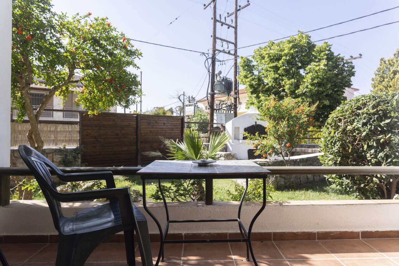 Ovaj studio ima pogled na bazen ili baštu sa svog privatnog balkona ili terase. Pod je od pločica/mermera. Dostupni su klima uređaj, sofa na razvlačenje, frižider, TV, električno kuvalo, sušilica za odeću, peškiri, ormar ili plakari, spoljni nameštaj.