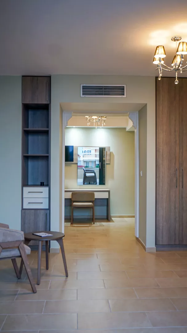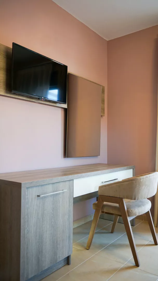 Sadržaj soba: Pažljivo biran minimalistički nameštaj koji pruža vrhunsku udobnost i upotpunjuje Vaš užitak.