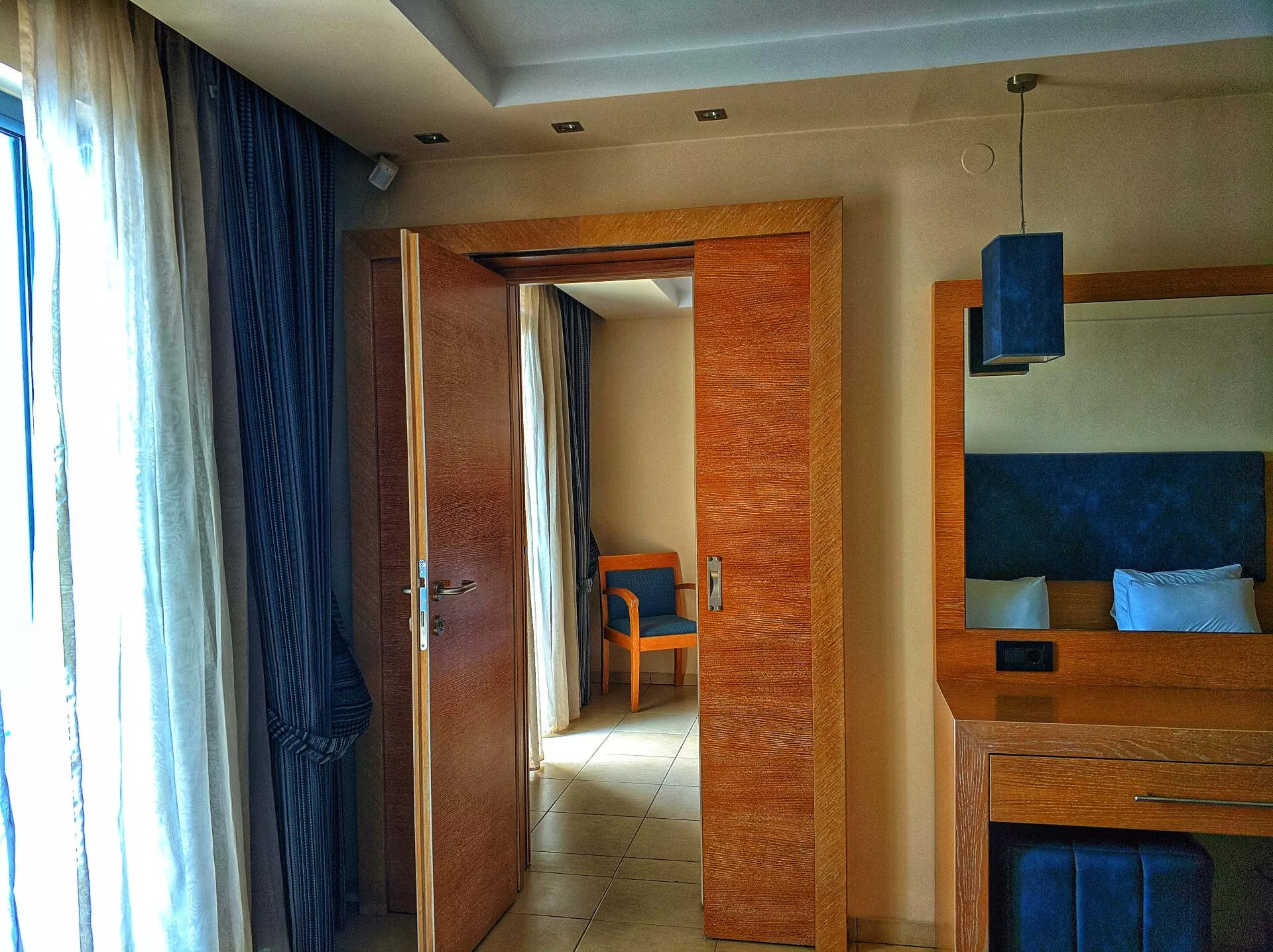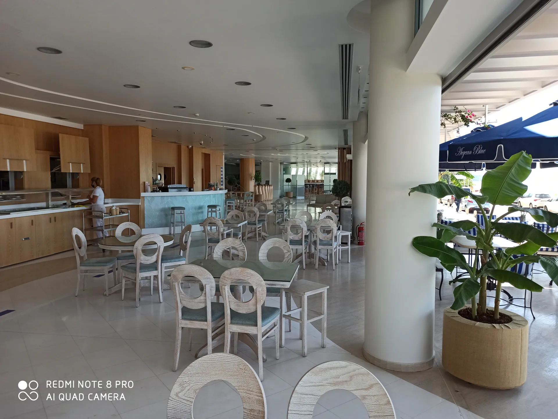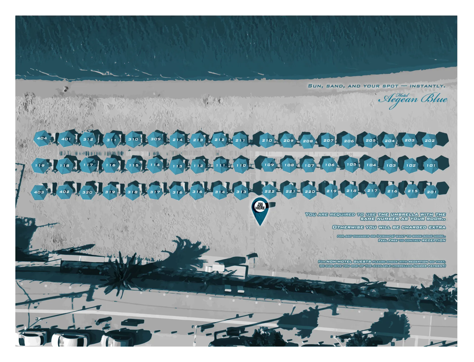 Aegean Blue Hotel se nalazi u centru Nea Kalikratije u severnoj Grčkoj. Izgrađen je na obali mora, na peščanoj plaži. U blizini se nalazi mnogo restorana, kafića, barova i dobar trgovački centar. Nudi 57 potpuno opremljenih soba sa pogledom na more ili bez. Za novu sezonu, samo hotelske sobe su u funkciji. U zgradu možete ući koristeći ključ karticu sobe. Kada osoblje nije prisutno na recepciji, možete se prijaviti uz lozinku za ulaz. Podzemni parking se dodatno naplaćuje. Sva plaćanja mogu biti izvršena putem vaše kreditne kartice.