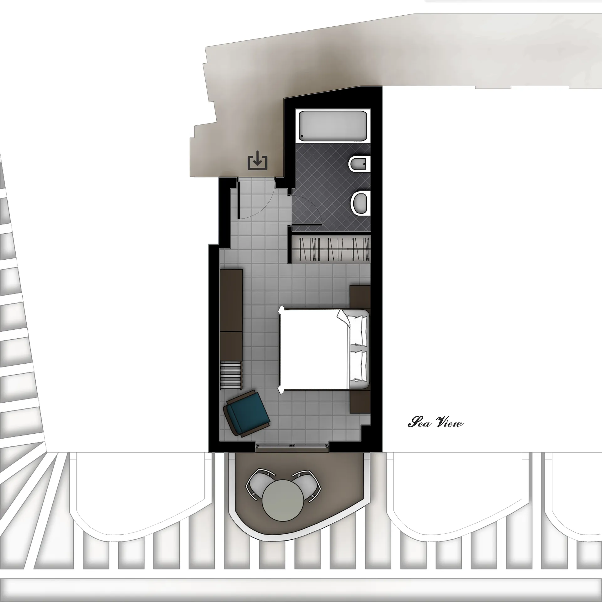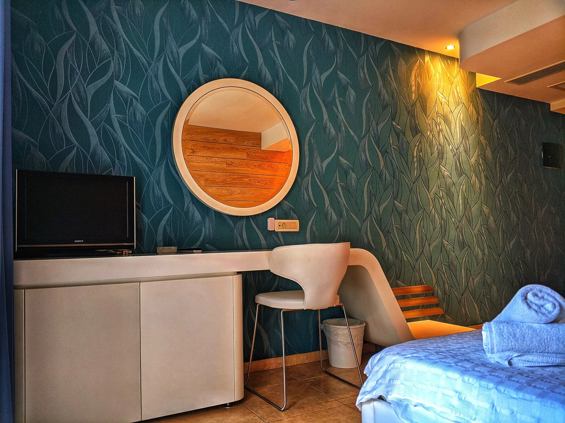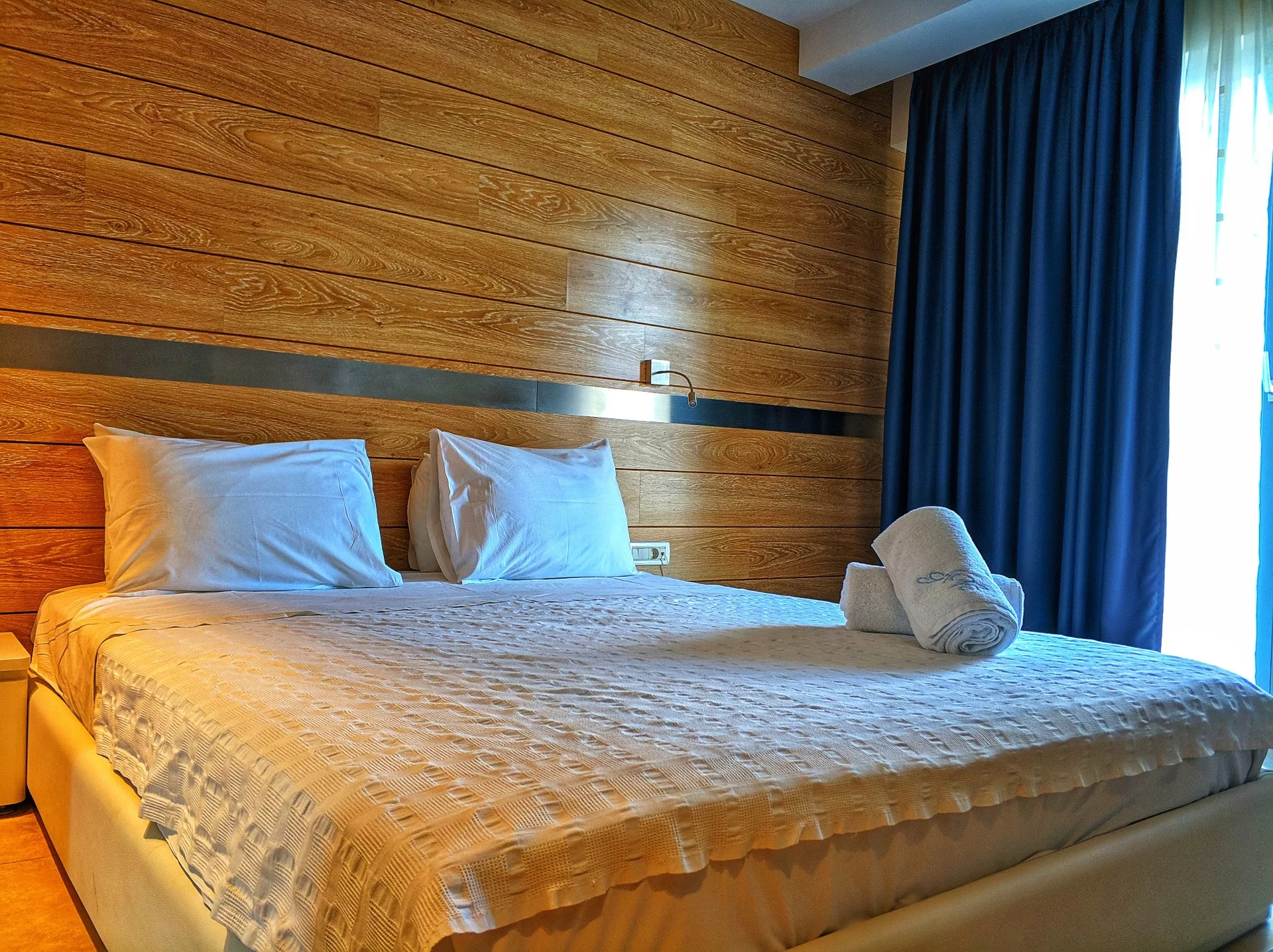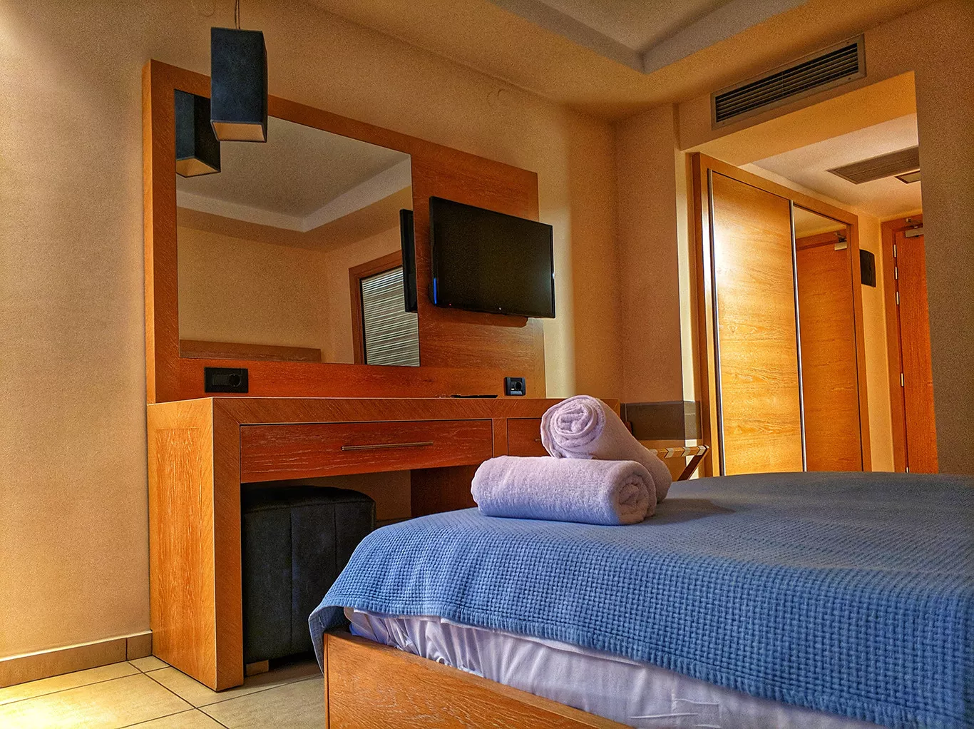 Izgrađen od najfinijih materijala, lep i ekološki prihvatljiv, sa instaliranim bezbednosnim sistemom i bežičnim internetom u javnim prostorijama. Njihovih 57 prostranih soba su ergonomski dizajnirane, opremljene modernim drvenim nameštajem od prirodnog hrasta u kombinaciji sa finim italijanskim tkaninama u bojama mora (plava i siva). Svaka vrata sobe su opremljena karticom. Sve sobe imaju odvojeno grejanje, zvučnu izolaciju, toplotnu izolaciju, izolovana vrata. Kupatila su opremljena higijenskim potrepštinama CARRON i GSI, dok su cevi napravljene od poznatog italijanskog brenda “LA TORRE”. Ograde na balkonu, verandi i stepeništu su od satenskog nerđajućeg metala i pružaju sofisticiran, minimalistički dizajnerski osećaj.