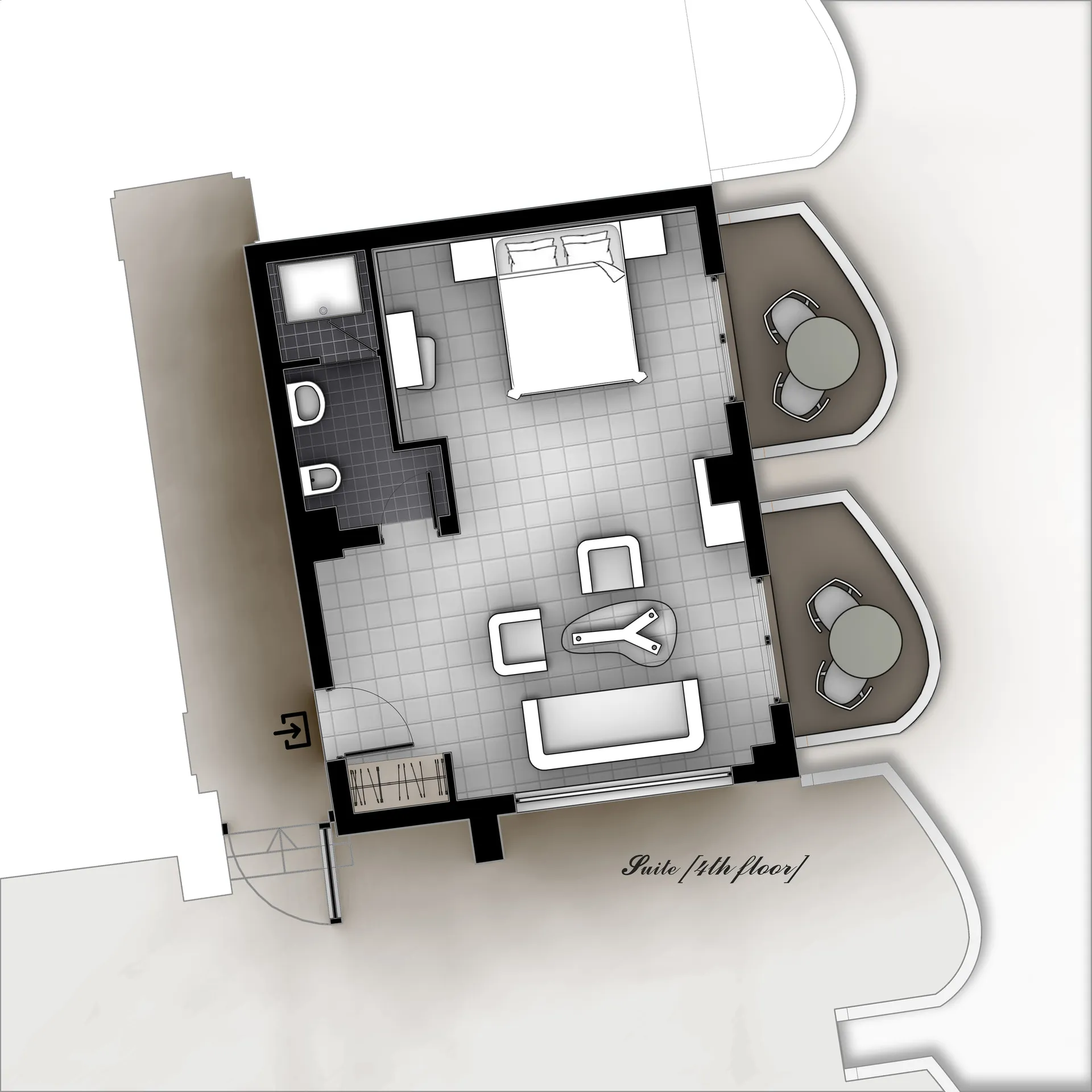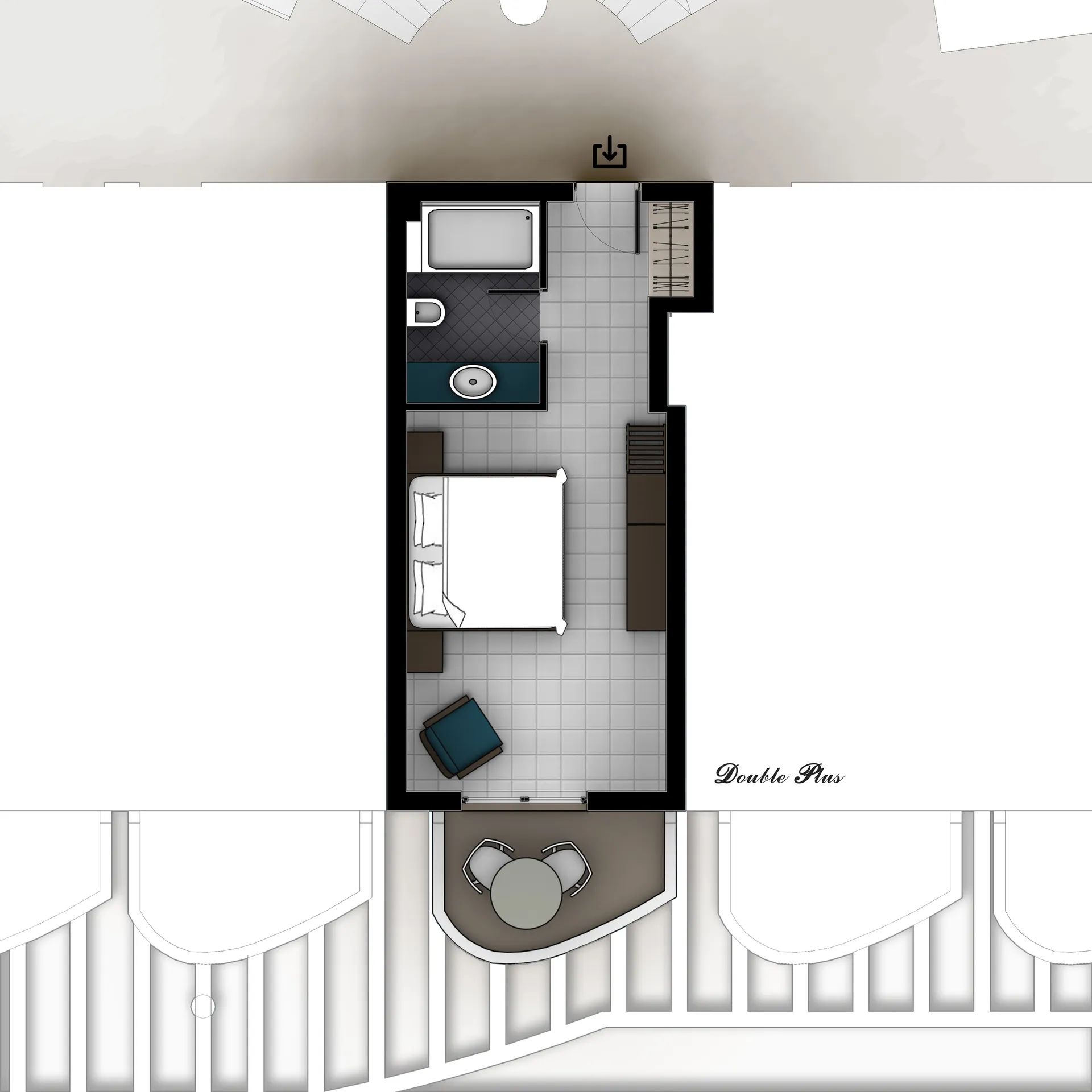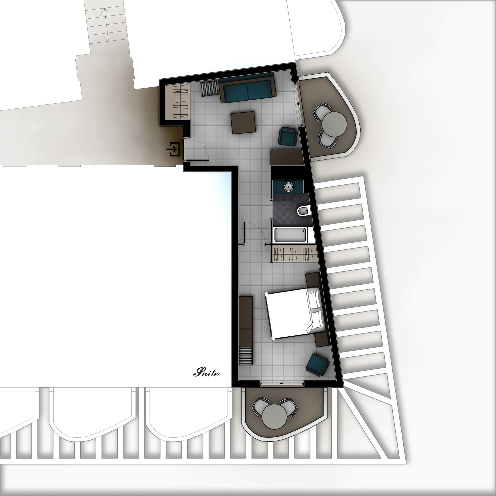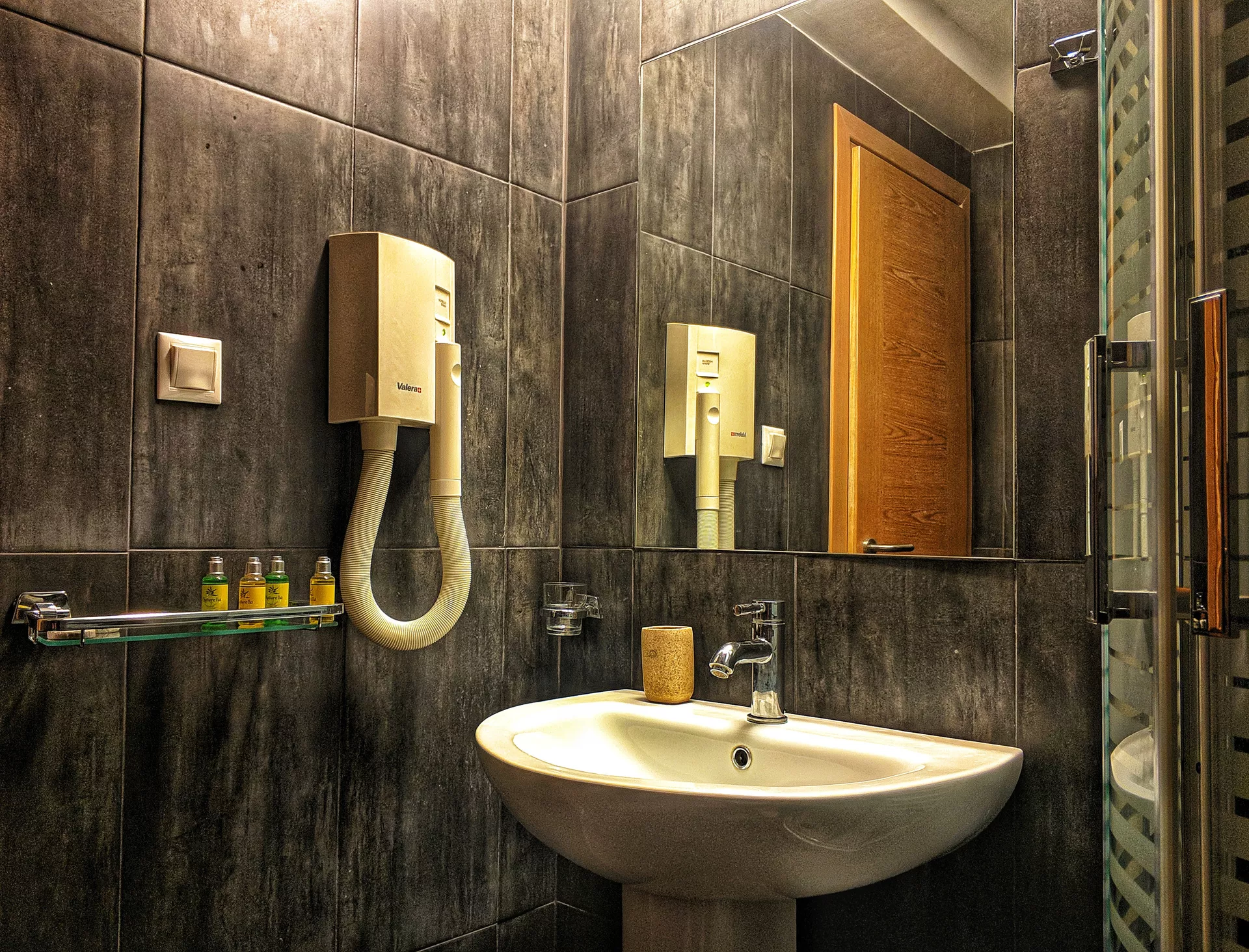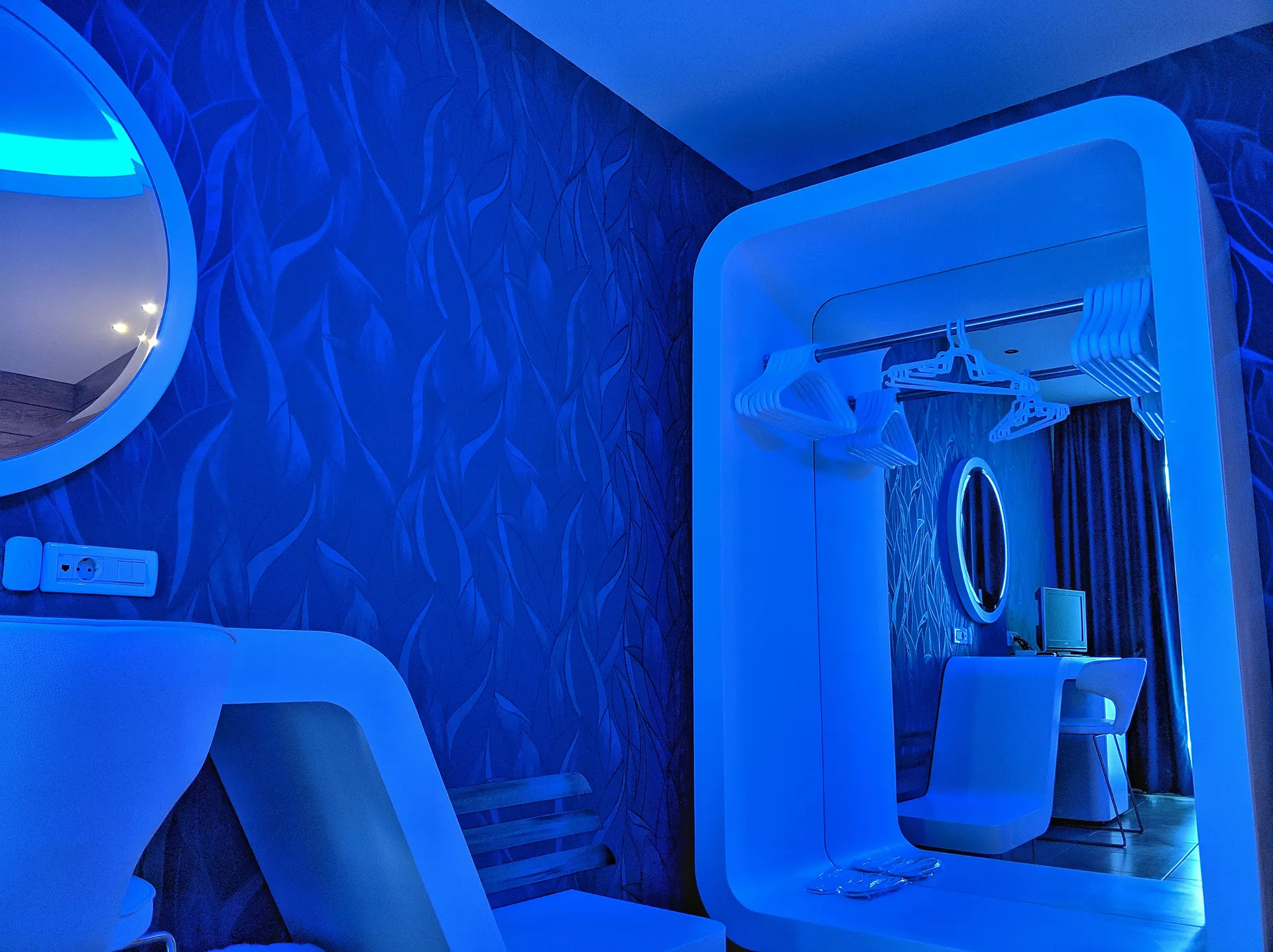 Izgrađen od najfinijih materijala, lep i ekološki prihvatljiv, sa instaliranim bezbednosnim sistemom i bežičnim internetom u javnim prostorijama. Njihovih 57 prostranih soba su ergonomski dizajnirane, opremljene modernim drvenim nameštajem od prirodnog hrasta u kombinaciji sa finim italijanskim tkaninama u bojama mora (plava i siva). Svaka vrata sobe su opremljena karticom. Sve sobe imaju odvojeno grejanje, zvučnu izolaciju, toplotnu izolaciju, izolovana vrata. Kupatila su opremljena higijenskim potrepštinama CARRON i GSI, dok su cevi napravljene od poznatog italijanskog brenda “LA TORRE”. Ograde na balkonu, verandi i stepeništu su od satenskog nerđajućeg metala i pružaju sofisticiran, minimalistički dizajnerski osećaj.
