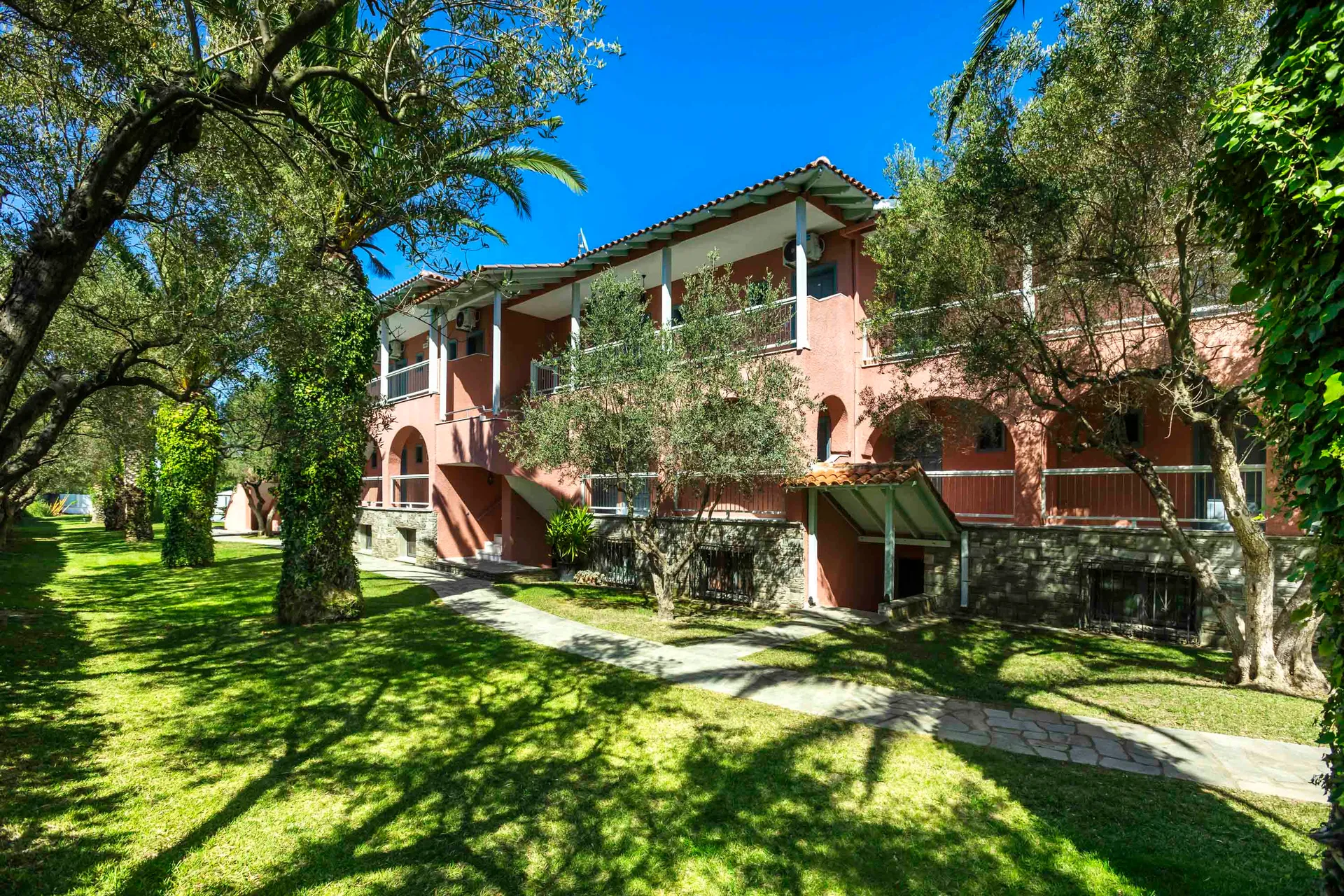Hanioti Village Resort se nalazi u tradicionalnom naselju Hanioti na Kasandri, Halkidikiju, popularnom turističkom odmaralištu okruženom prelepim zelenim borovim šumama.