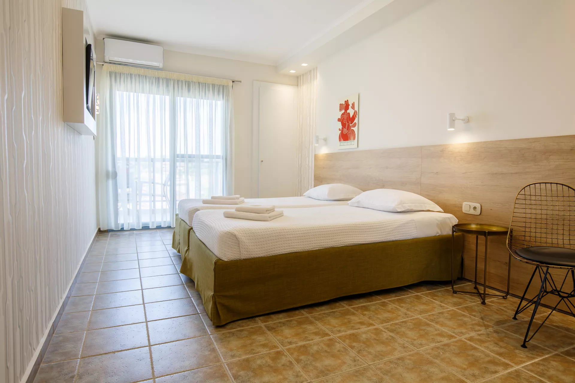 Dvokrevetna soba od 15 m² ima privatni balkon, klima uređaj, TV i besplatan bežični internet.