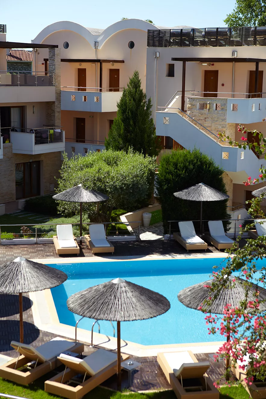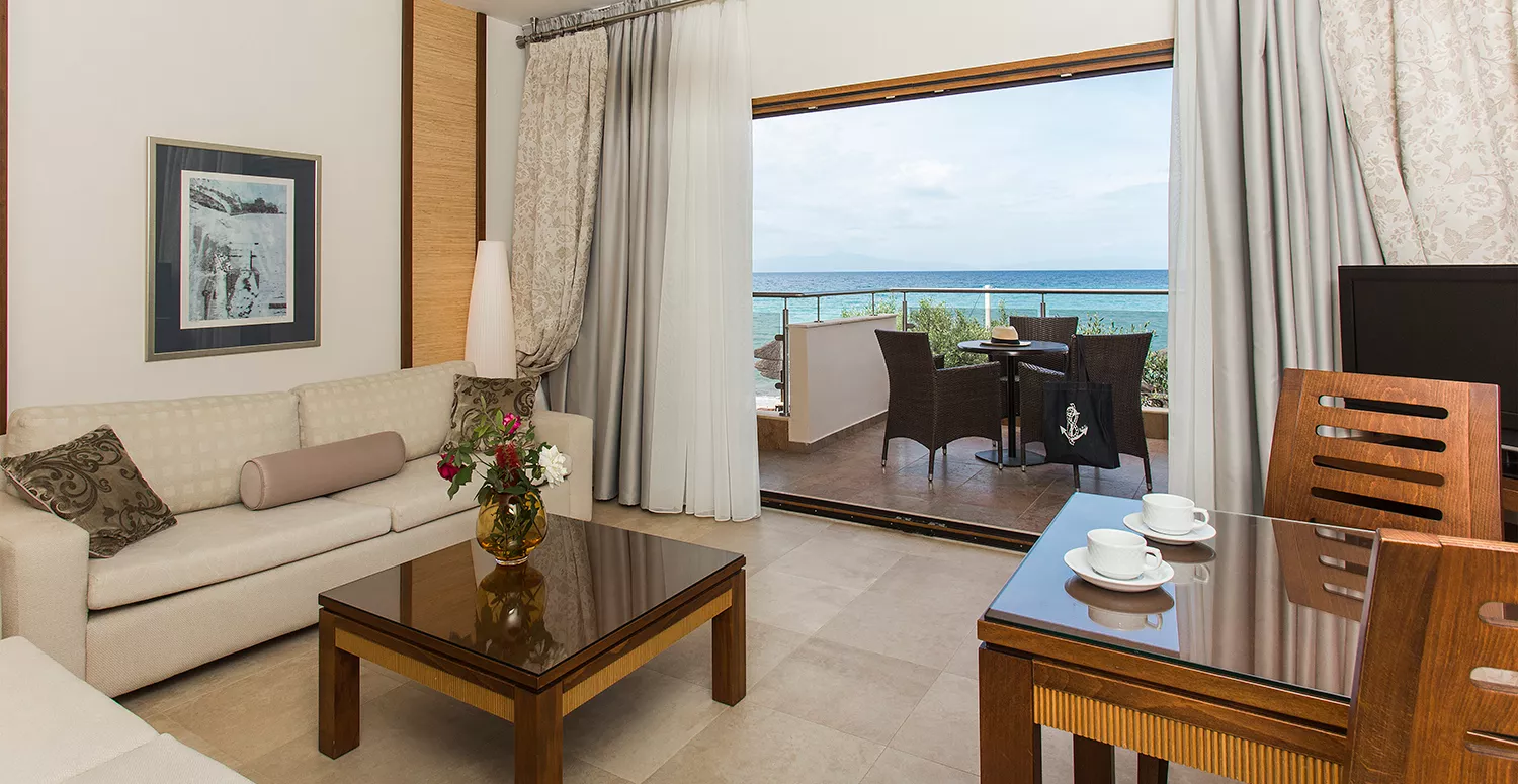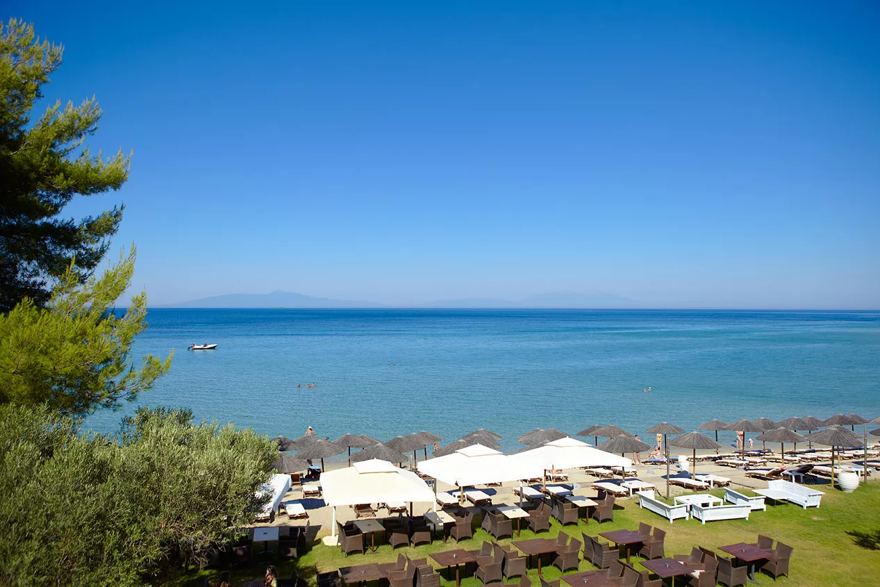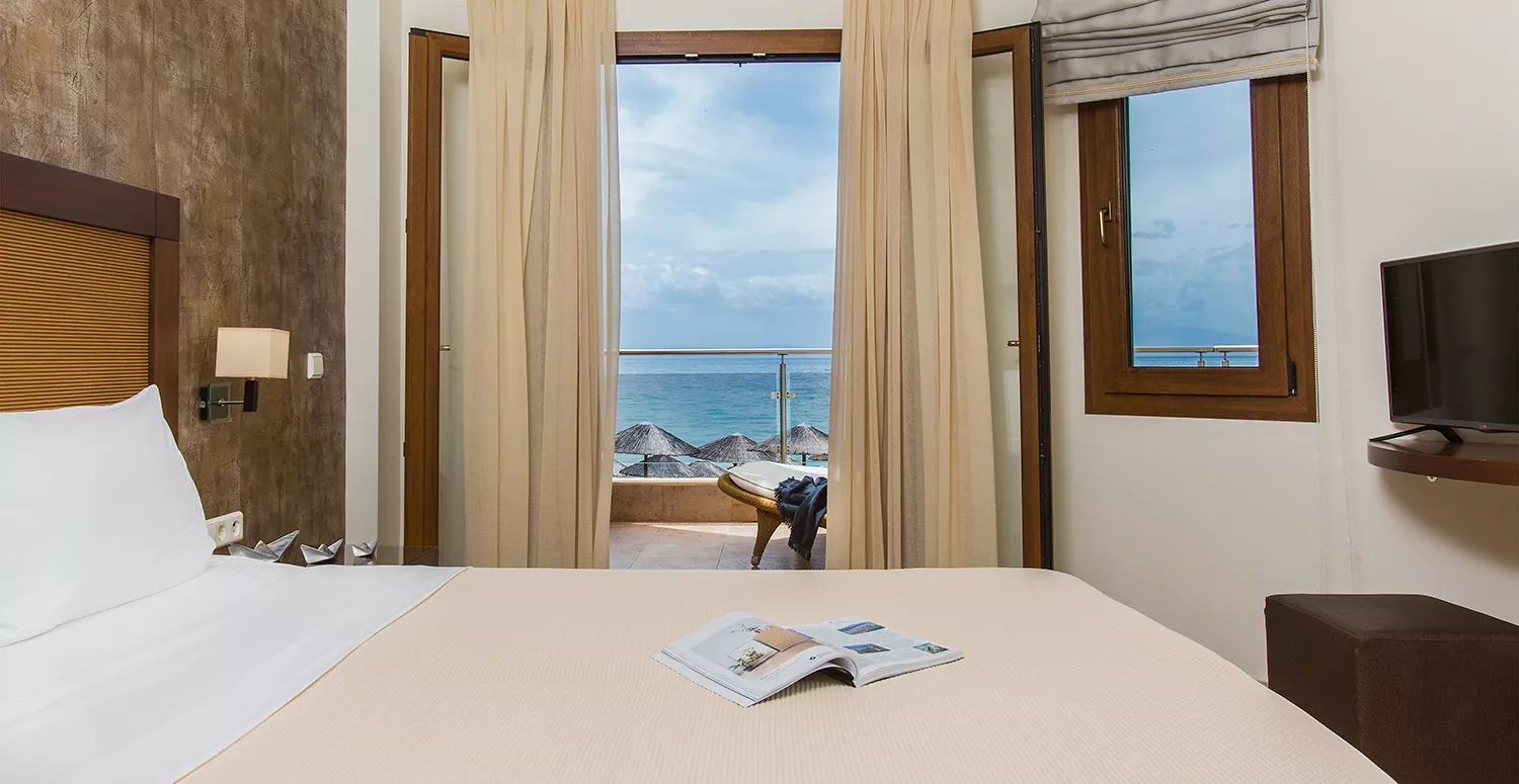 Zamislite sebe kako se opuštate na našoj netaknutoj plaži, istražujete kristalno čiste vode Halkidikija ili uživate u mediteranskim obrocima uz zvuk talasa kao muzičku podlogu. Naše luksuzne sobe i apartmani su dizajnirani da vam pruže maksimalnu udobnost, osiguravajući opuštajući boravak od početka do kraja.