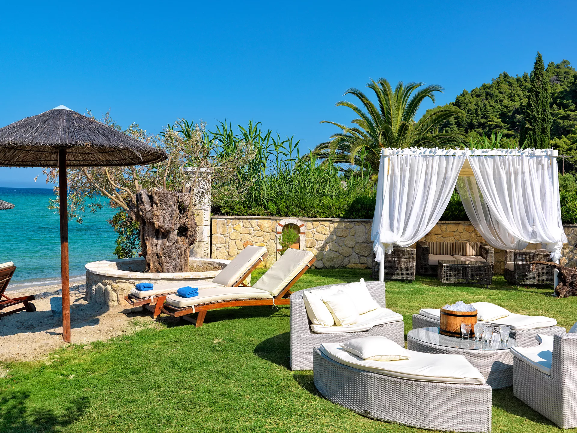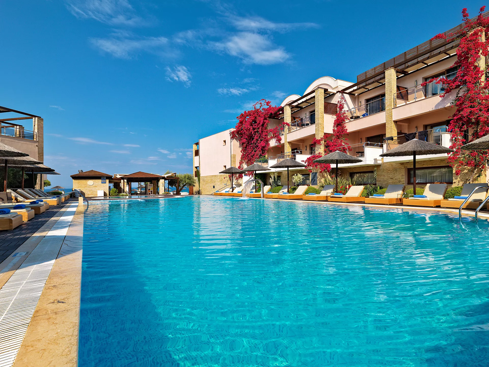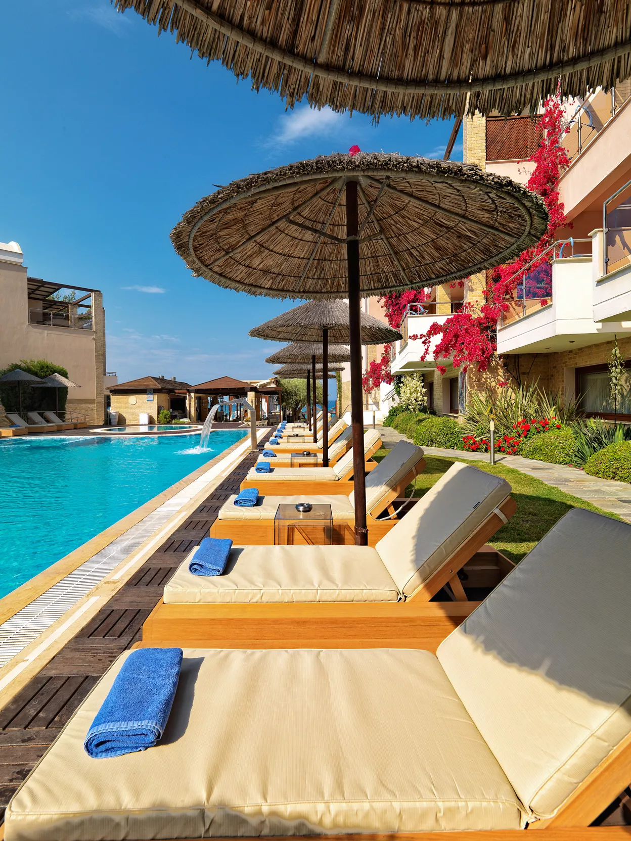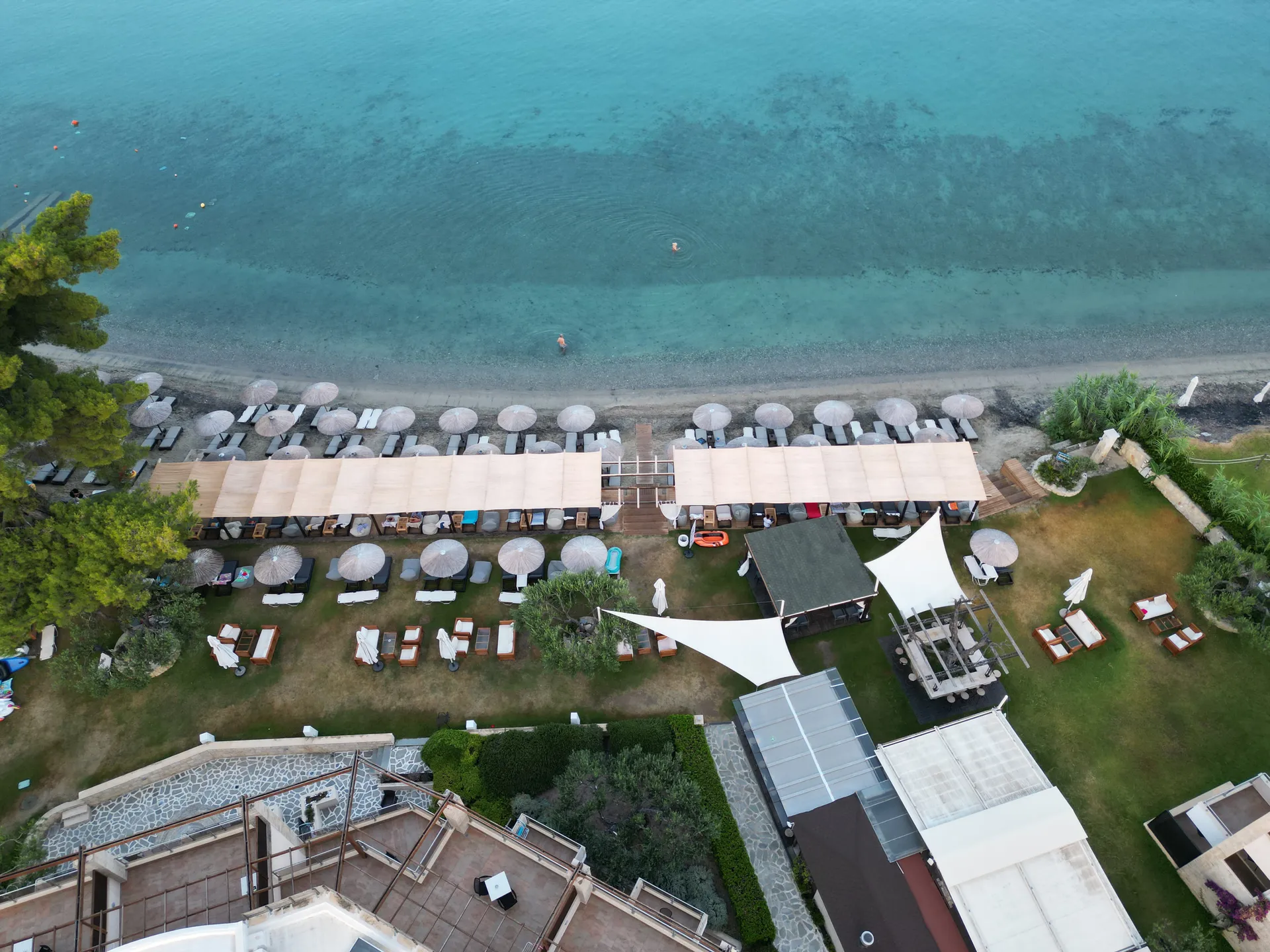 Zamislite sebe kako se opuštate na našoj netaknutoj plaži, istražujete kristalno čiste vode Halkidikija ili uživate u mediteranskim obrocima uz zvuk talasa kao muzičku podlogu. Naše luksuzne sobe i apartmani su dizajnirani da vam pruže maksimalnu udobnost, osiguravajući opuštajući boravak od početka do kraja.