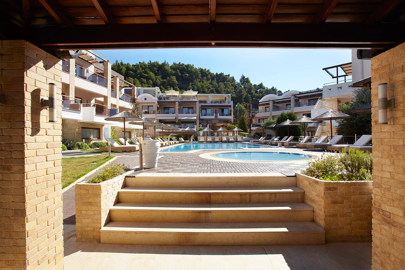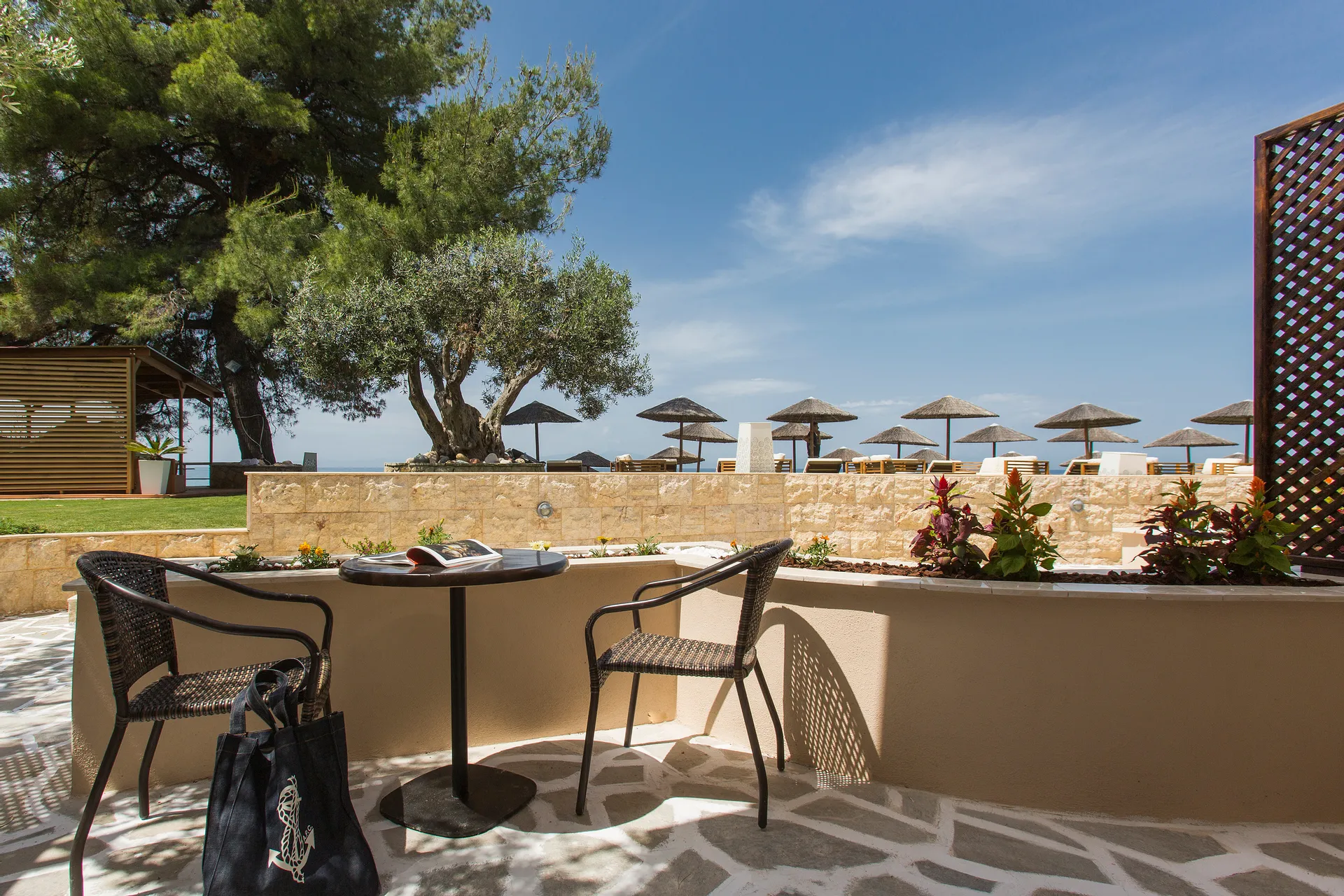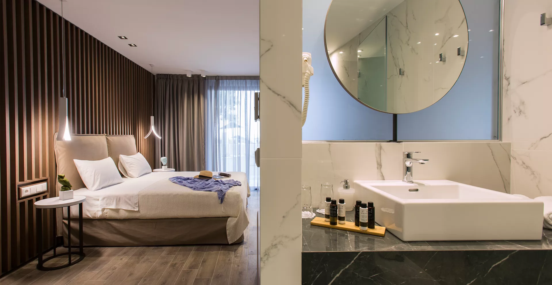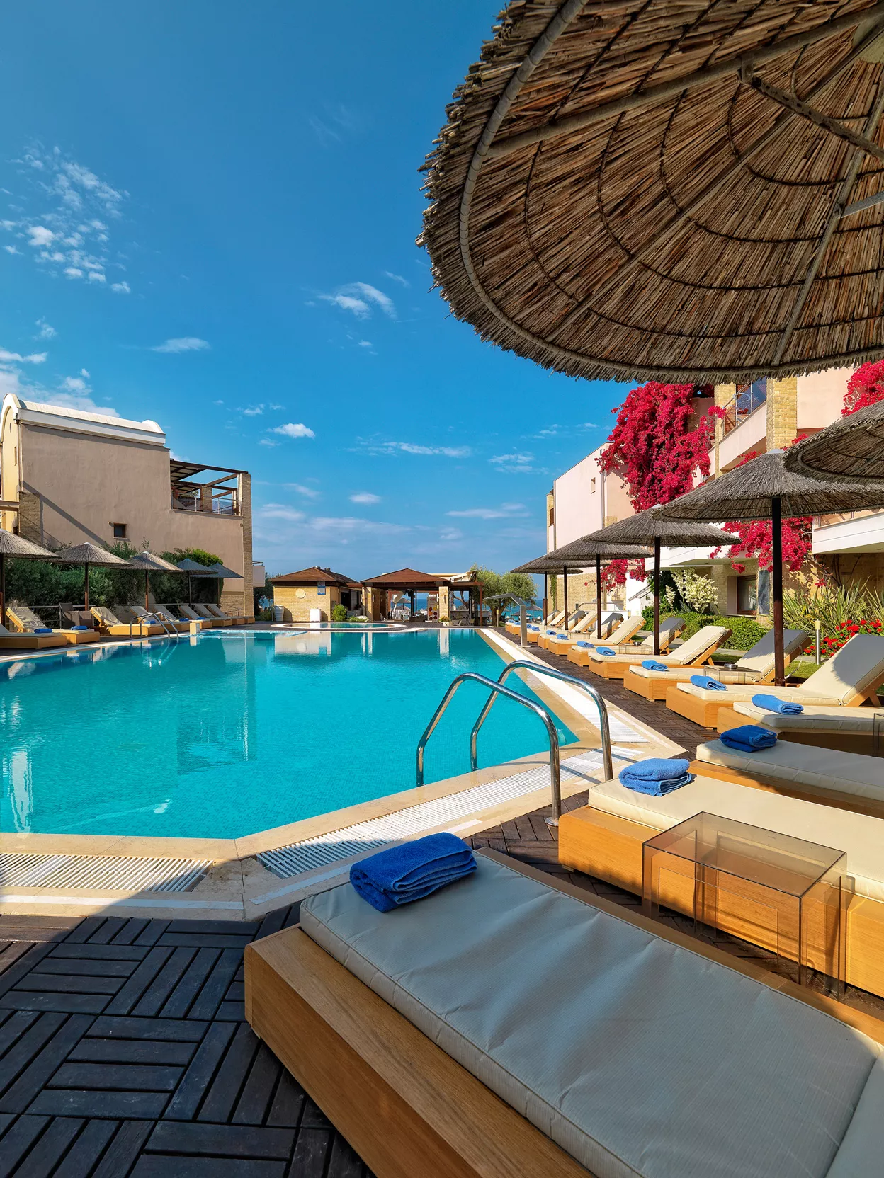 Zamislite sebe kako se opuštate na našoj netaknutoj plaži, istražujete kristalno čiste vode Halkidikija ili uživate u mediteranskim obrocima uz zvuk talasa kao muzičku podlogu. Naše luksuzne sobe i apartmani su dizajnirani da vam pruže maksimalnu udobnost, osiguravajući opuštajući boravak od početka do kraja.