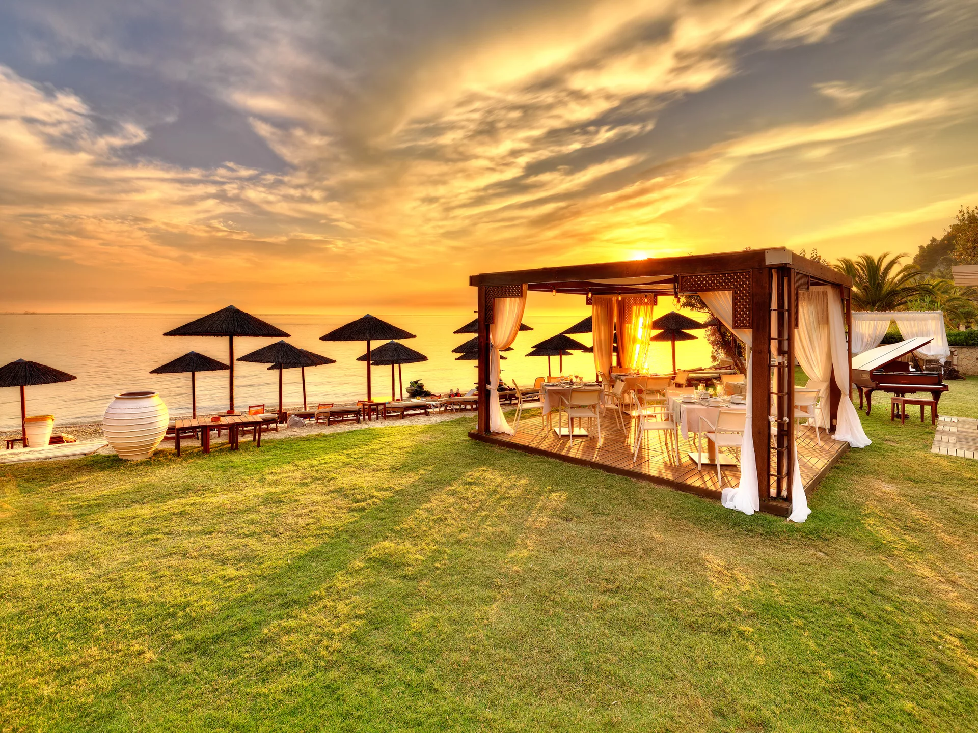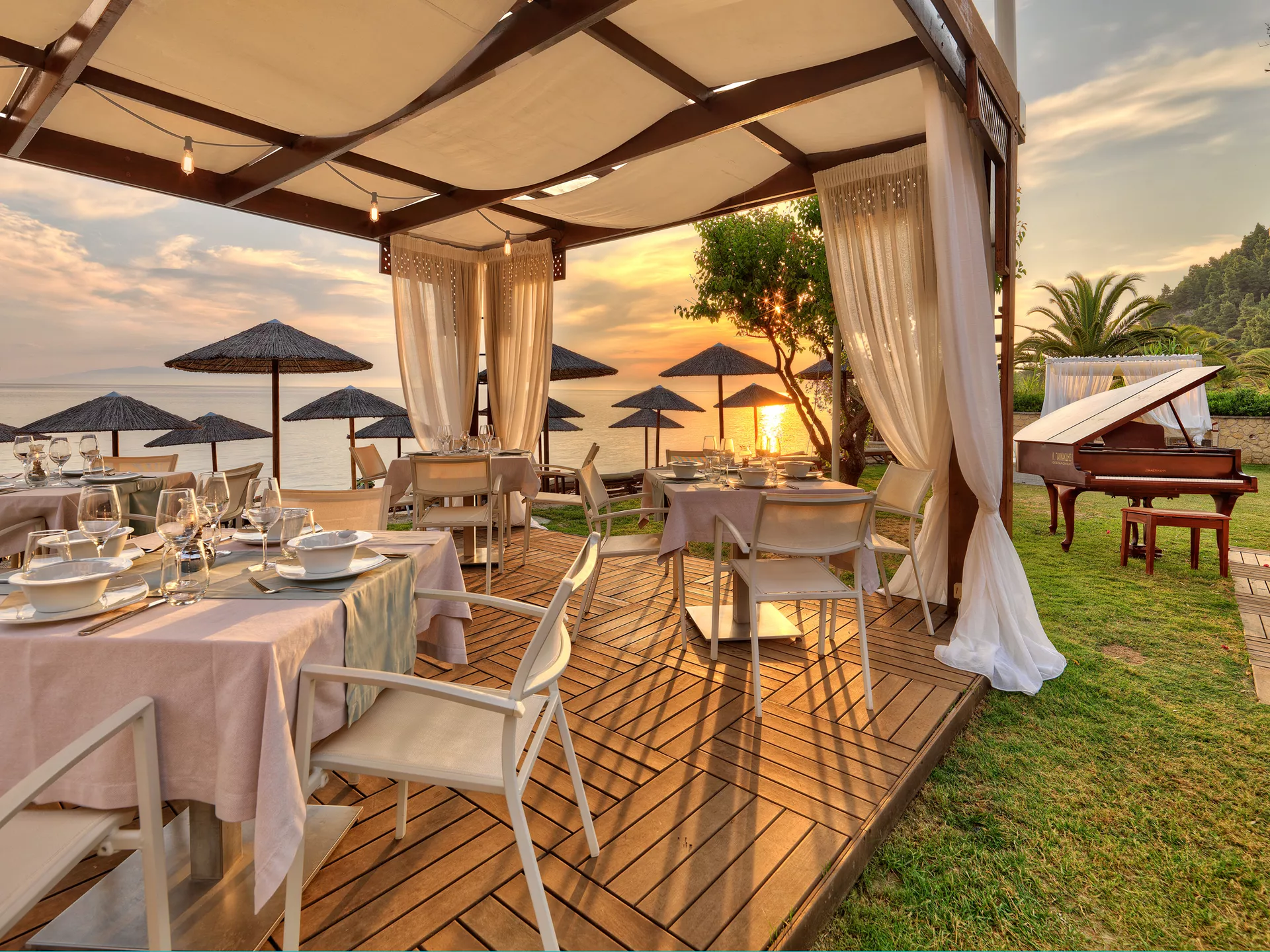 U restoranu Olive, zalazak sunca je zadivljujuće iskustvo koje oslikava suštinu lepote obale. Smešten direktno na peščanim obalama Furke, na Halkidikiju, Oliv nudi vrhunsko iskustvo ručavanja na plaži.
