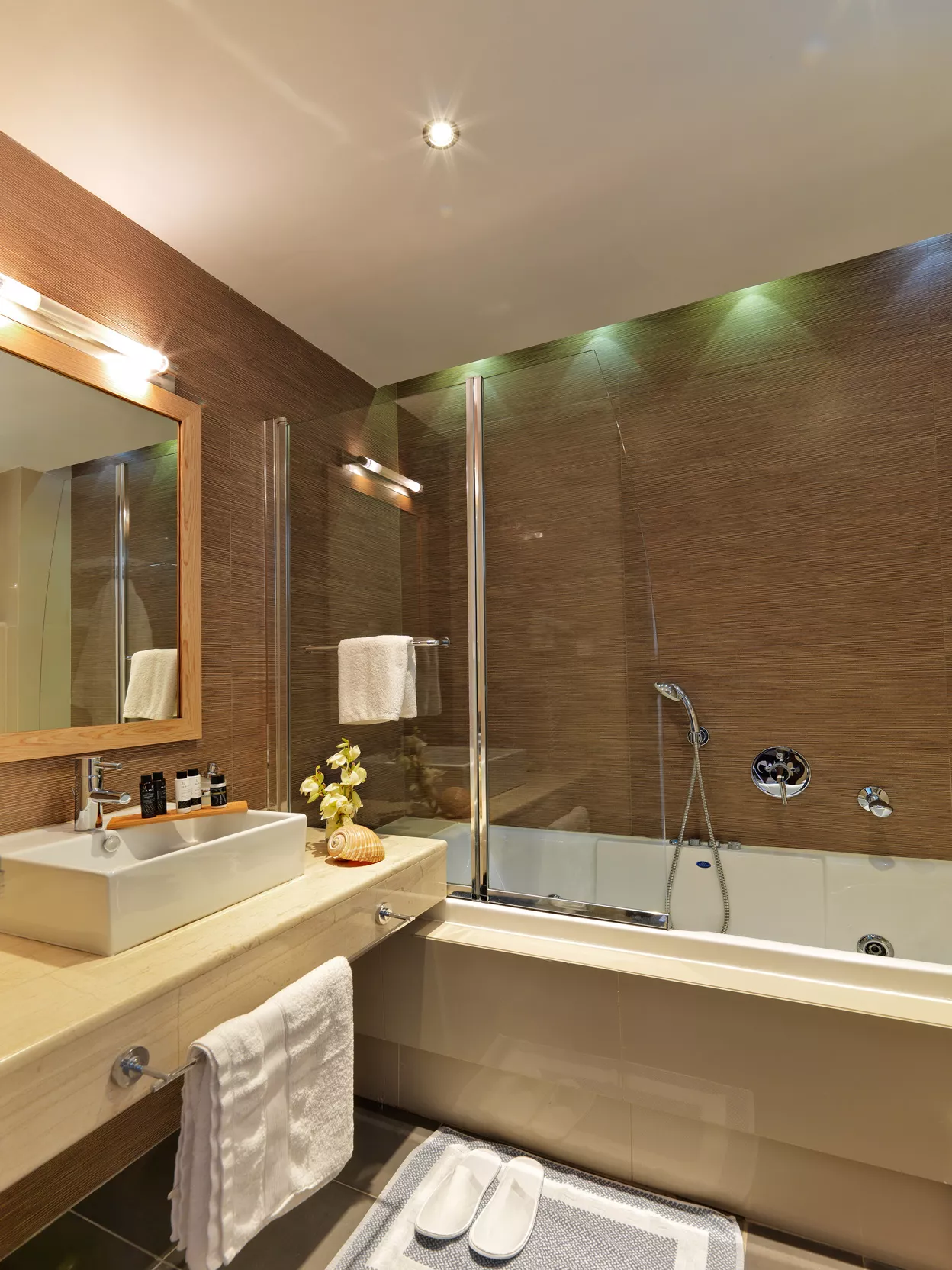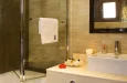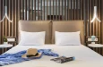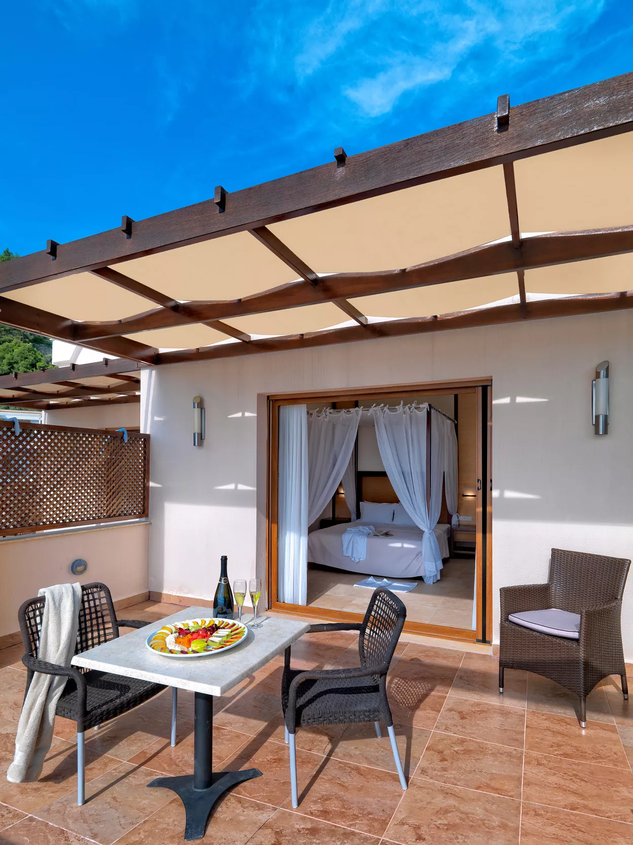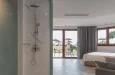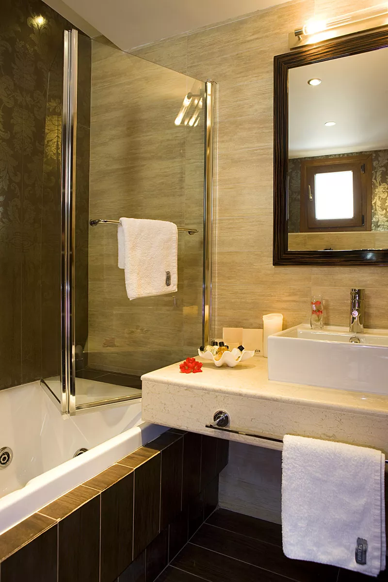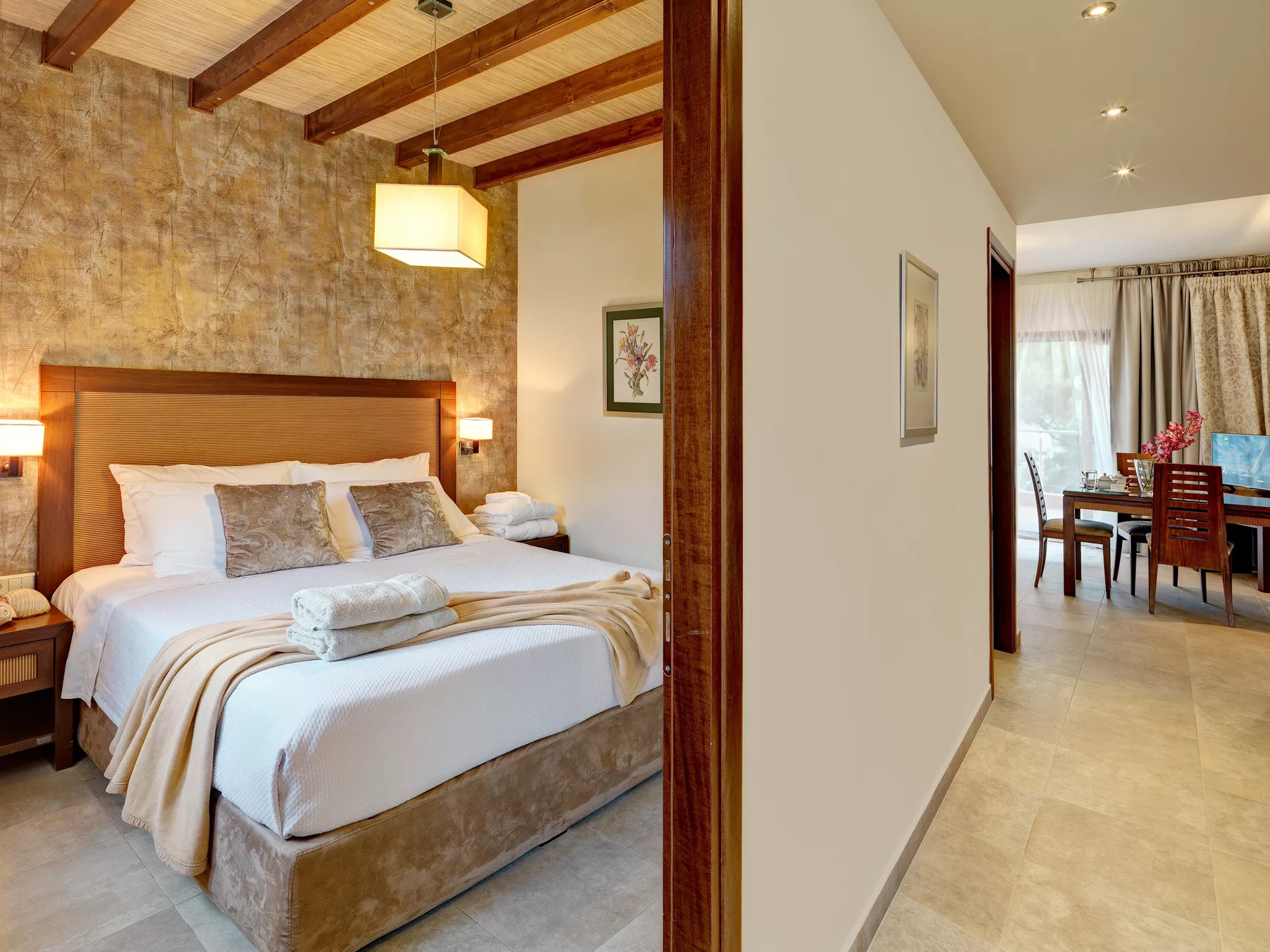 Prostran i raznovrstan, Deluks Junior Apartman od 45 m² je savršen za parove ili porodice koje traže udobnost i stil. Smešten u prizemlju ili na prvom spratu (dostupno stepenicama), ovaj apartman sadrži odvojenu spavaću sobu sa spojnim vratima i dnevnu sobu sa dva odvojena kreveta. Opustite se na svom privatnom balkonu ili uživajte u elegantnom dizajnu apartmana i premium sadržajima, kao što su plišana posteljina, ogrtači i toaletni pribor. Idealan za stvaranje nezaboravnih trenutaka, ovaj apartman osigurava da se svaki član vaše grupe oseća kao kod kuće.