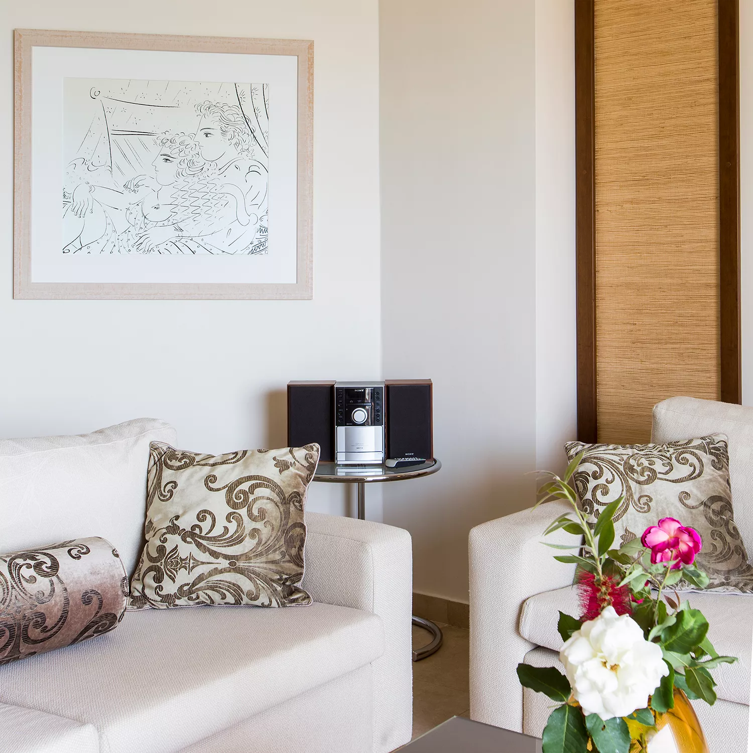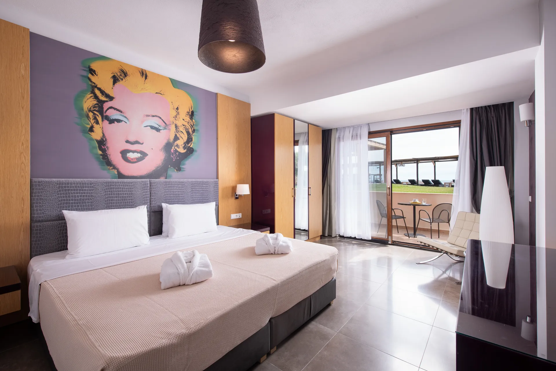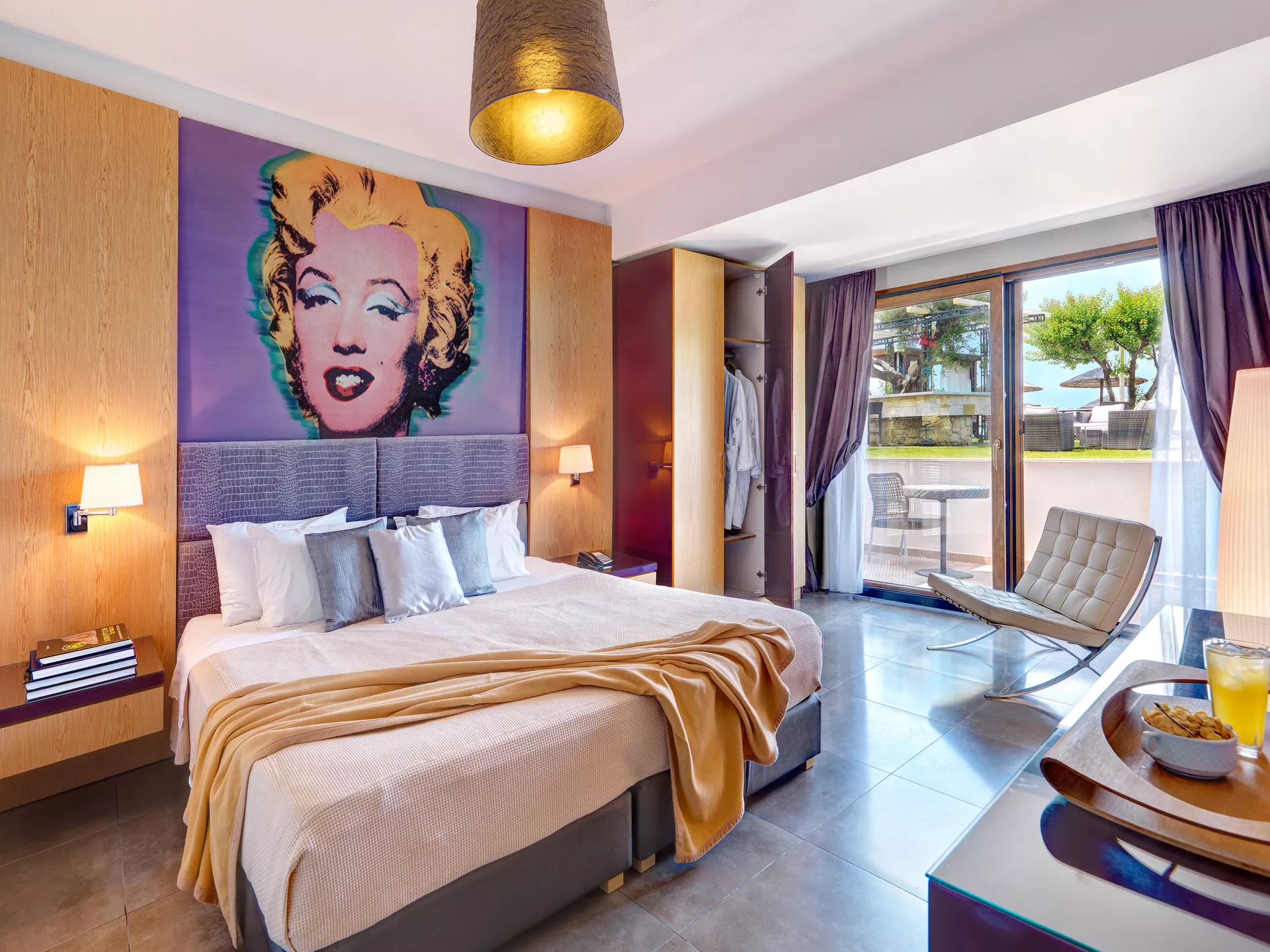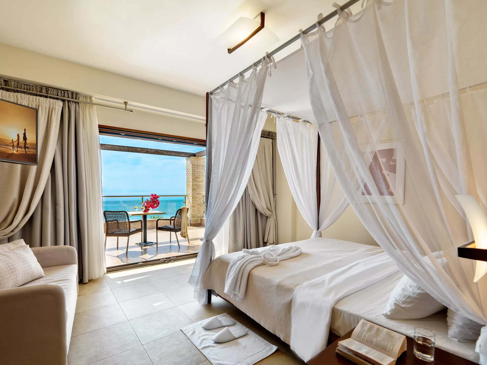 Uronite u modernu eleganciju u našoj ekskluzivnoj sobi, utočištu od 38 m² okruženom bujnim vrtovima hotela. Smeštena u prizemlju, na samo nekoliko koraka od plaže, ova nedavno renovirana soba nudi direktan pristup plaži i elegantan dizajn koji savršeno dopunjuje živahnu letnju atmosferu. Sa privatnim balkonom, udobnim posteljinom i luksuznim sadržajima, ova soba je odličan izbor za parove ili putnike koji traže spokojan i stilski odmor.