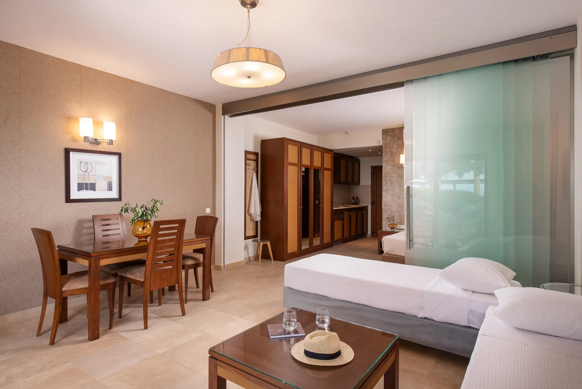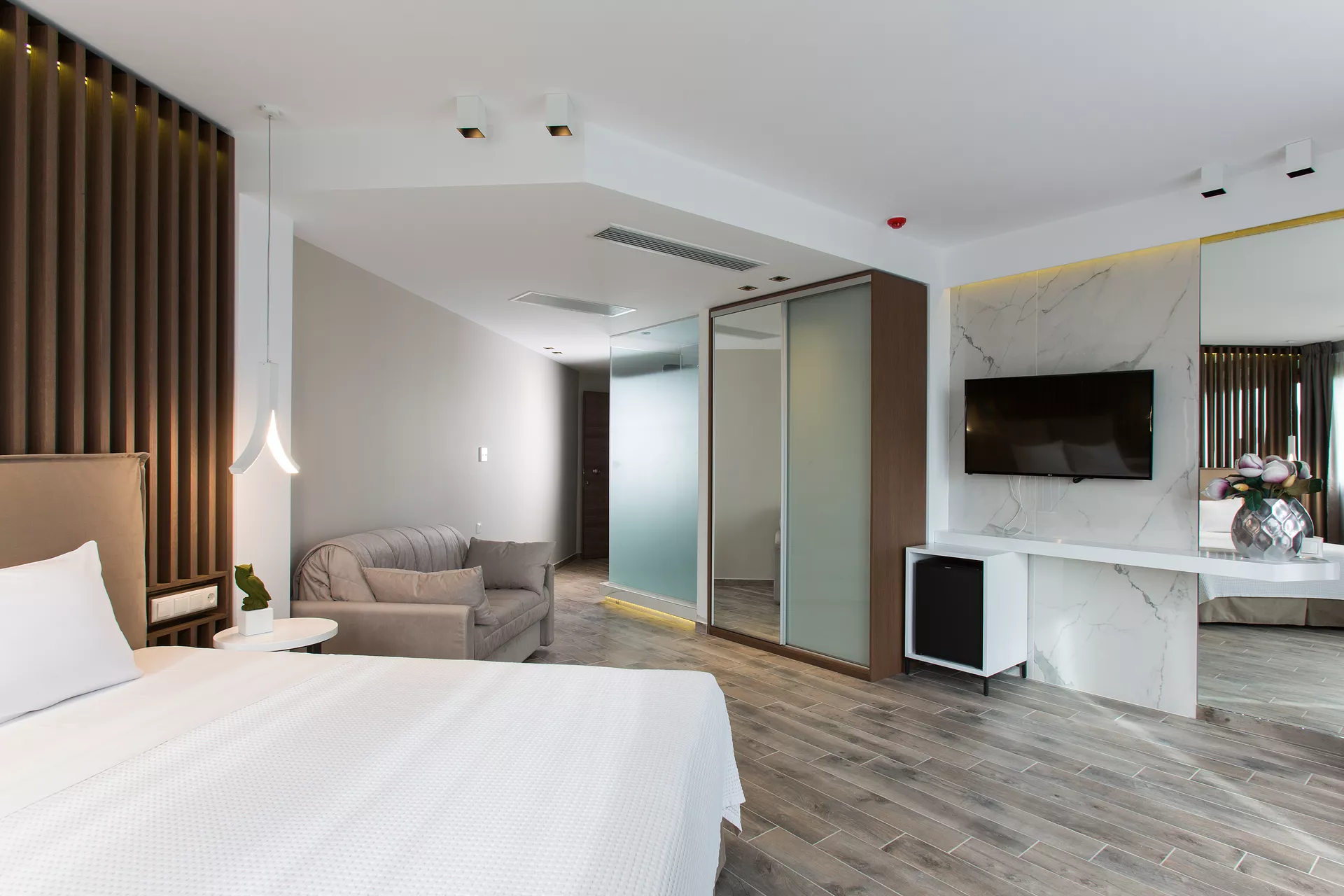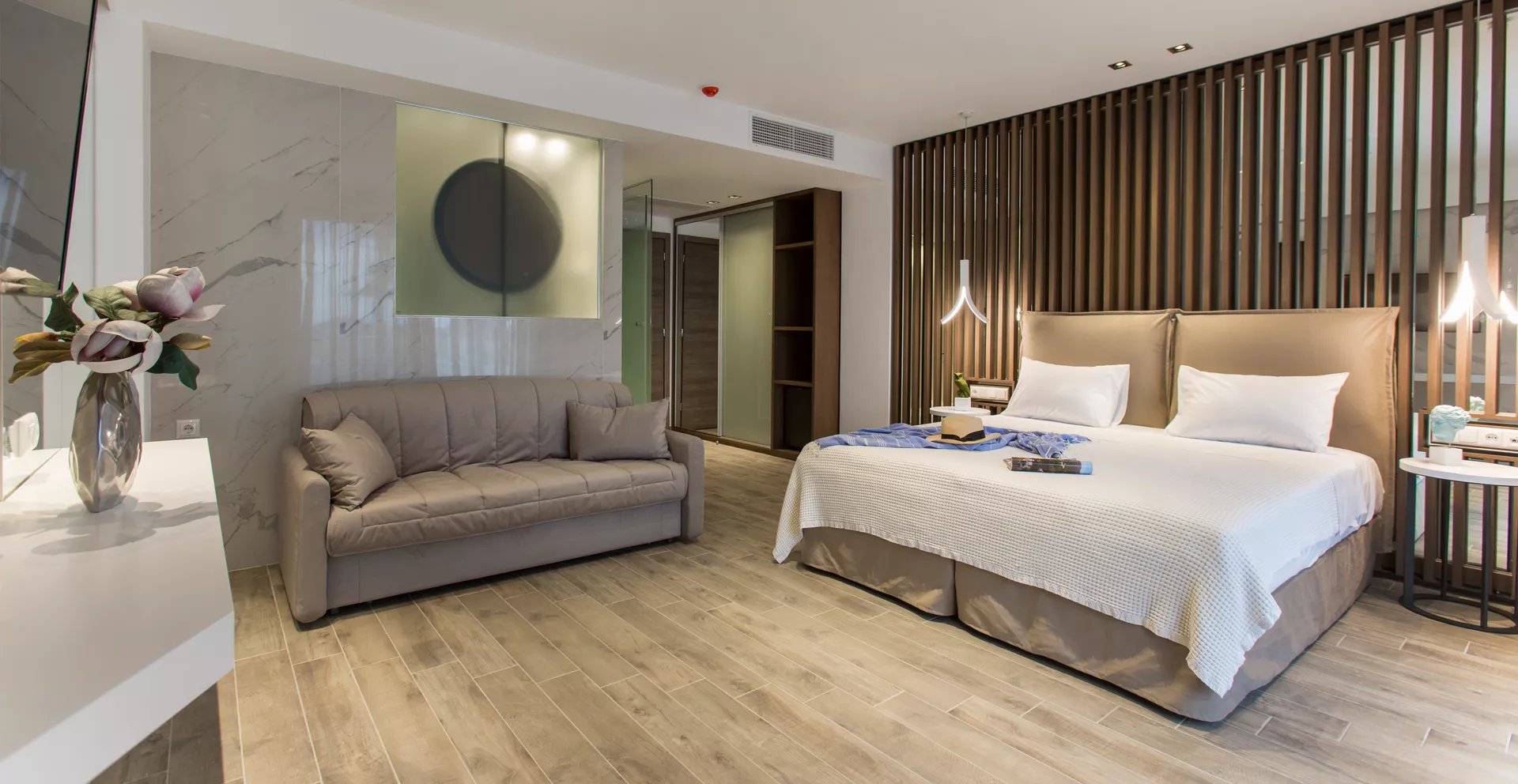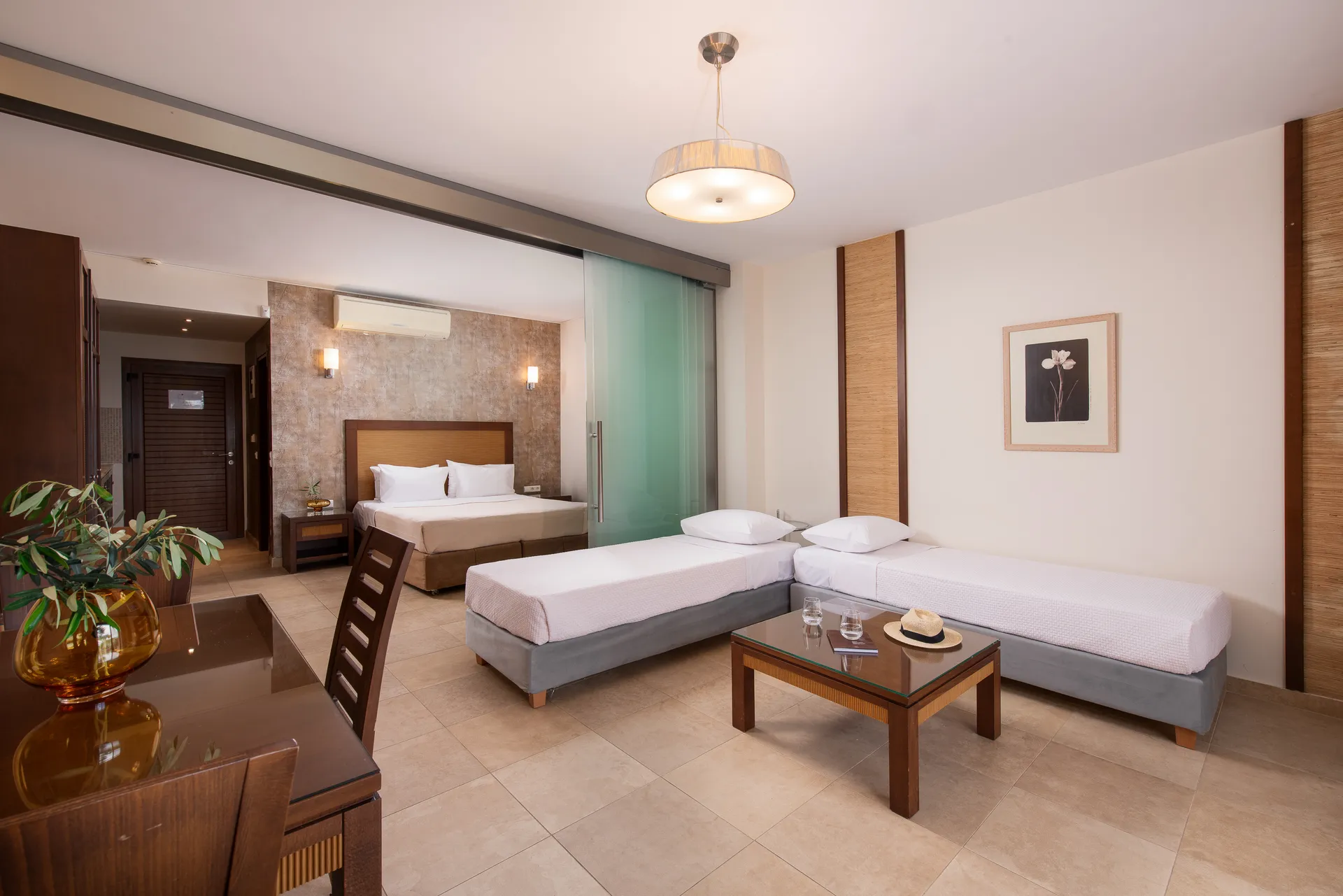 Doživite savršen spoj moderne elegancije i primorskog mira u hotelu Olympion Sunset Chalkidiki. Od stilskih Superior soba do zadivljujućih apartmana na plaži sa zapanjujućim pogledom na zalazak sunca, svaki smeštaj je pažljivo dizajniran za vrhunsku udobnost i opuštanje. Sa direktnim pristupom plaži, privatnim balkonima i luksuznim sadržajima, naše sobe pružaju idealno utočište za vaš nezaboravan boravak na Halkidikiju.