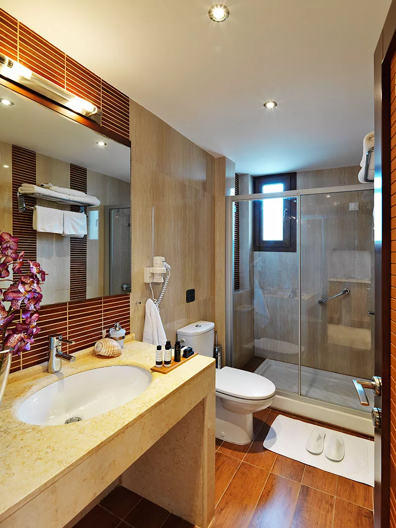 Superior dvokrevetna soba nudi sve za one koji traže spokojan beg na obalu. Smeštena na drugom spratu i dostupna stepenicama, ova soba od 30 m² ima privatni namešten balkon. Uživajte u modernim pogodnostima, uključujući klima uređaj, TV, mini-bar i sopstveno kupatilo sa besplatnim toaletnim priborom, fenom za kosu, plišanim ogrtačima i papučama. Dodatni sadržaji uključuju besplatan Wi-Fi, sef, peškire za plažu i bazen i mogućnost da zahtevate dečji krevetac ili jastuke za dodatnu udobnost. Doživite opuštanje i eleganciju na samo nekoliko koraka od plaže.