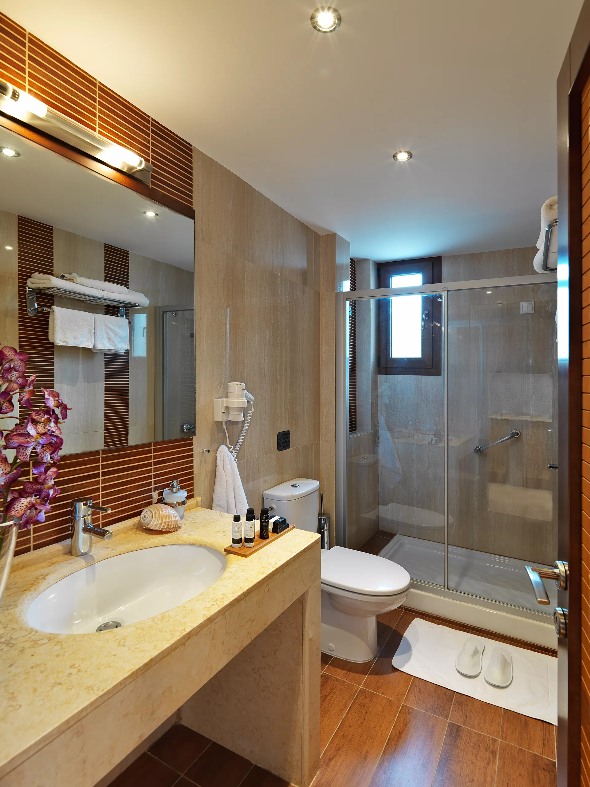 Superior dvokrevetna soba nudi sve za one koji traže spokojno bekstvo na obali. Smeštena na drugom spratu i dostupna stepenicama, ova soba od 30 m² ima privatni namešten balkon. Uživajte u modernim pogodnostima, uključujući klima uređaj, TV, mini-bar i sopstveno kupatilo sa besplatnim toaletnim priborom, fenom za kosu, plišanim ogrtačima i papučama. Dodatni sadržaji uključuju besplatan Wi-Fi, sef, peškire za plažu i bazen, kao i mogućnost da zatražite dečji krevetac ili jastuke po želji za dodatnu udobnost. Doživite opuštanje i eleganciju na samo nekoliko koraka od plaže.