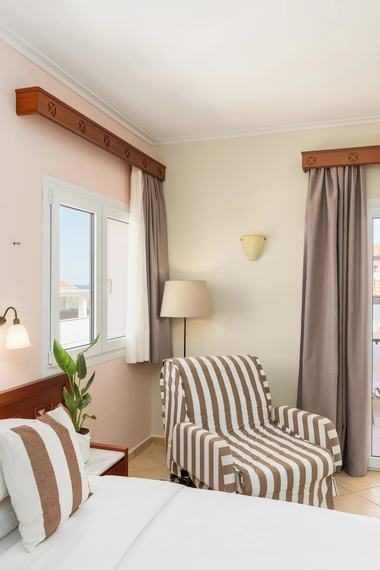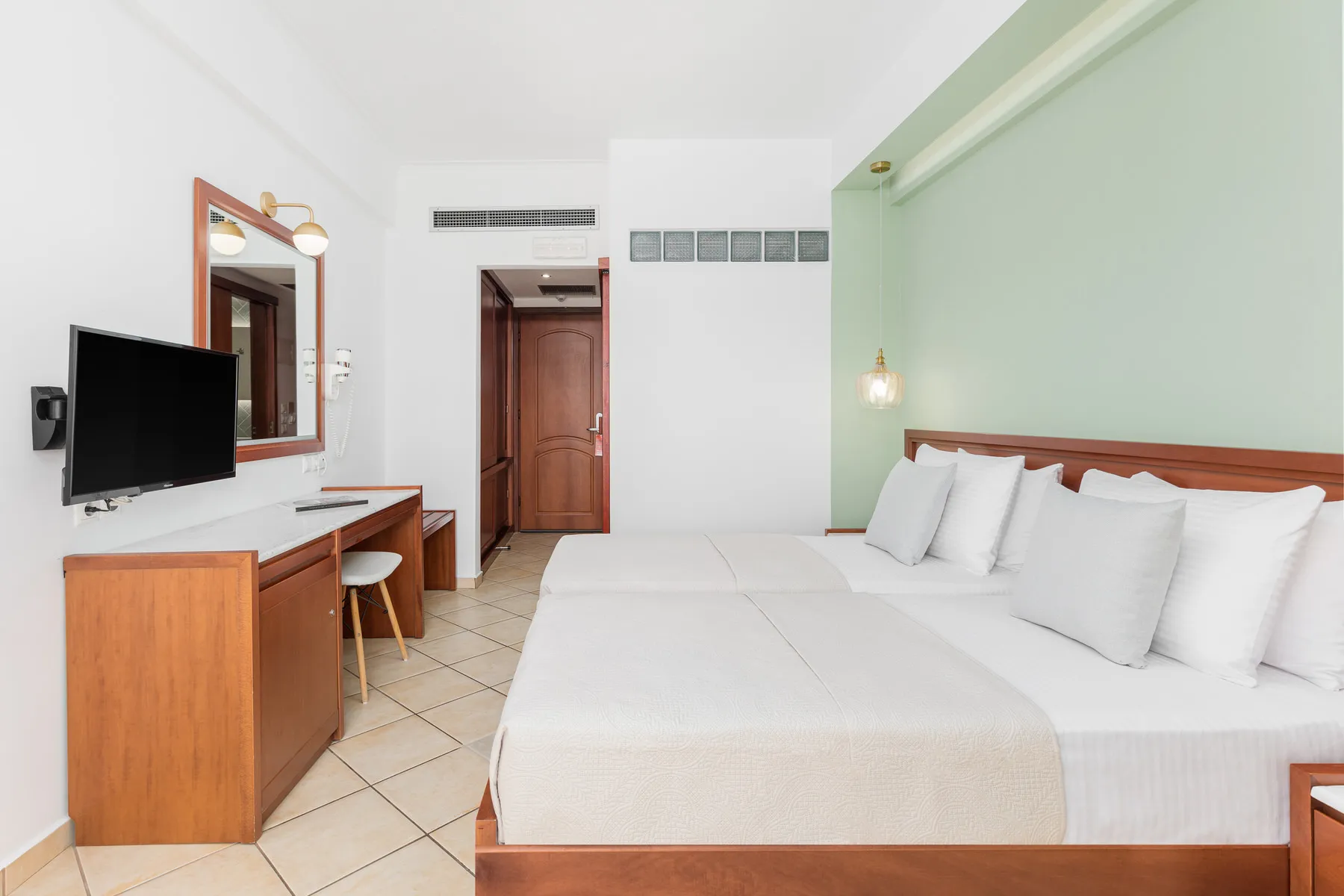 Ovaj tip sobe se nalazi na 1., 2. i 3. spratu, sa istočnom orijentacijom (pogled na bazen) ili zapadnom orijentacijom (pogled na mirnu ulicu i planine, Olimp i Osu). Sve dvokrevetne sobe imaju prostrane balkone, idealne za opuštajuće trenutke.