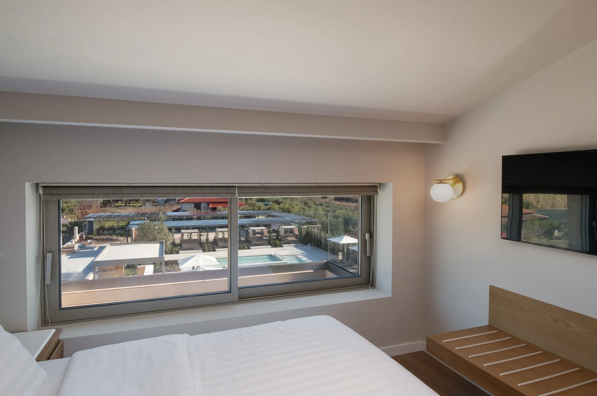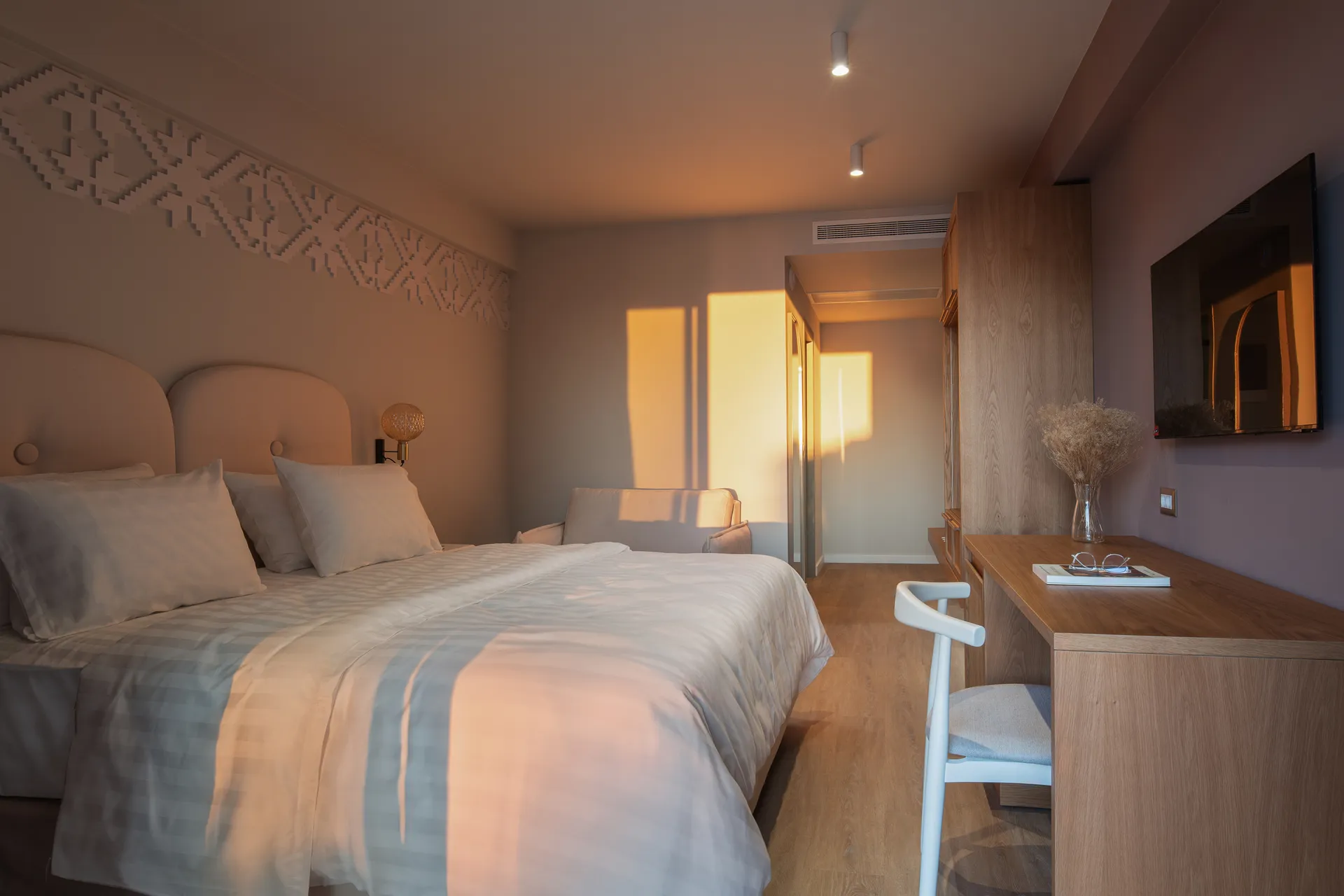Naš executive apartman sa pogledom na more obećava raskošno utočište u svojih 33 kvadratna metra elegantno dizajniranog prostora. Svaki apartman je oaza luksuza, nudeći gostima zadivljujući pogled na Egejsko more iz udobnosti svoje sobe. Sa kombinacijom modernih sadržaja i sofisticiranog dekora, ovi apartmani su savršeni za one koji žele da uživaju u finijim aspektima putovanja, gde je svaki detalj osmišljen za nezaboravno iskustvo.