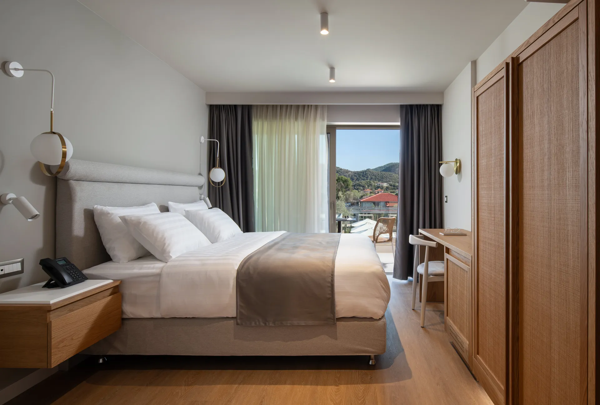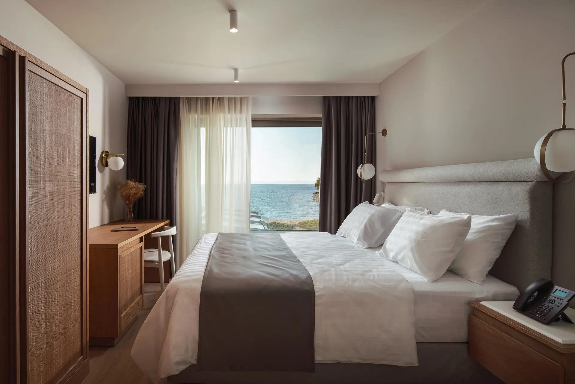 Dvokrevetna soba „Executive“ sa pogledom na more je vaše privatno utočište gde se azurne vode susreću sa beskrajnim nebom ispred vašeg prozora. Prostirući se na 25 kvadratnih metara, svaka soba je dokaz luksuza i spokoja, nudeći gostima mesto u prvom redu sa zadivljujućim morskim pejzažima. Dizajnirane za zahtevne turiste, ove sobe imaju luksuzne sadržaje, sofisticirani dekor i balkon koji se otvara ka spokojnoj lepoti Egejskog mora.