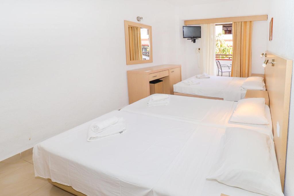 Hotel u ponudi ima smeštaj sa sezonskim bazenom na otvorenom, privatnim parkingom, vrtom i terasom. Objekat ima bar, kao i restoran koji služi jela grčke kuhinje. Smeštaj nudi recepciju koja radi non-stop, prevoz od/do aerodroma, poslugu u sobi i besplatan WiFi.