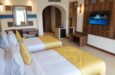 Сместувачките единици на хотелот се опремени со балкон или тераса, клима, мини бар, фен, котел и сеф. Стандардните соби се со големина од околу 48 m² и нудат поглед на градината, додека Deluxe собите со иста големина нудат делумен поглед на морето. Супериорните соби имаат и површина од околу 48 m² и нудат директен поглед на морето. Услугата во соба и телефонските услуги дополнително се наплаќаат.