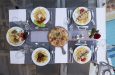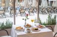 Услуга: Основната услуга е полупансион. Појадокот е на шведска маса, со можност за правење посебни менија (на барање). Во ресторанот се служи вечера со различни меѓународни, грчки и критски специјалитети и детско мени. Ручекот е достапен на лице место во à la carte ресторанот на хотелот.