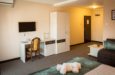 Ukupan kapacitet hotela je 73 ležaja stalna i pomoćna u 26 smeštajnih jedinica. Smeštajne jeinice su sledeće strukture: dvokrevetne sobe (pogodne za smeštaj dve osobe),superior dvokrevetnih soba (smeštaj 2-3 osobe ) veće površine, delux dvokrevetne sobe (prima 2-4 osobe, veća površina u odnosu na dvokrevetnu sobu, imaju i garnituru za sedenje, terasu i pogled na hrastovu šumu), dva penthaus aparmana (pogodni za 2 osobe, površine od oko 40m² na dva nivoa, imaju garnituru za sedenje i mogućnost dodavanja pomoćnog ležaja), porodične sobe (imaju u svom sklopu dve odvojene spavaće sobe, kompletno opremljenu čajnu kuhinjui terasu, pogodne za smeštaj 2-4 osobe) i jedan apartman sa kuhinjom (u svom sastavu ima spavaću sobu sa garniturom za sedenje, kompletno opremljenu kuhinju sa trpezarijskim delom, terasu i pogled na hrastovu šumu). Sve smeštajne jedinice imaju: sopstveno kupatilo sa fenom, TV sa kablovskim kanalima, klima, telefon, WI FI, centralno grejanje, peškire.