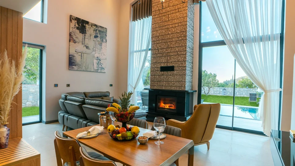 Vile od 101 m², koje mogu da prime do 6 osoba, imaju privatni bazen, grejanu đakuzi kadu i terasu za sunčanje, podno grejanje, besplatan Wi-Fi, Ultra HD TV, IP TV, telefon, kamin, split klima uređaj, kabinu, sef sa punjačem, kuhinju, Nespresso aparat za kafu, kuvalo za vodu i mini-frižider.